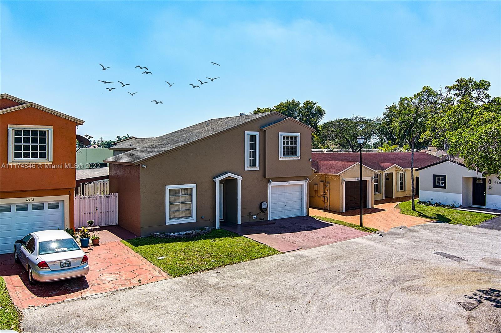 Fantastic single family home located in a very desirable community of Country Lake Homes. Master bedroom/bath in first floor and 2 more bedrooms with a jack-n-jill bathroom upstairs. Remodeled bathrooms with granite counter tops and showers. Kitchen has been upgraded with granite counter tops and stainless-steel appliances. Tile floors and high ceiling that brings a lot natural light. It has been recently painted and it comes fully furnished. Cover patio to enjoy with family and friends with a partial lake view. Garage is used as a family room. 2 spaces to park in the driveway. A/C from 2016, Washer & dryer in first floor. Association is only $93 a month!. Convenient access to I-75, Palmetto Expressway & Turnpike!