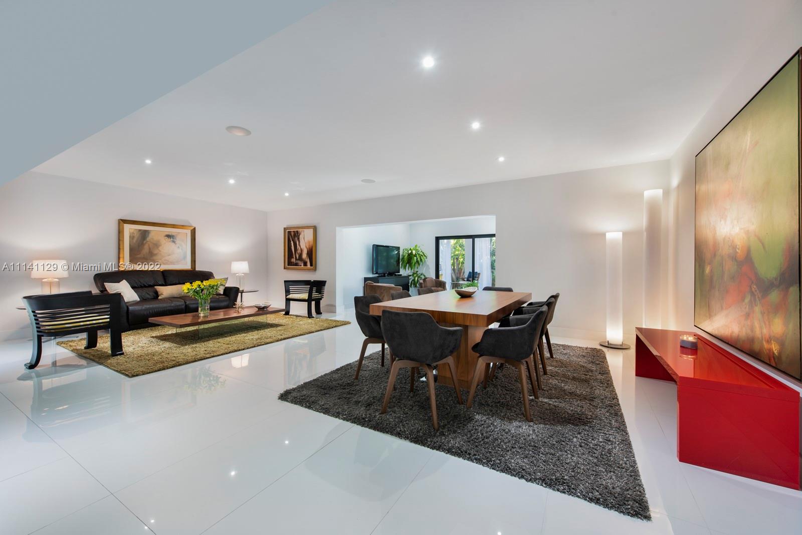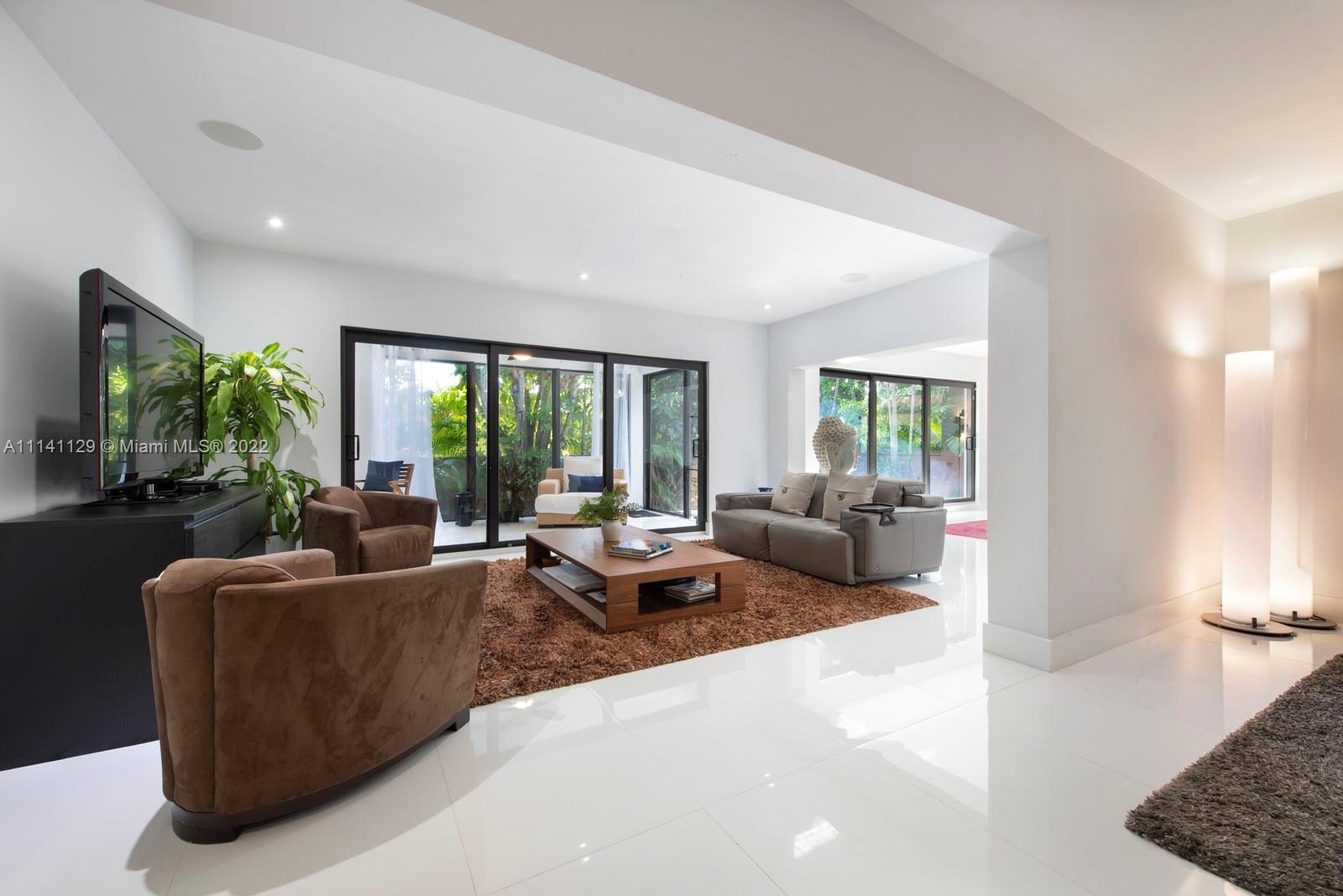 Sensational home in a prime Miami Shores location.  foyer entry, white Porcelanosa 36x24 tiles throughout the home. Open and spacious living area w/ flexible spaces and sliding doors across the back introducing a private dining area, swimming pool and beautiful screened porch for entertaining and private enjoyment. Master bedroom commands attention w/ its larger than life walk-in closet and offers a peaceful view of the backyard and pool. All bedrooms loffer private bath and built-in closets. Unsurpassed kitchen space, grand center island, quartz countertops, double deep sink w/ Ville faucet, LED lighting in drawers. Smart home automation system, sound system and all the bells and whistles. All this and an oversized 2 car garage & separate laundry room. All improvements done w/ permits.