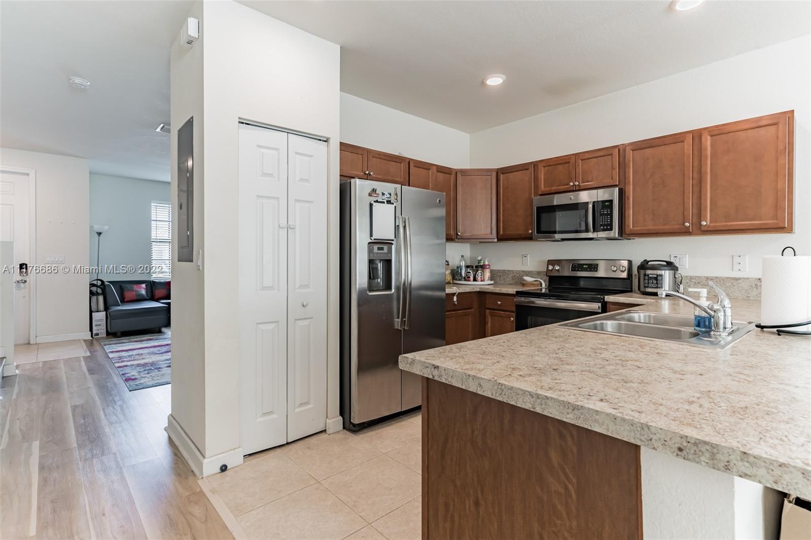 Welcome home! Gated, resort style community complete w/ resort style pool, gym with children's play area, various entertainment rooms plus playgrounds throughout. This transitional villa features 3 Bedrooms, 2 bathrooms on the second floor. Main living areas: living room, dining/family combo, half bathroom & enclosed PVC fenced backyard with pavers. No grass to mow. This home has lots of natural light and wood style laminate floors - seller states installed 2019. Close to I-75, US-27, Turnpike, SR826 and The 924. HOA requires a Minimum 680 credit score.