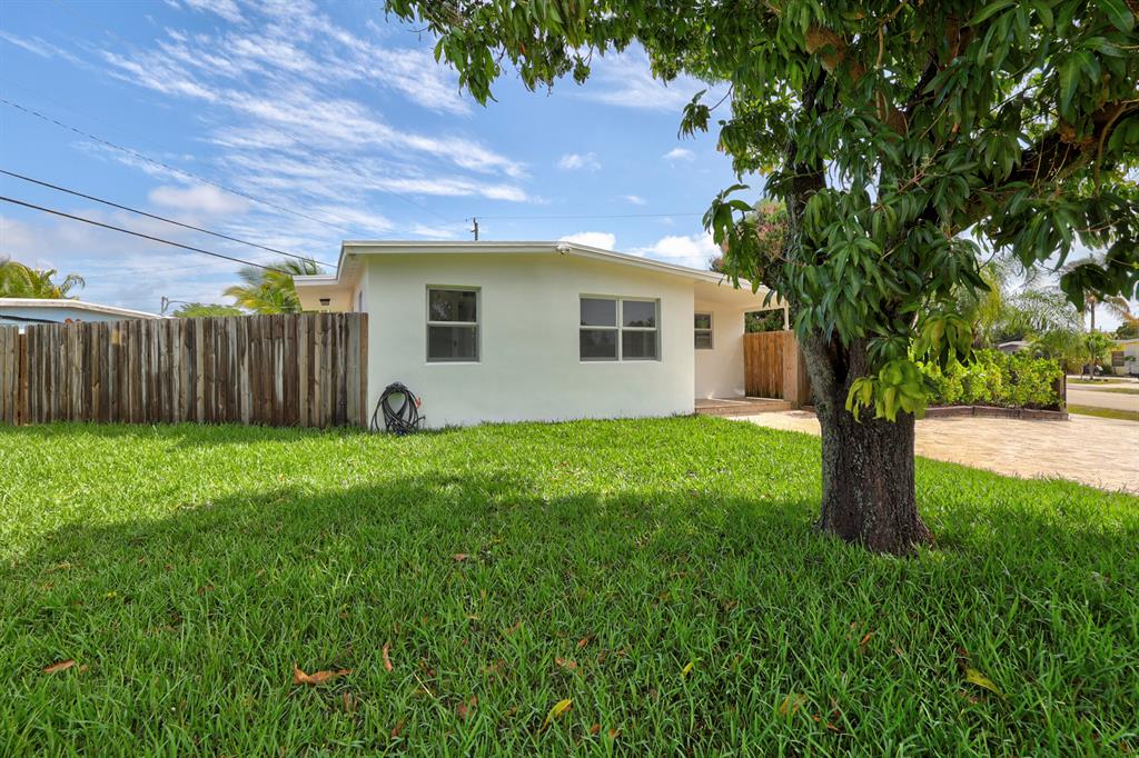 JUST LISTED HOME A RARE FIND IN THE HEART of The Pompano Beach Highlands WITH HUGE LOT NO HOA CAN RENT RIGHT AWAY THIS Totally renovated 2/1 house close to US1,10 min from beautiful beaches. large corner lot over 8500 sqft, fenced front and rear yards, marble paved driveway and 2 large patios,new sprinkler system on well, new central A/C, tankless water heater , new Samsung appliances, quartz countertops , impact windows and doors.laundry room. upgraded kitchen & bathroom.laundry room. everything in this house is new . Very large yard with double gates will accomadate large trailer,boat,RV. plenty of room for a pool. This won't last !