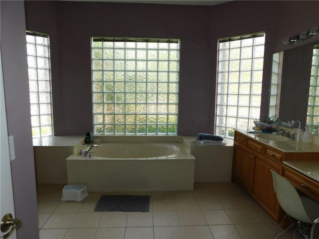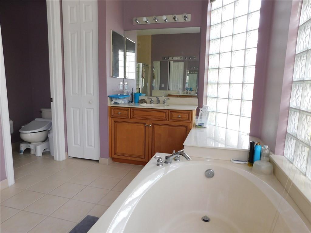 One story, 5 bedroom, 3 bathrooms, 3-car garage. Brick paved driveway leads to walkway to the front door. Roofed patio with brick pavers. Accordion shutters for all windows. Multi zone A/C 2 units (one for master suite; the other for the rest of house). Laundry room with wash tub(sink). Two bedrooms share the hall bathroom; other two bedrooms jointed with a specious Jack & Jill bathroom. Knock down walls and ceilings throughout. Tiles floor living area; laminated floors in bedrooms. Master bedroom opens to covered roofed patio; two specious walk-in closets. Master bath has Roman tub separates his & hers sinks. Clubhouse, ballroom, pool, gym, tennis courts, basketball courts, and more.