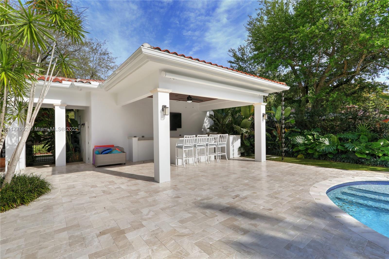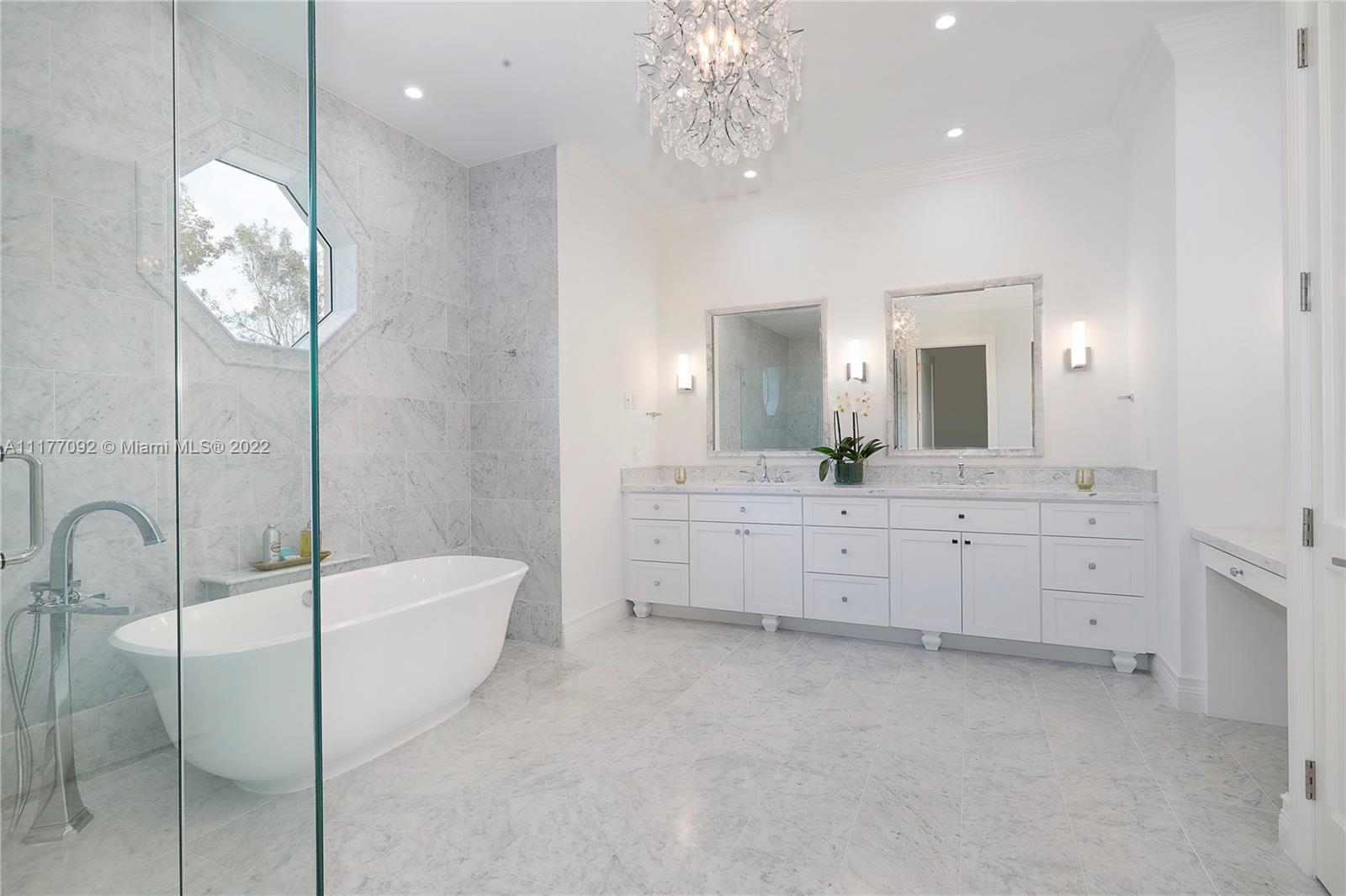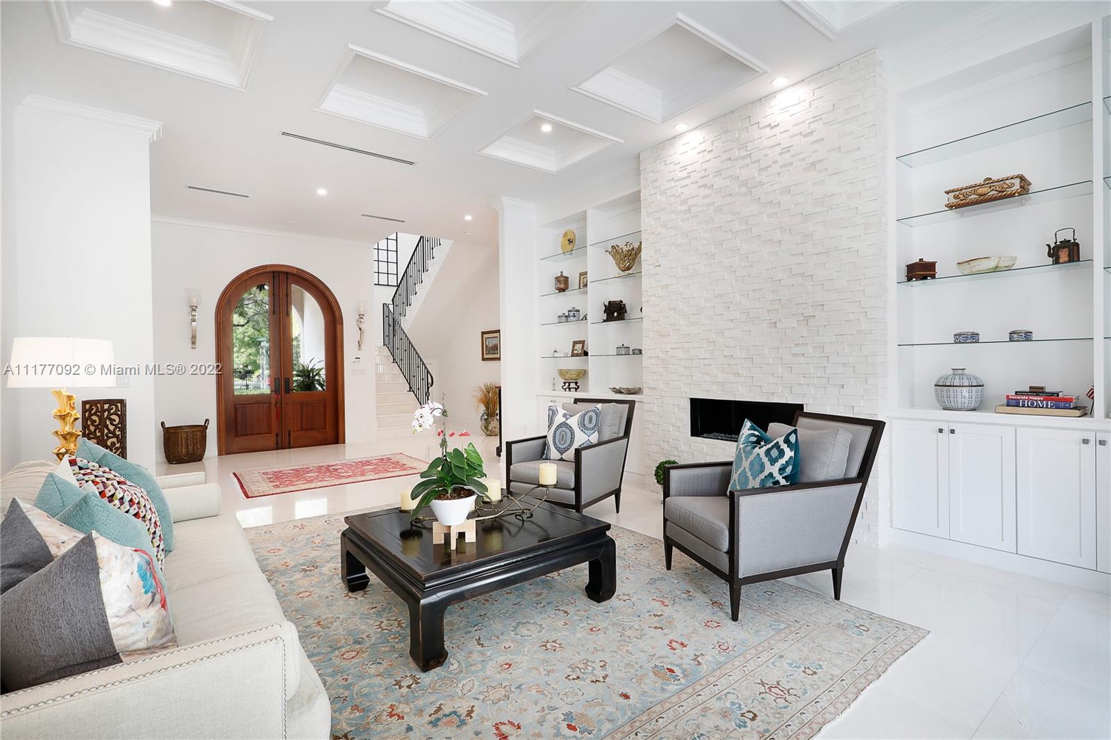Move right into this stunning 2020-built 5 BR, 5.5 BA, 5,675 SF home on a magnificently-landscaped 13,267SF lot in the heart of the Golden Triangle. From the moment you walk through the arched front doors, you will see that no detail has been overlooked, incl coffered ceilings & stacked stone mantle in the formal liv rm, wood & marble floors, & beautiful built ins. Open to the spacious family rm, the chef’s kitchen has a huge center island, Wolf & Sub Zero appliances & abundant storage. The 1st floor primary suite incl massive walk-in closet & gorgeous marble BA w/ 2 sinks, shower & tub. Every BR includes an elegant BA & walk-in closet. Outside enjoy the summer kitchen, patio, pool & spa in total privacy. High ceilings, plantation shutters, laundry rm, 2 car gar, impact glass & more!