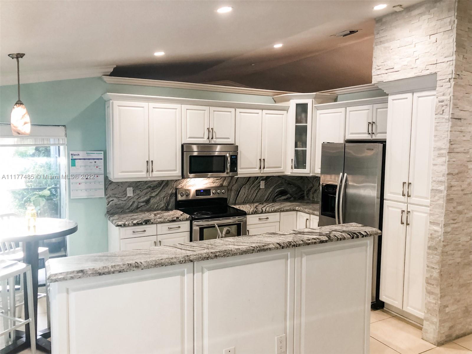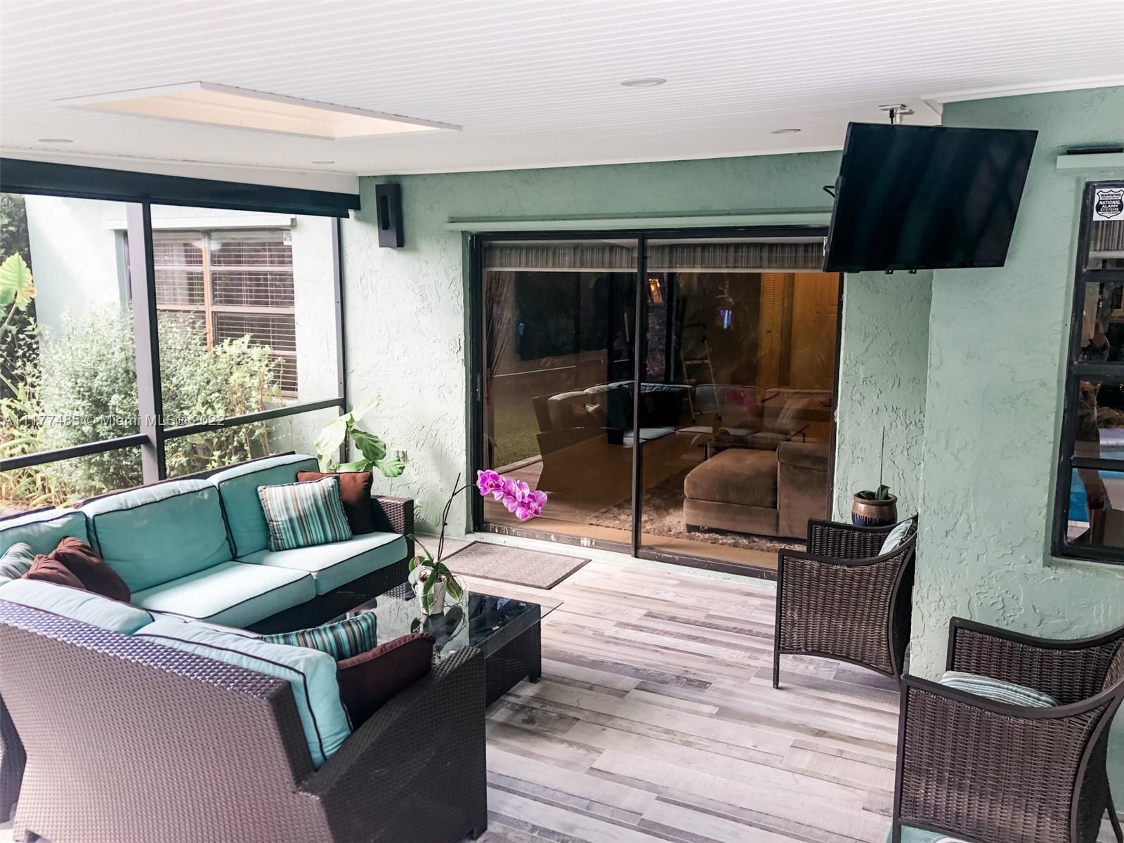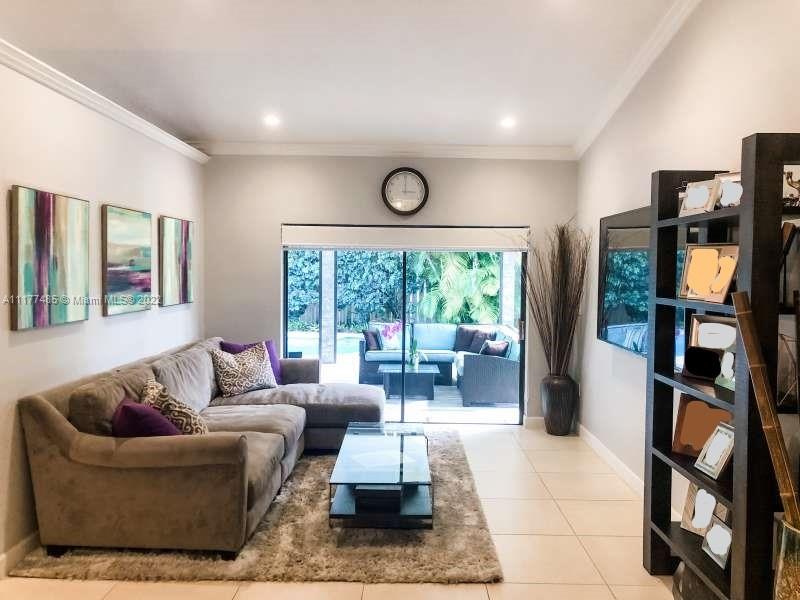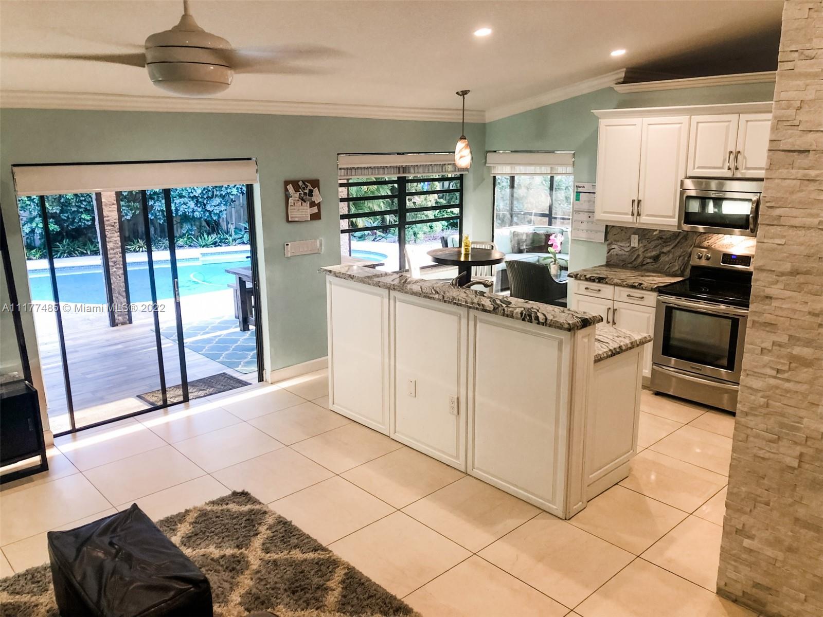 Updated 3/2 on a spacious corner lot in West Davie. Neighborhood living with sidewalks. Split floorplan with vaulted ceilings. Kitchen has granite countertops and stainless steel appliances. Completely upgraded patio is perfect for entertaining with recently tiled floors, insulated ceiling to cool it down, app-controlled speaker system, dimmable lighting, remote controlled roller screens with additional roller shade to block the afternoon sun. Neutral tile throughout main living areas and wood floors in bedrooms. Extra large washer and dryer. Pool has disco lighting and a fence. Extra-wide driveway. Very close to park and splash pad. Close to Weston, major highways, Mall, tons of activities and nightlife.