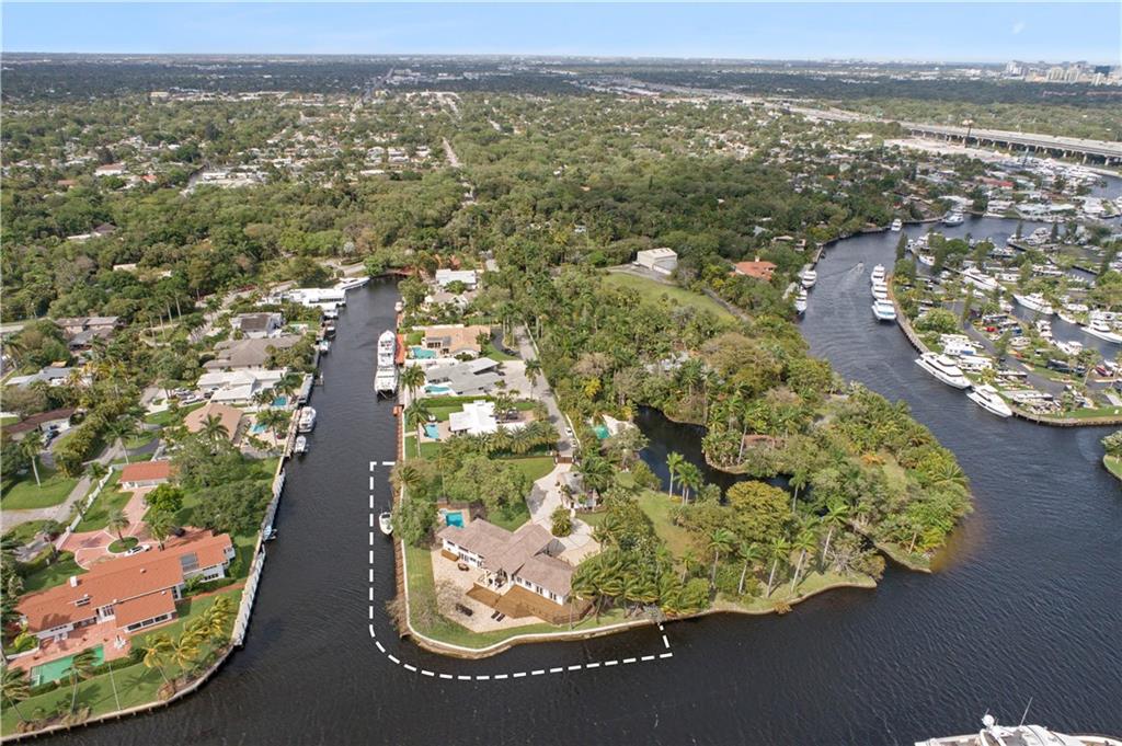 421 Ft Of Deep Waterfront Ideal For The Avid Yachtsman looking to dock a large or multiple vessels. Gated & secured estate, a point lot comprised of almost 1 full acre on the New River, no fixed bridges & across from the protected Secret Woods Nature Center. Experience the S. Florida tropical dream with breathtaking waterway views, multiple outdoor living spaces, a heated pool & spa, an oversized patio area, lanai & tremendous green space with lush foliage. This contemporary estate features an open design, soaring ceilings, a media room & gourmet kitchen opening to a large family room. The enormous primary bedroom boasts unparalleled views of the waterway, private access to the pool & spa, a seating area, spacious dressing area with custom closets & lavish bathroom. Sq ft from BCPA