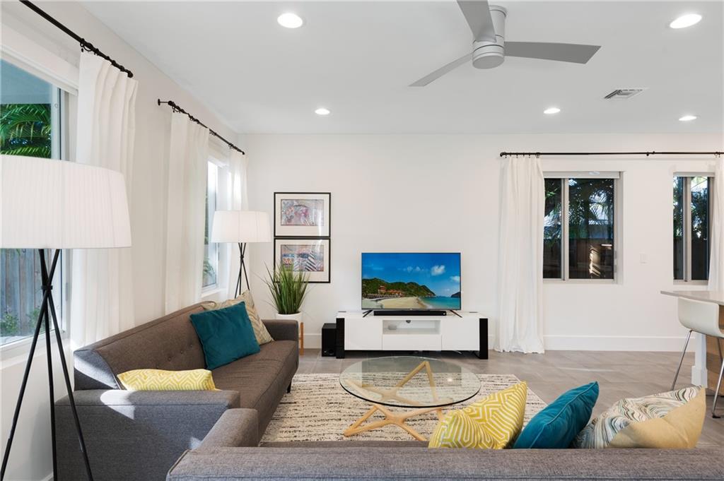 WOW!! Newer construction home! 4 bedrooms. 4 full & 1 half bath. 2 car garage. HUGE yard. Covered patio. High end finishes include porcelain tile & wood floors throughout, Italian cabinetry, quartz countertops, oversized baseboard, 8' doors, enormous laundry room, anodized aluminum frames on hurricane impact doors & windows, TONS of storage, every closet is custom & fully built out, Pull out drawers in kitchen, Solar shades on windows, walk in pantry, upgraded stainless steel banister, chefs kitchen with cooktop & wall oven, oversized island, sliding barn doors, Fenced in yard (Room for pool), custom drapes, gorgeous light fixtures & Ceiling fans, energy efficient LED lights. Bedroom with ensuite bath and private entrance on ground level. Close to Las Olas & Beach!! NO HOA!!