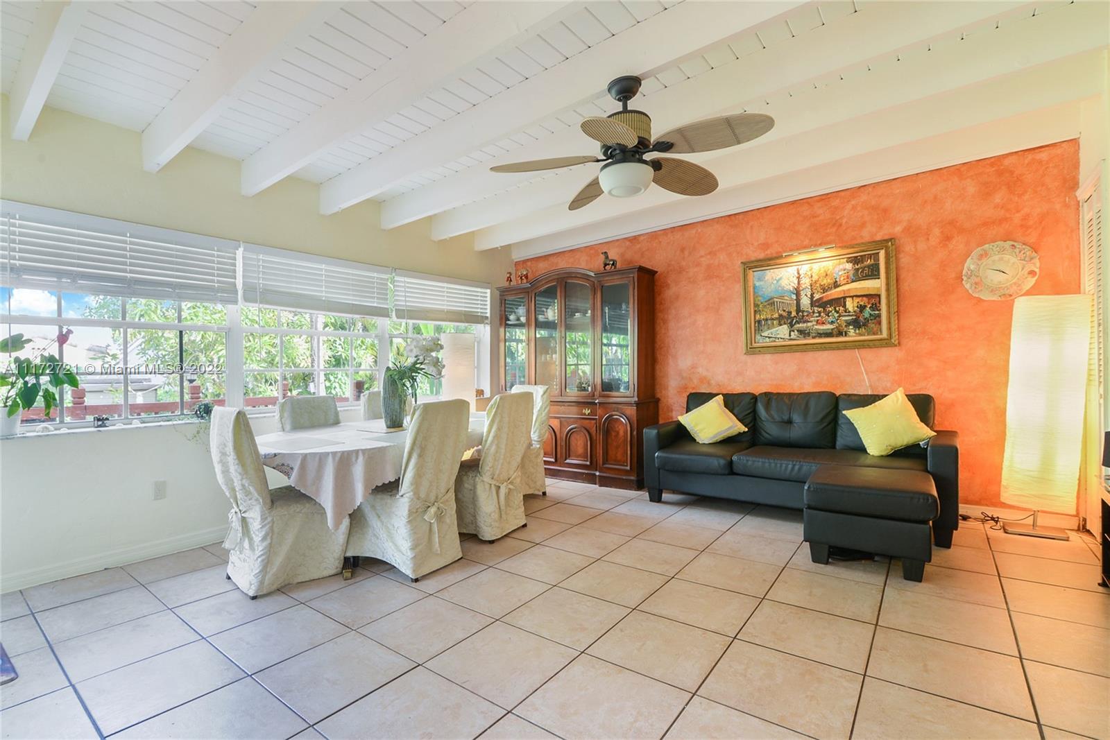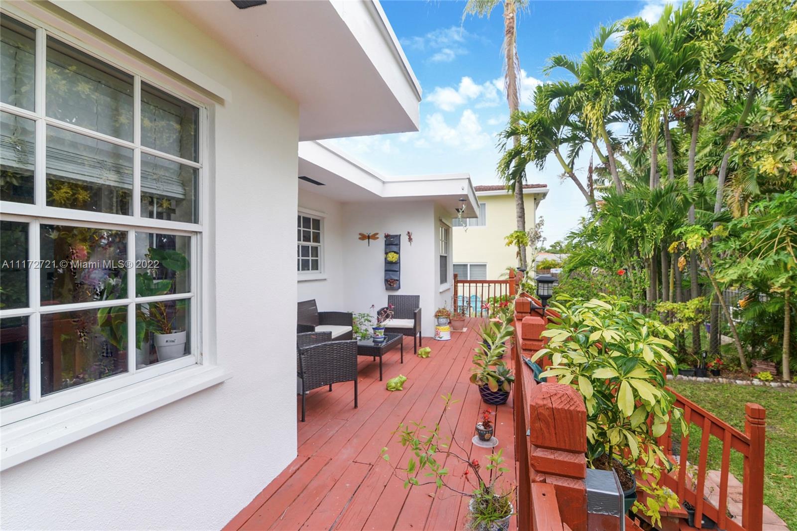 Spacious two-story Surfside beach home brimming with unique architecture, charm & natural light. The house has 2681 total sq ft & 4 large bedrooms*, 3-1/2 updated bathrooms & an office. Beyond the foyer is the living room with cathedral ceilings, fireplace & porcelain tile floors. The huge kitchen has quartzite countertops & is adjacent to the dining room, both overlooking the garden with fruit trees. French doors lead to the deck & beautiful backyard with room for a pool. Well-located near the beach, Miami Beach, Surfside Community Center, Bal Harbour Shops & tot lot park is 1/2 block away. Zoned for A-rated Bay Harbor Schools. *Although property appears in County tax records as a 3-bedroom house, there are areas that have been utilized as a 4th bedroom & an office.