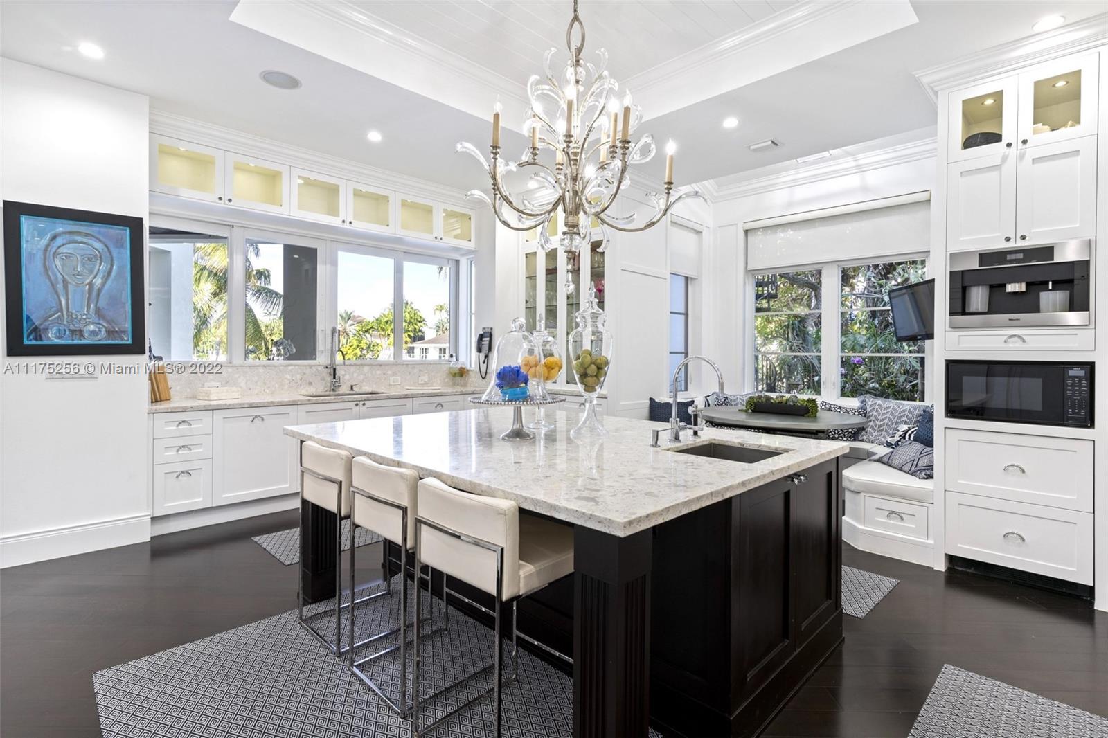 Waterfront, no bridge to bay, 6BR/6.5BA custom built home located in the guard gated community of Gables by the Sea. Elevated entrance opens to a light filled open living space with double height ceilings. Custom kitchen features top of the line appliances and quartz counter tops. French doors open to an oversized covered terrace with summer kitchen overlooking the pool and water way. Opulent primary suite with his and hers walk in closets and spa like bath. This home has it all, full home generator, impact windows and doors, elevator, security system, cabana bath, gym, family room, home office and is located close to Miami’s best private and public schools.