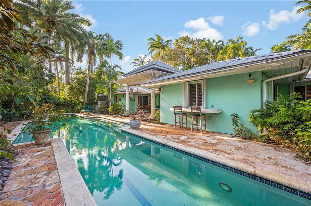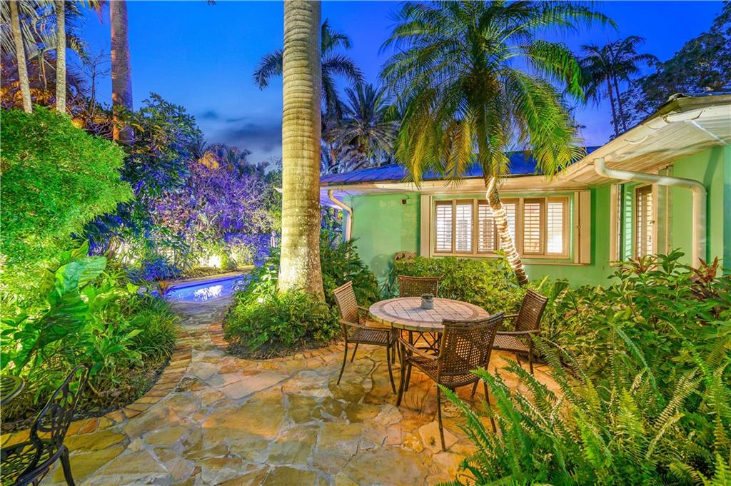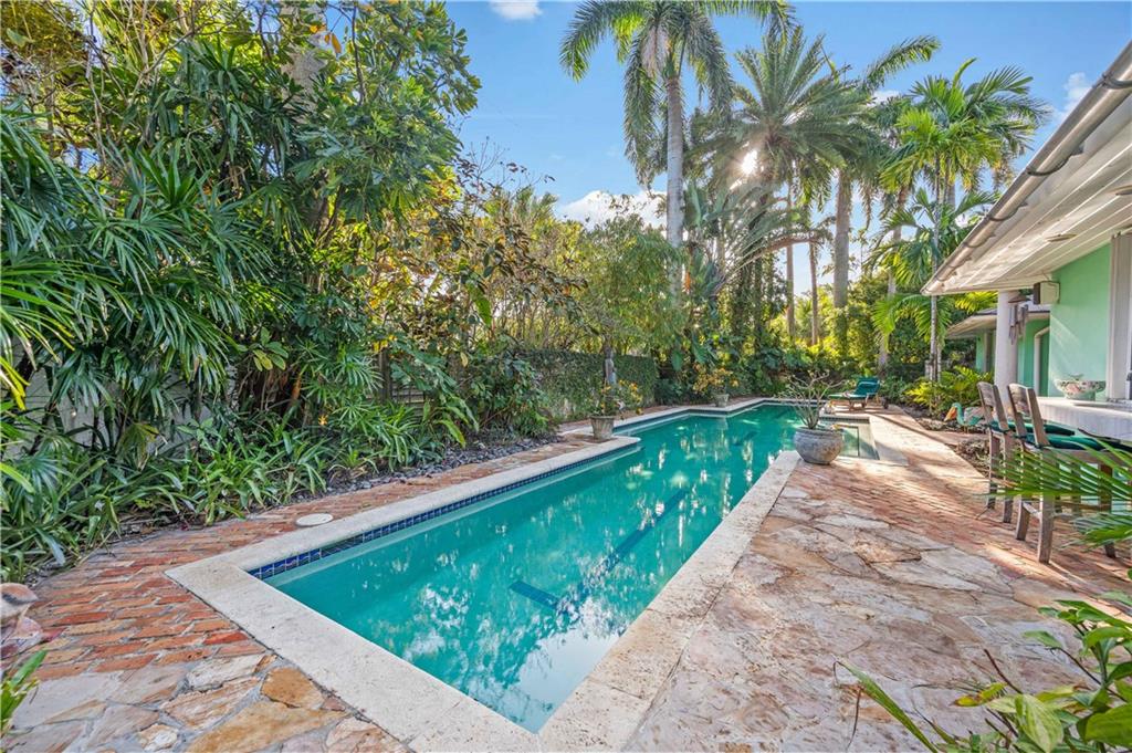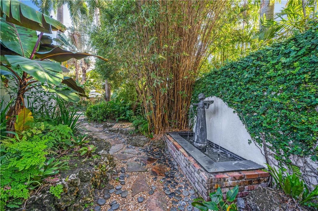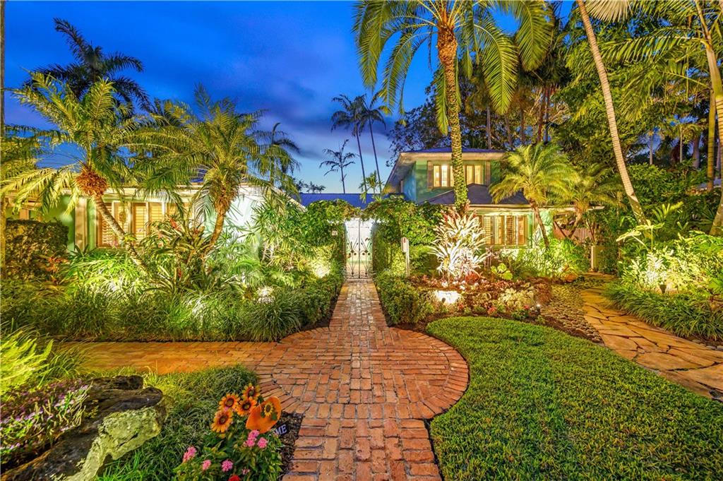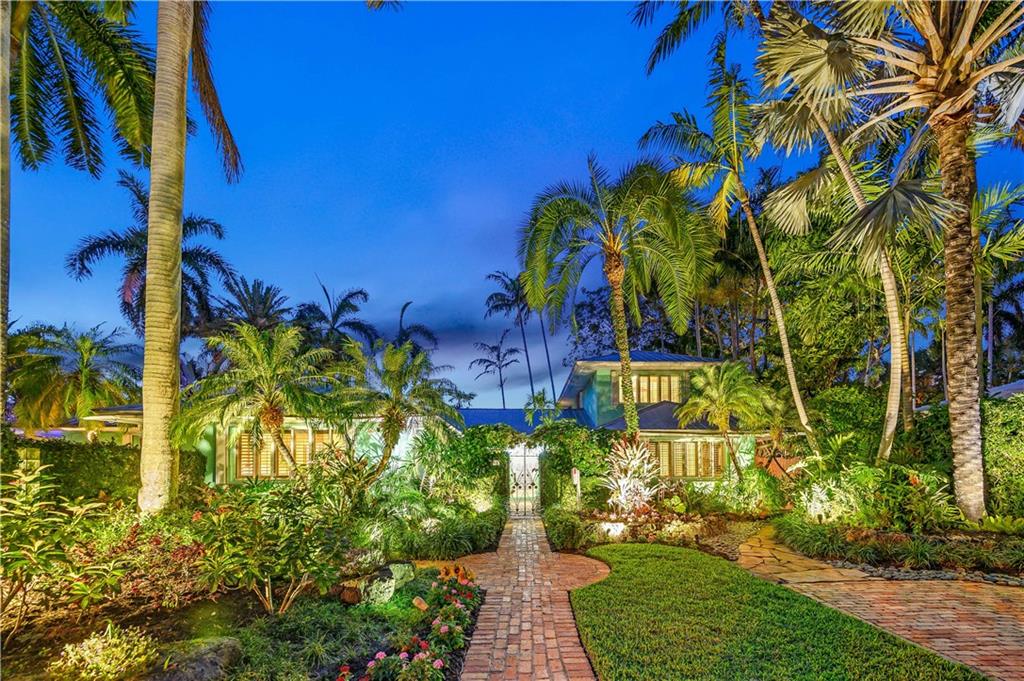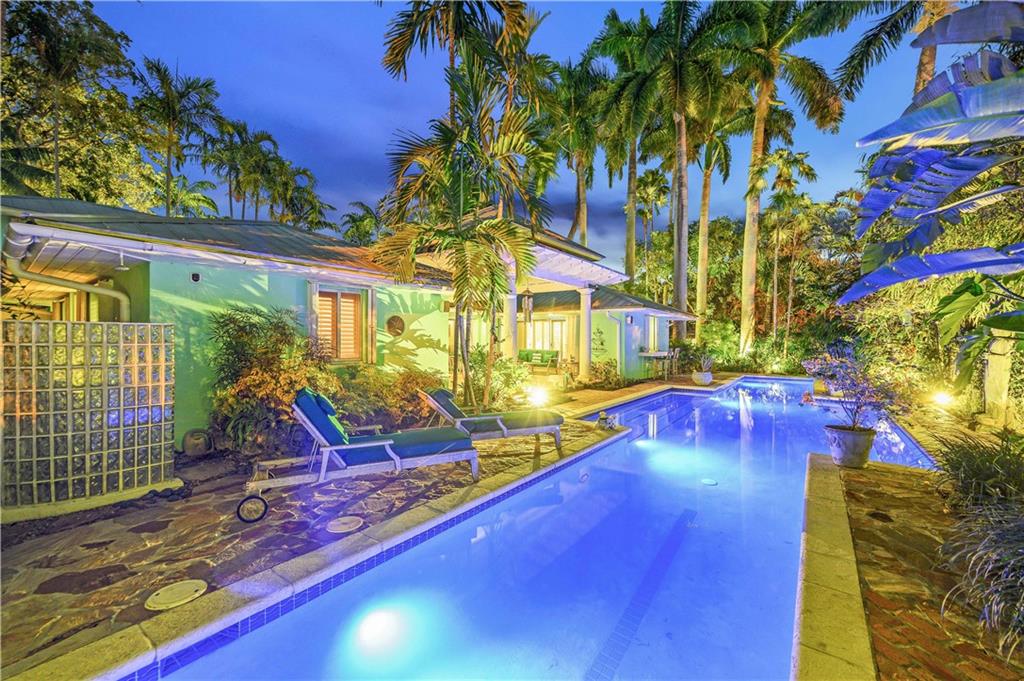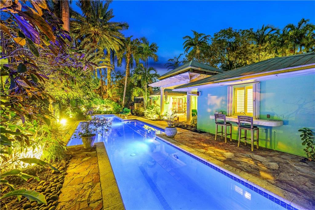 Award Winning Gardens and Design. Situated on a sprawling 12,000+SF lot this impressive residence encompasses tropical coastal architecture that features three bedrooms and three baths on the main level plus a separately metered studio plus a private second floor one bedroom, one bath separately metered apartment. Currently used as a 3/3 by the owners using both attached studio and 1/1 as rentals. Ideal property as live/rent residence for home office or guest/nanny suite or any living combination required. Interiors offer volume ceilings, built-ins, tons of closet space, a well designed eat-in kitchen with wet bar, three on-suite bedrooms with vaulted wood ceilings, formal dining room and family room. Picturesque private gardens surround a resort-style 64 foot lap pool and roofed terrace.
