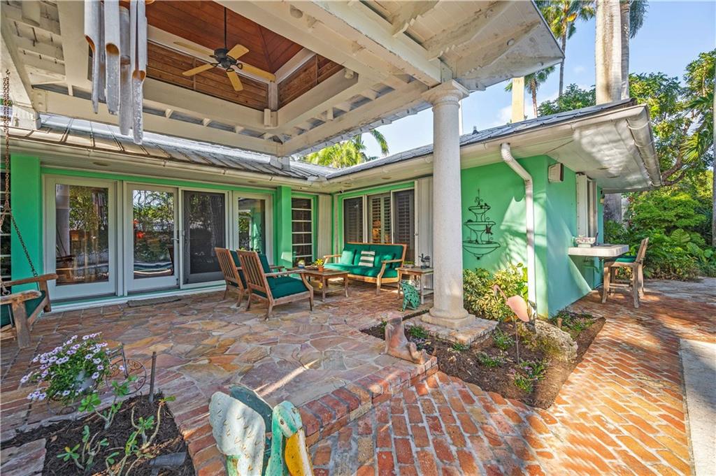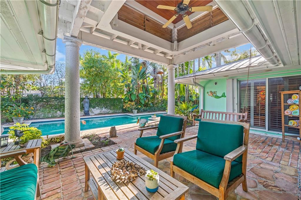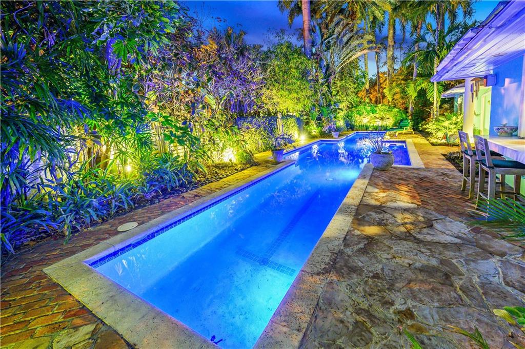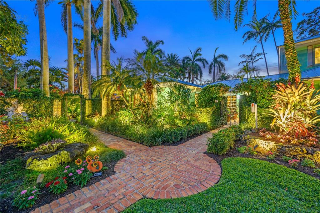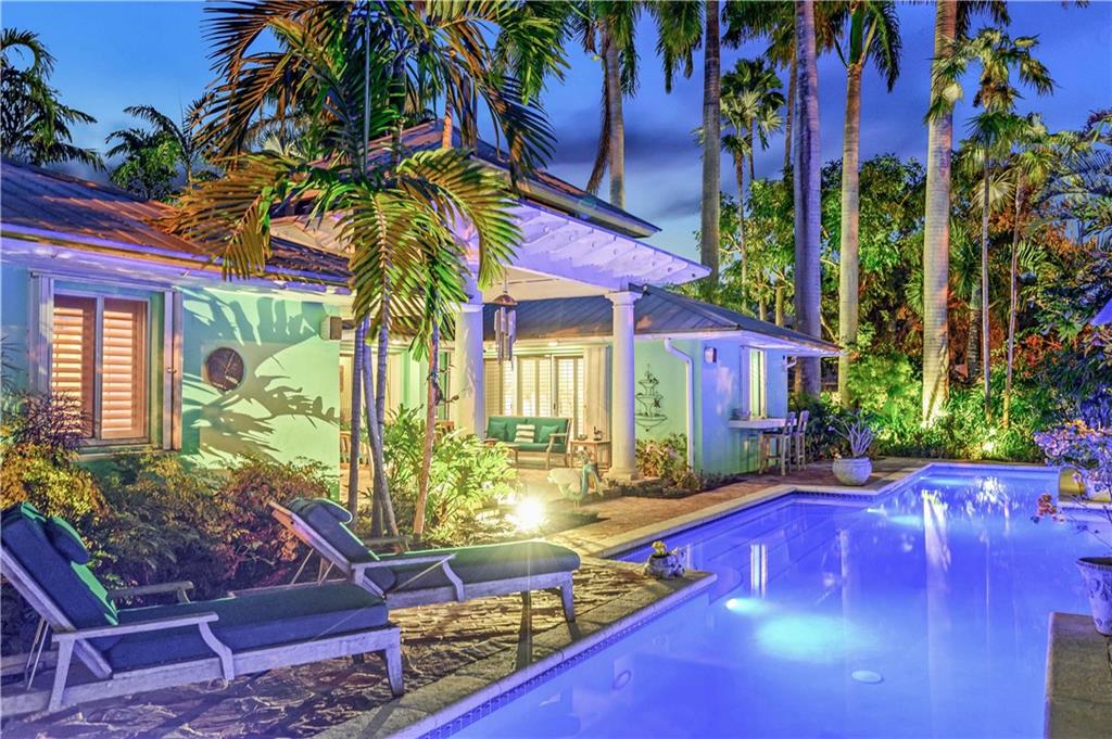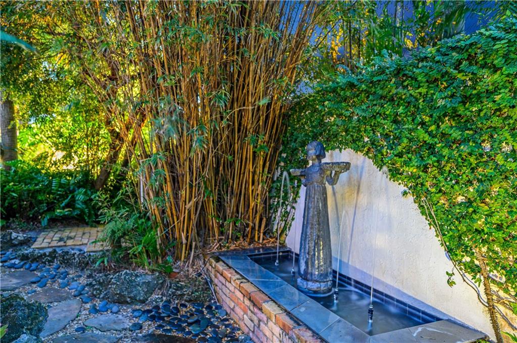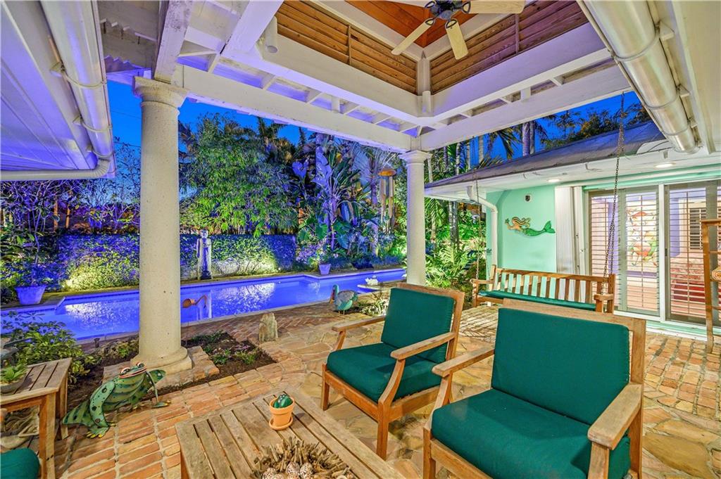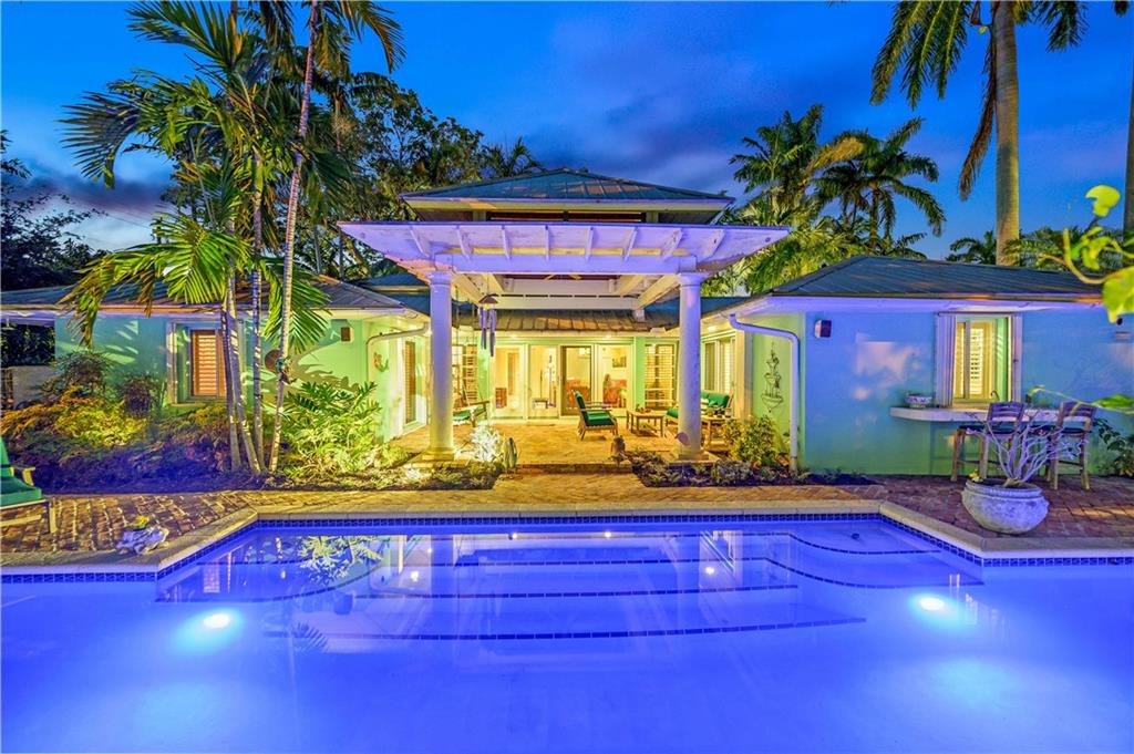 Award Winning Gardens and Design. Situated on a sprawling 12,000+SF lot this impressive residence encompasses tropical coastal architecture that features three bedrooms and three baths on the main level plus a separately metered studio plus a private second floor one bedroom, one bath separately metered apartment. Currently used as a 3/3 by the owners using both attached studio and 1/1 as rentals. Ideal property as live/rent residence for home office or guest/nanny suite or any living combination required. Interiors offer volume ceilings, built-ins, tons of closet space, a well designed eat-in kitchen with wet bar, three on-suite bedrooms with vaulted wood ceilings, formal dining room and family room. Picturesque private gardens surround a resort-style 64 foot lap pool and roofed terrace.