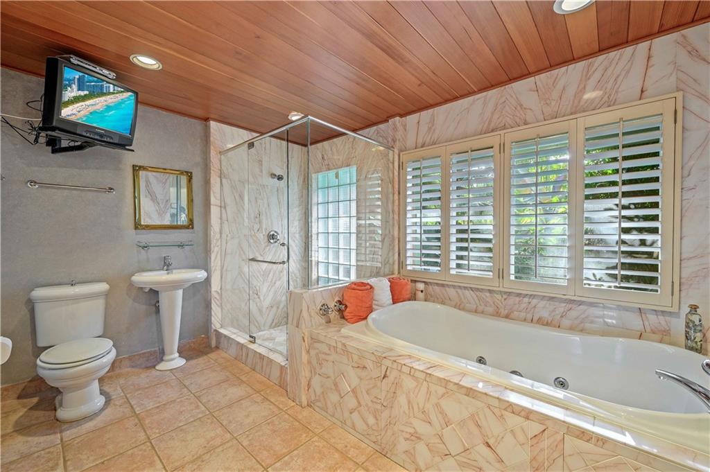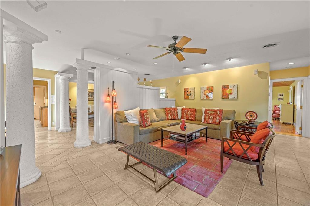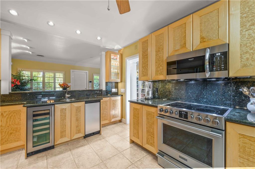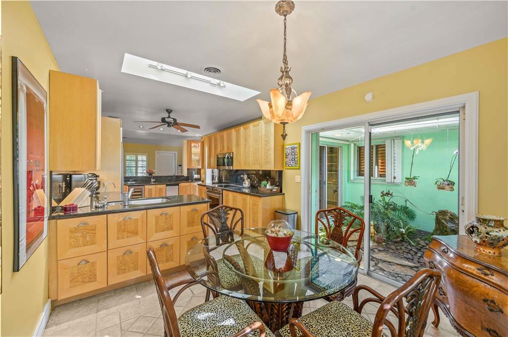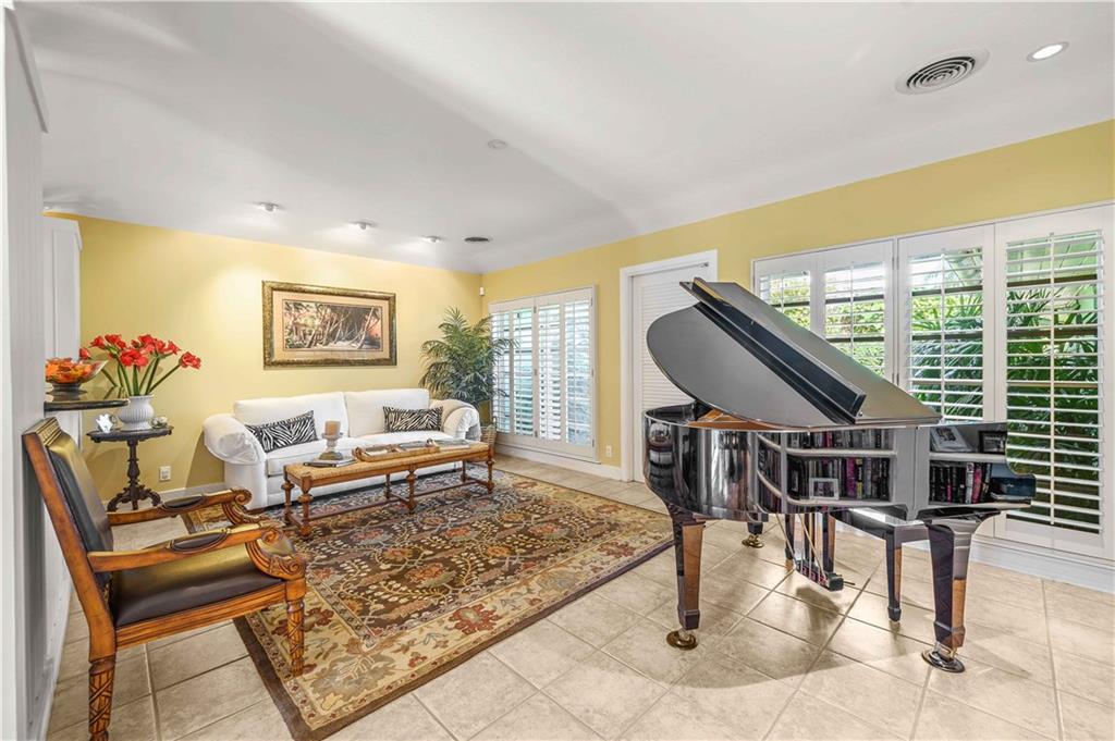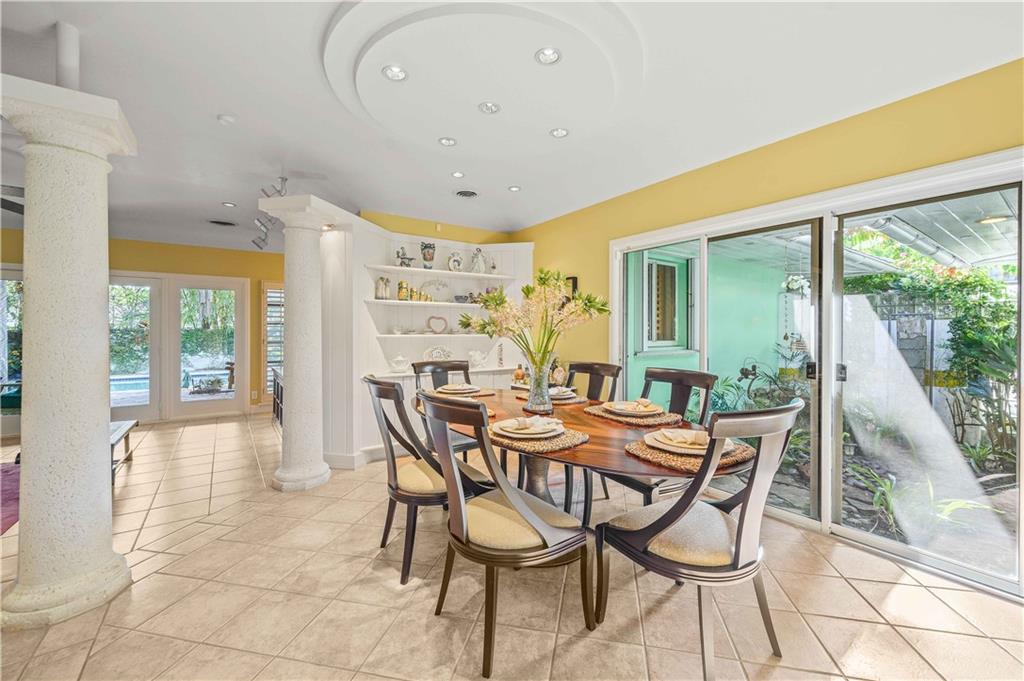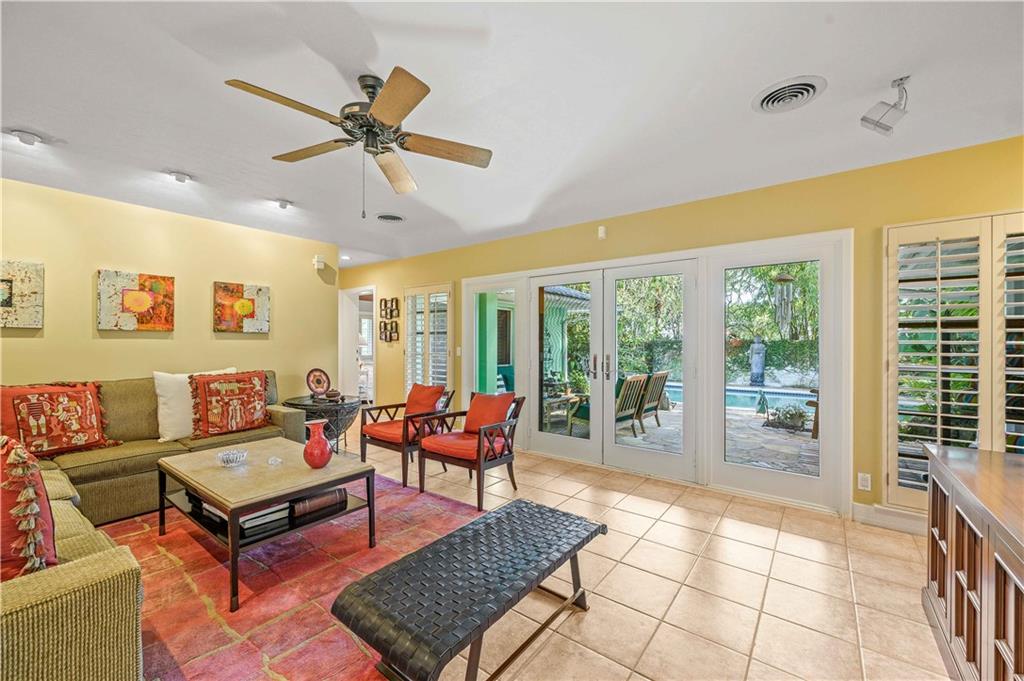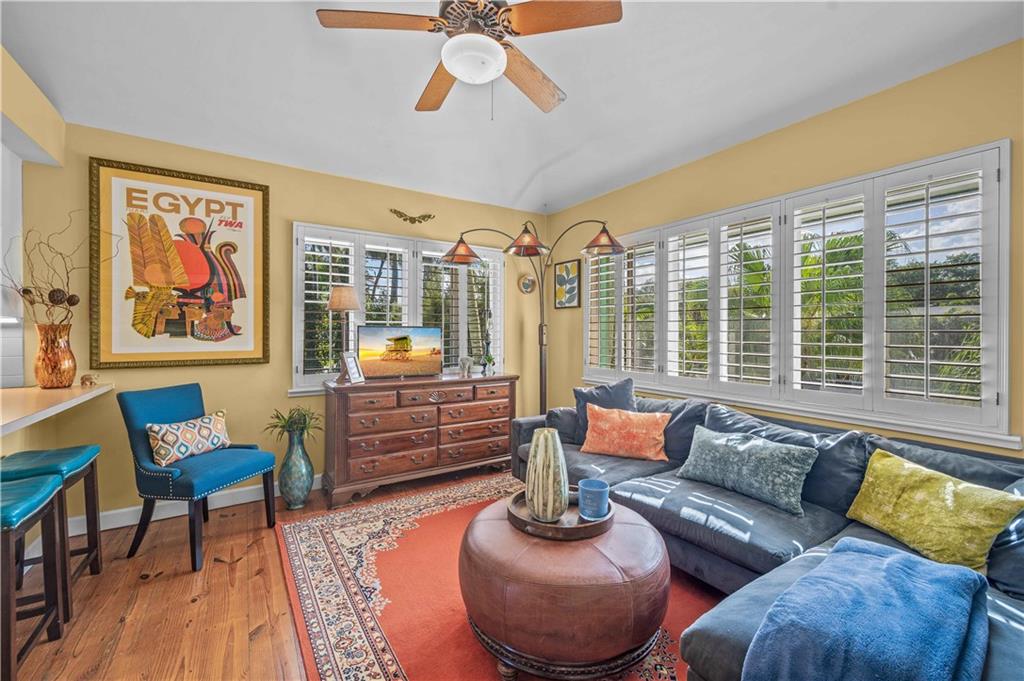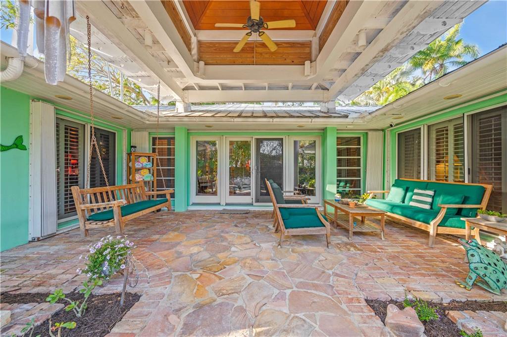 Award Winning Gardens and Design. Situated on a sprawling 12,000+SF lot this impressive residence encompasses tropical coastal architecture that features three bedrooms and three baths on the main level plus a separately metered studio plus a private second floor one bedroom, one bath separately metered apartment. Currently used as a 3/3 by the owners using both attached studio and 1/1 as rentals. Ideal property as live/rent residence for home office or guest/nanny suite or any living combination required. Interiors offer volume ceilings, built-ins, tons of closet space, a well designed eat-in kitchen with wet bar, three on-suite bedrooms with vaulted wood ceilings, formal dining room and family room. Picturesque private gardens surround a resort-style 64 foot lap pool and roofed terrace.