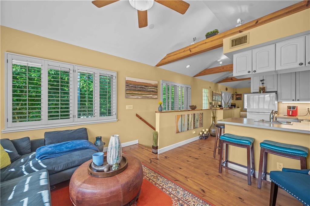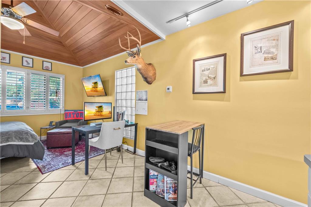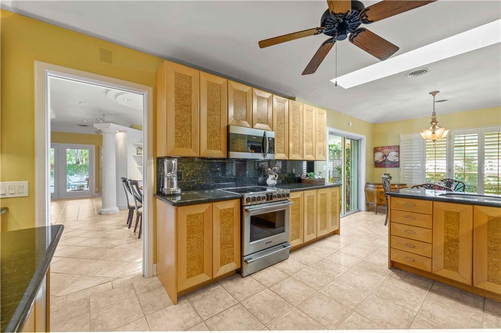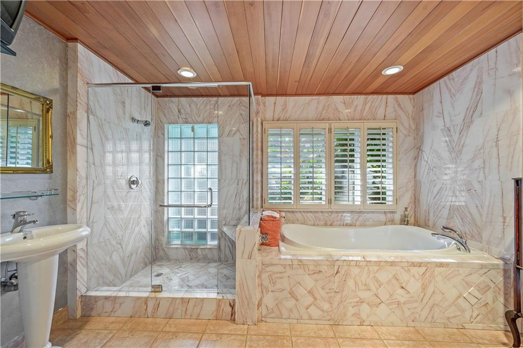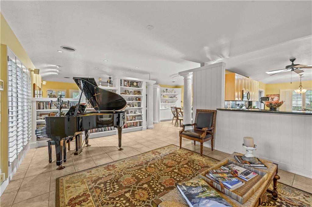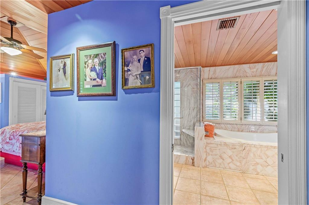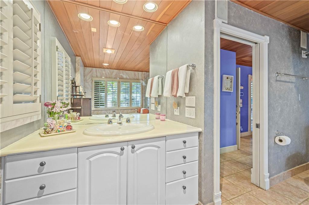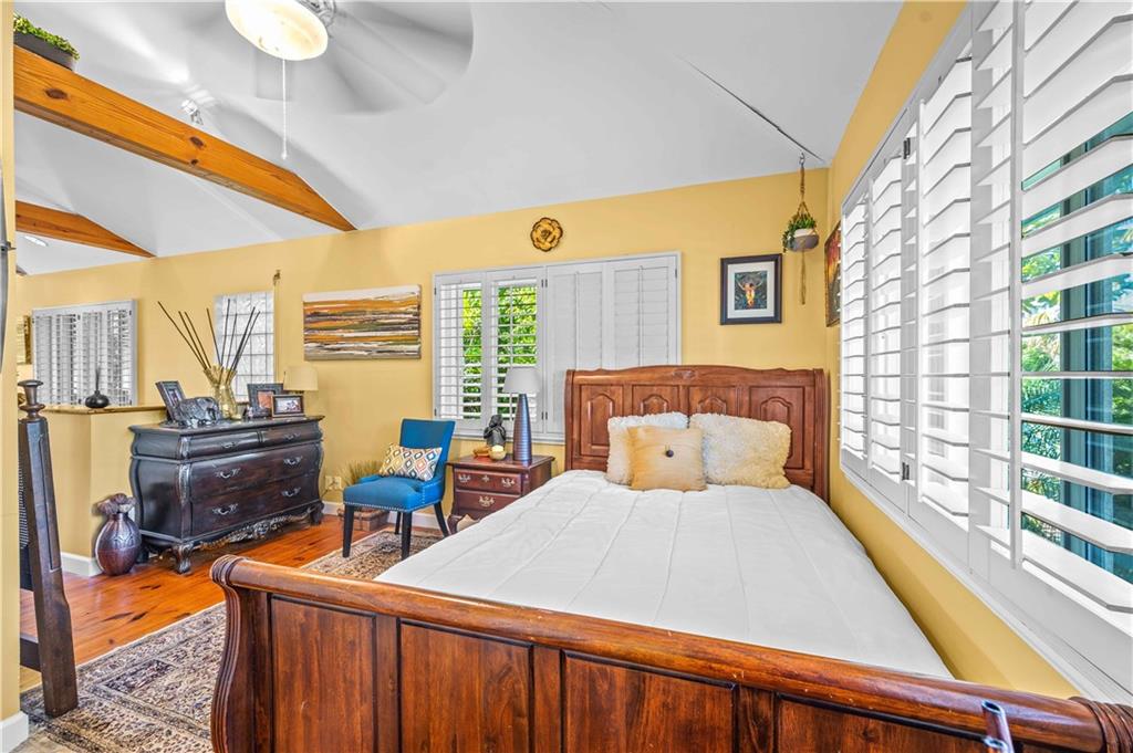 Award Winning Gardens and Design. Situated on a sprawling 12,000+SF lot this impressive residence encompasses tropical coastal architecture that features three bedrooms and three baths on the main level plus a separately metered studio plus a private second floor one bedroom, one bath separately metered apartment. Currently used as a 3/3 by the owners using both attached studio and 1/1 as rentals. Ideal property as live/rent residence for home office or guest/nanny suite or any living combination required. Interiors offer volume ceilings, built-ins, tons of closet space, a well designed eat-in kitchen with wet bar, three on-suite bedrooms with vaulted wood ceilings, formal dining room and family room. Picturesque private gardens surround a resort-style 64 foot lap pool and roofed terrace.