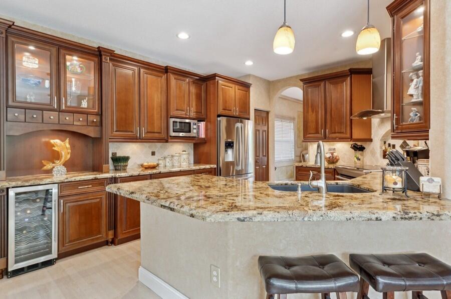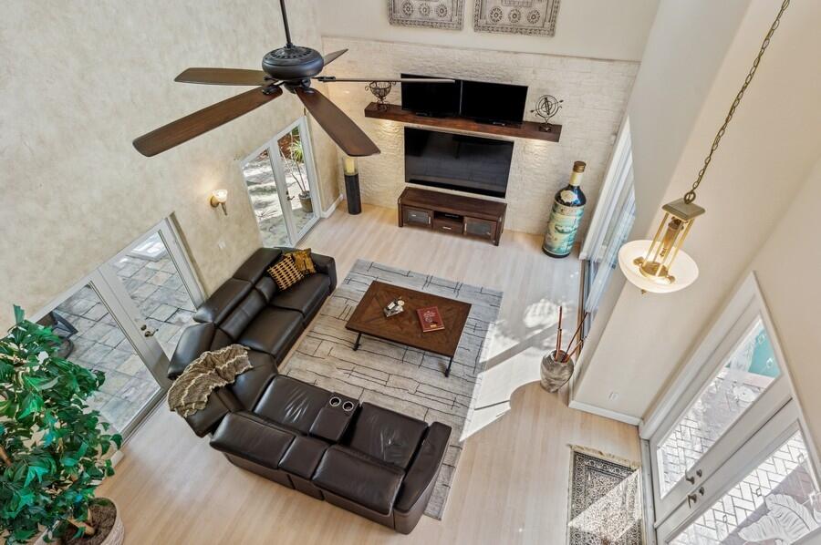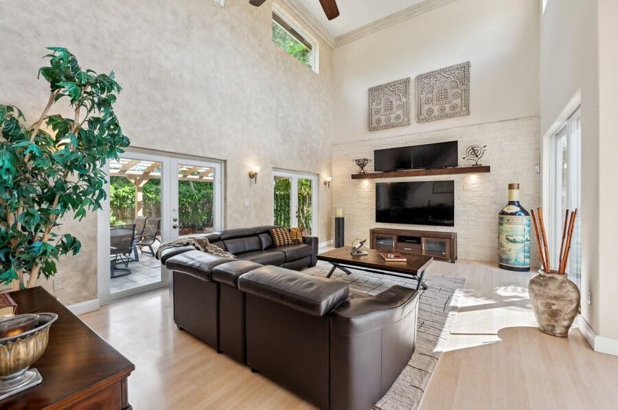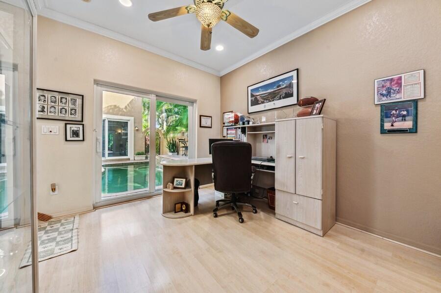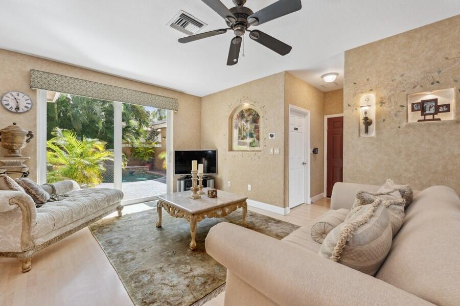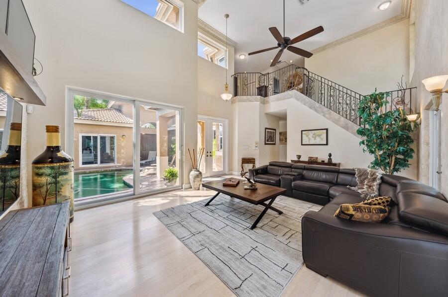 STUNNING 4BR/4BA/2CG courtyard pool home in gated Emerald Estates! Orig owners have spared no expense! Interior includes: 30 PGT impact glass except 2nd entry etched glass doors (clear panels), guest house (BR 4) which shares pool vistas w/main home, 2 newer AC's, WH(12/19), laminate flooring, custom paint & niches, crown molding, gorgeous reno'd kitchen w/shaker cabs, granite, S/S appliances & hood, beautifully reno'd, baths, laundry rm w/ new glass door, breathtaking LR w/ 20' ceiling, iron staircase, loft w/ Jack/Jill bath btw 2 BR's & Owners suite you won't want to leave w/ sitting area, custom closet & amazing bathroom w/spa tub, shower & dual sinks. Exterior features: lush tropical landscape w/lighting, pergola, paver back patio & sidewalks, heated pool, backyard spa & fenced yard.