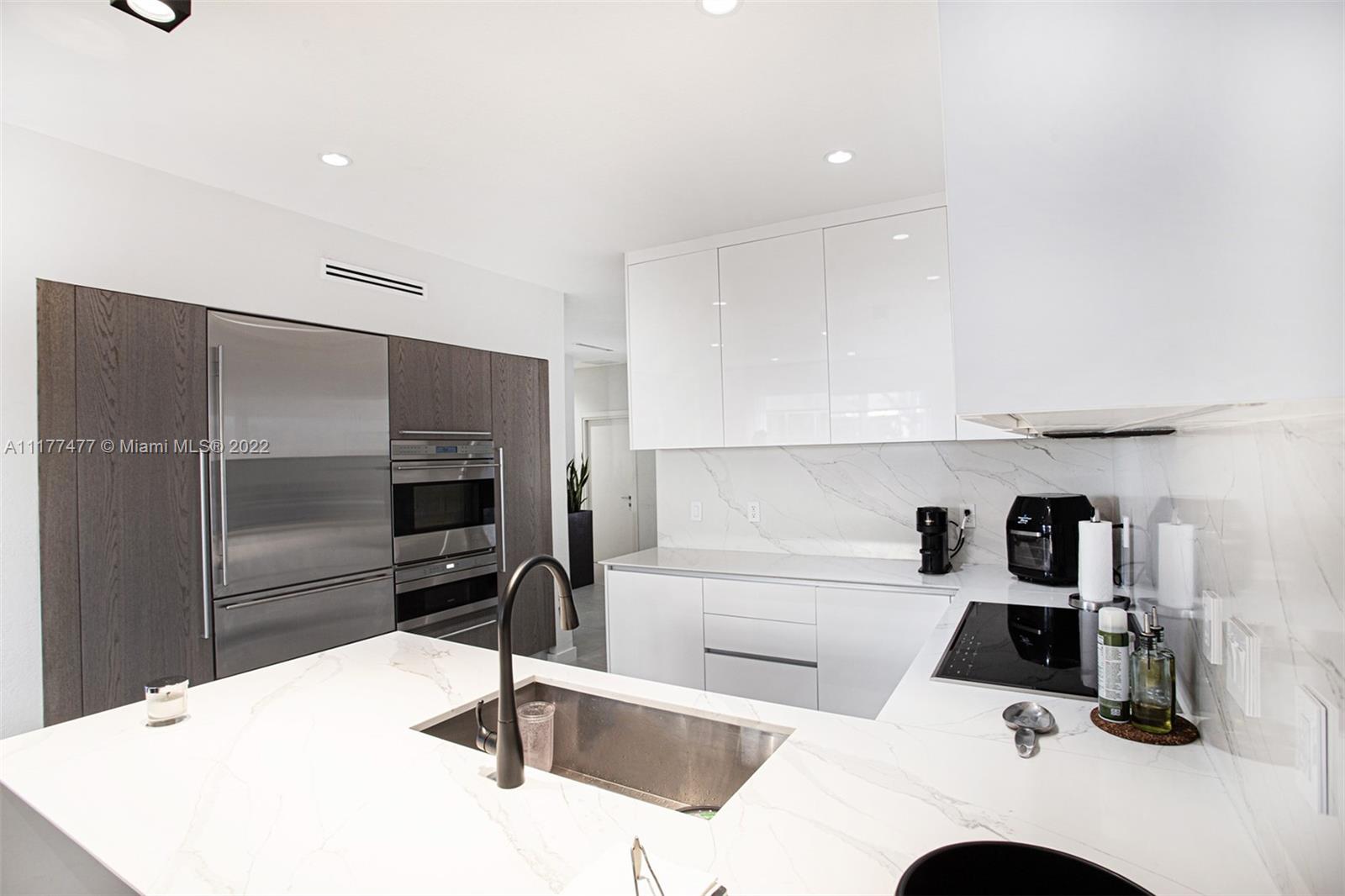 Don't miss it! Spacious renovated home in Mediterranean @island at Doral w/lots of fabulous features & modern upgrades: 1st floor bedroom w/full bath, italian porcelain & hardwood floors. Gorgeous modern kitchen: Subzero/Wolf appliances, induction cooker, top extractor, italian cabinets w/lights, quartz Counter. Modern Hotel style Master bath & half bath: Kohler fixtures, Duravit toilet, Lutron ceiling, wall & hand shower, modern bathtub. All doors are Italian, 2years old A/C, nest control, linear diffuser vents & roller shades in social areas, Bandalux blackouts & Built out closets in bedrooms. New Washer & Dryer. Lutron switches w/app, Ring door bell & smoke detectors, security cameras, retractable Patio Awning, open balcony, window Shutters, electric Garage Door. Security system w/ HOA.