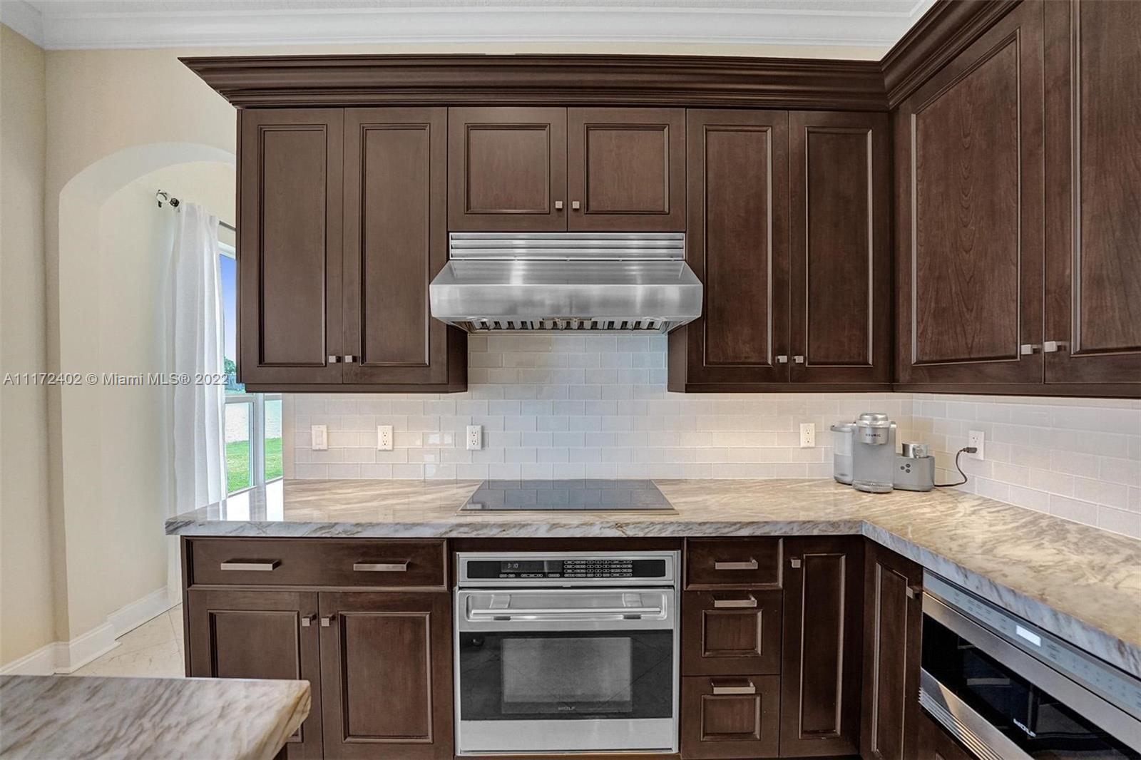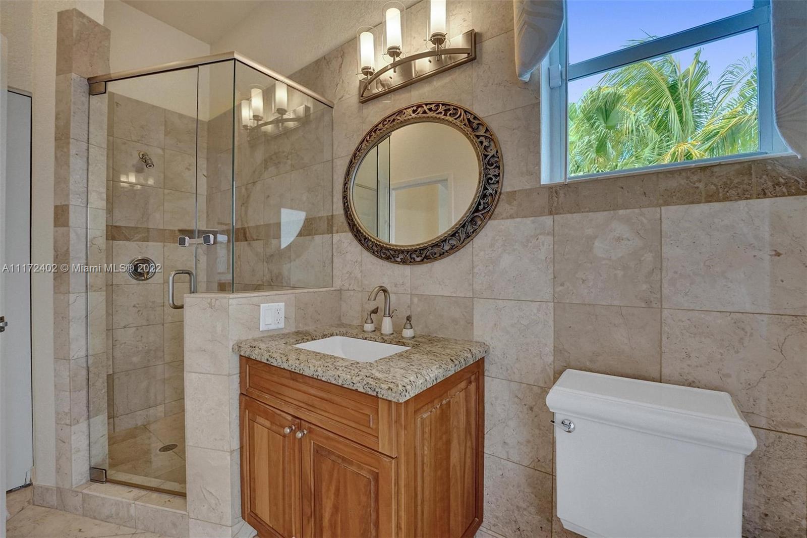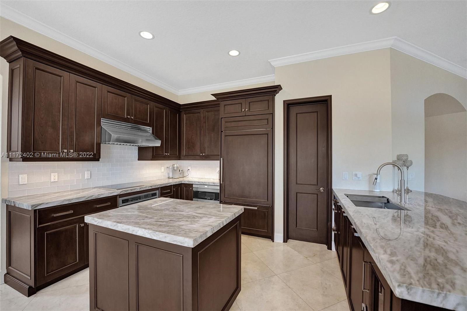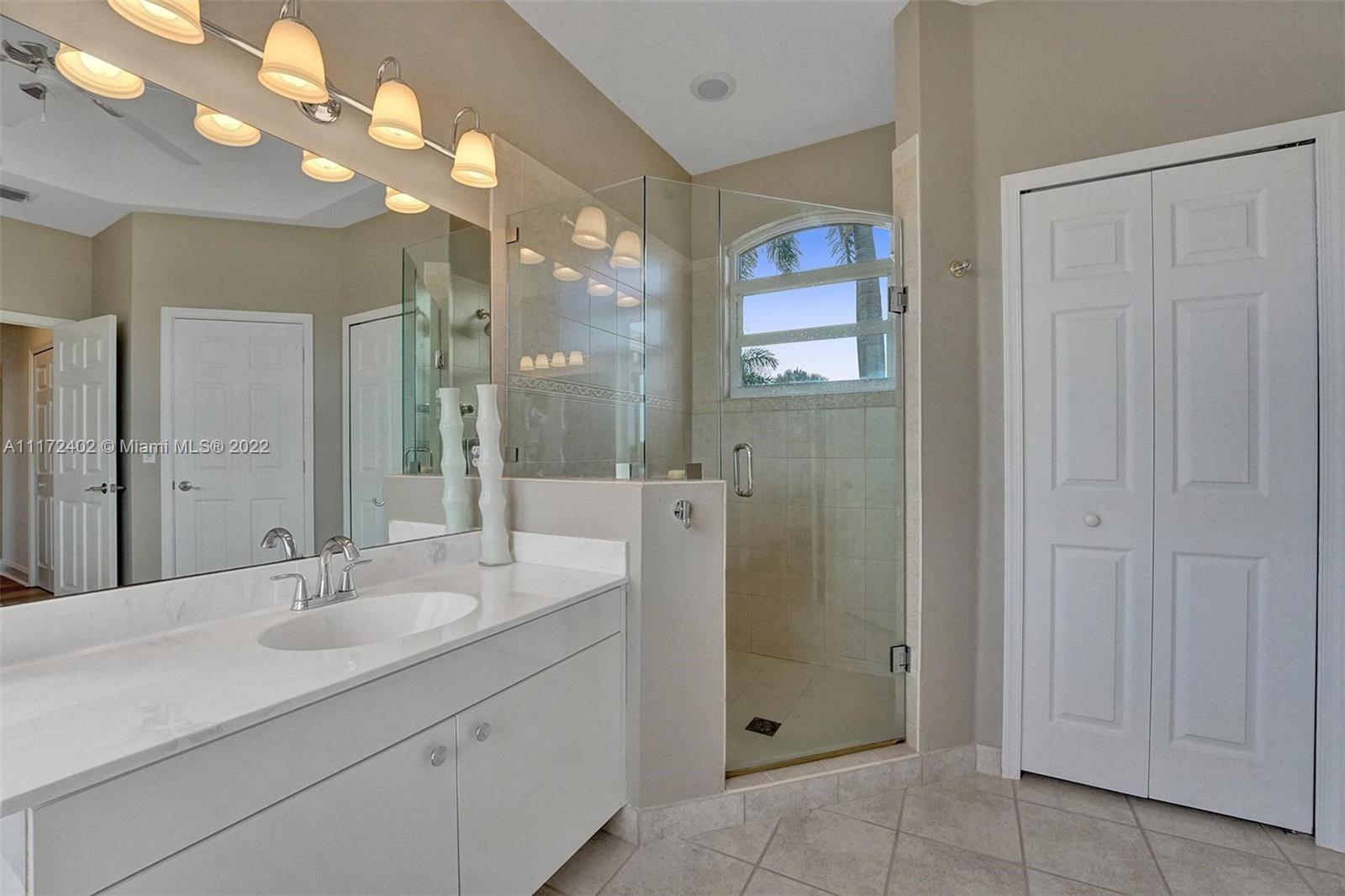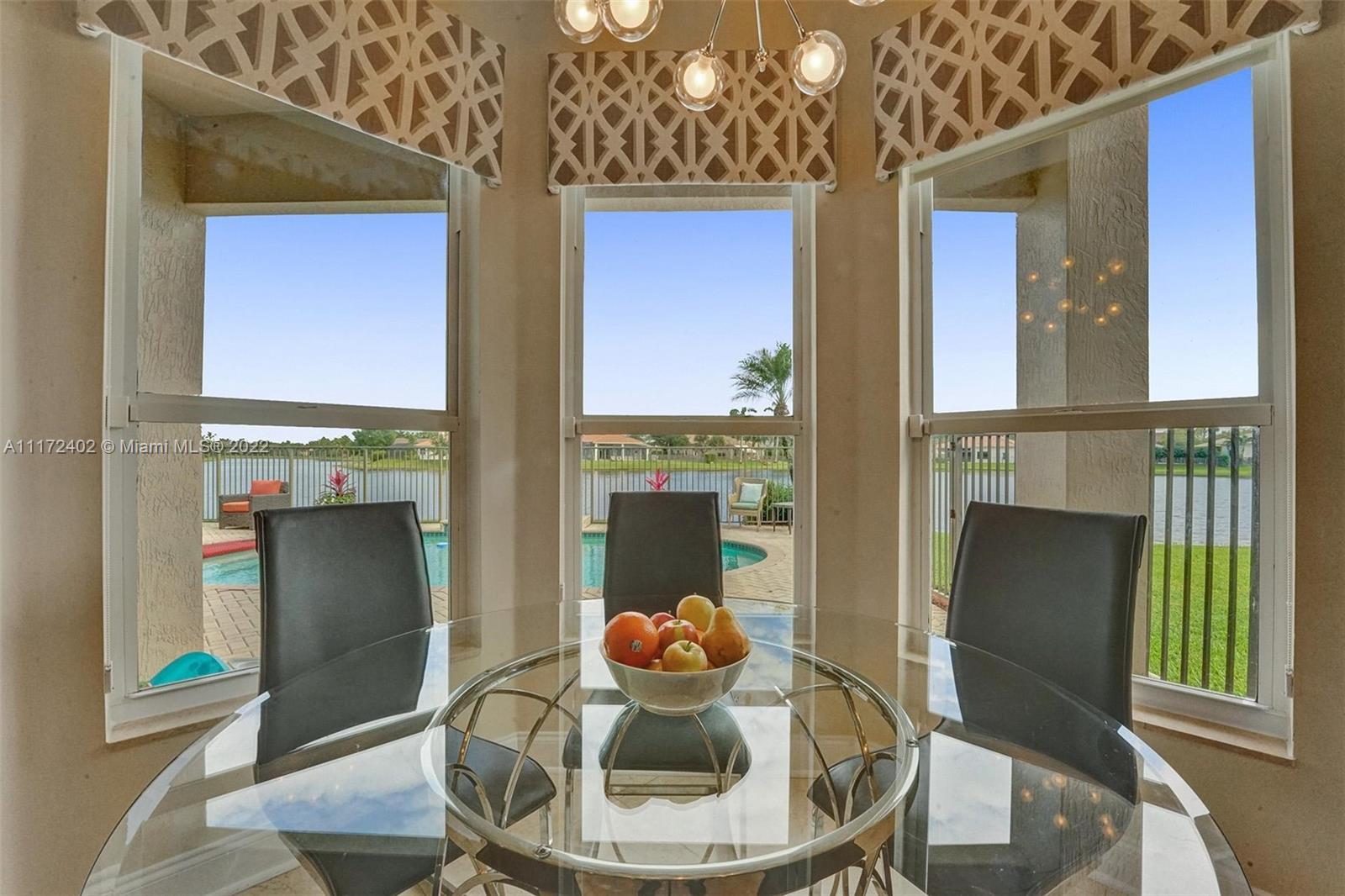 Tucked on a royal palm tree-lined street in Jardin at the prestigious gated golf community of Weston Hills Country Club. Stunning pointe water lot with long, panoramic lake views. 5 bed, 4 bath, 3 car garage. Enjoy soaring ceilings in the living room, a formal dining, a spacious family room, and an office/den/bed first floor plus renovated marble cabana bath. Renovated modern kitchen w/ shaker cabinets, center island, sunny breakfast nook, stainless steel appliances, quartz countertops. The oversized owner's bedroom on the second floor features a private screened balcony. Fenced private backyard with a free-form pool on an expansive cul de sac lot. Marble floors throughout the first level, rectified porcelain wood in bedrooms, full impact windows.