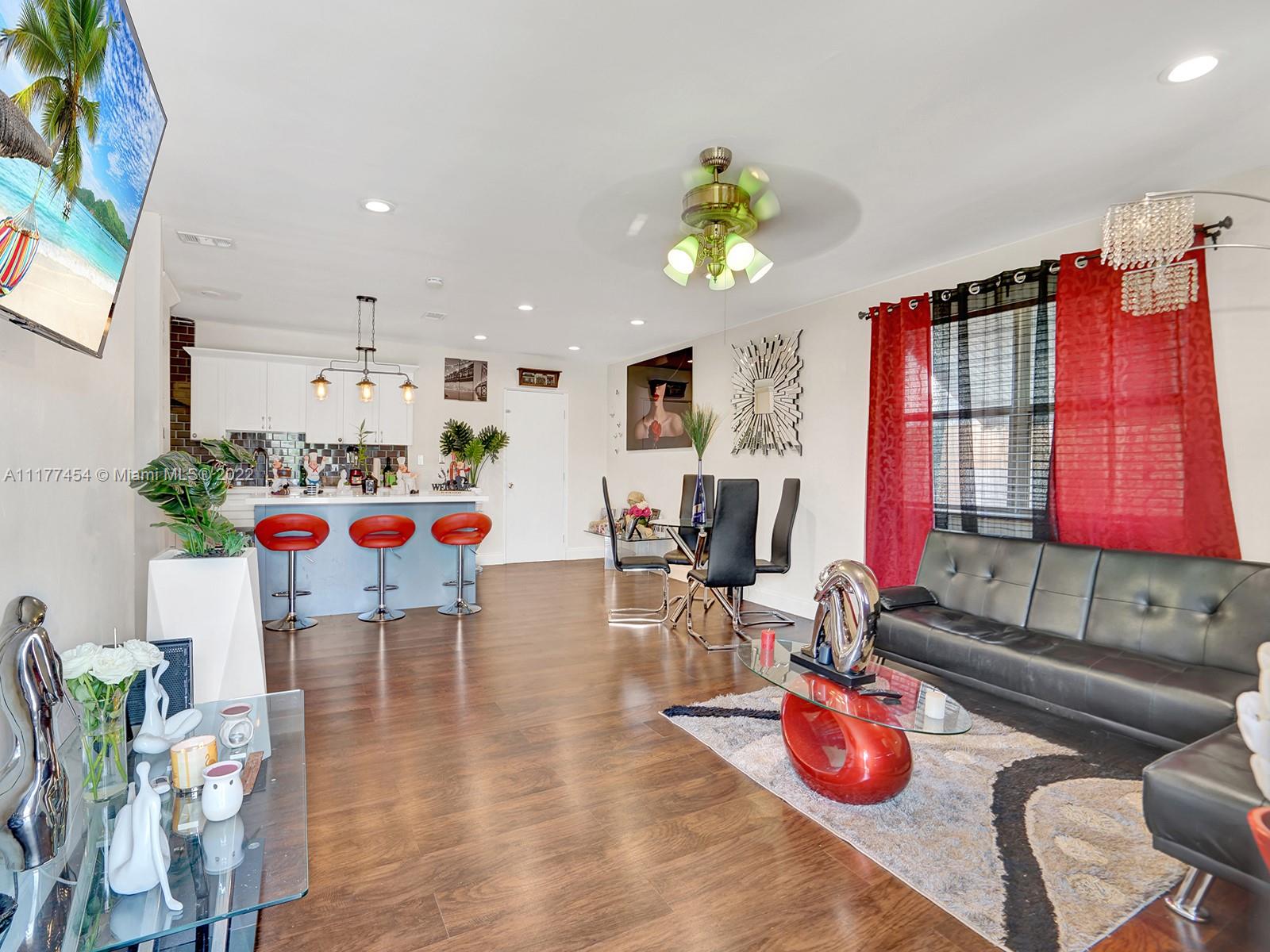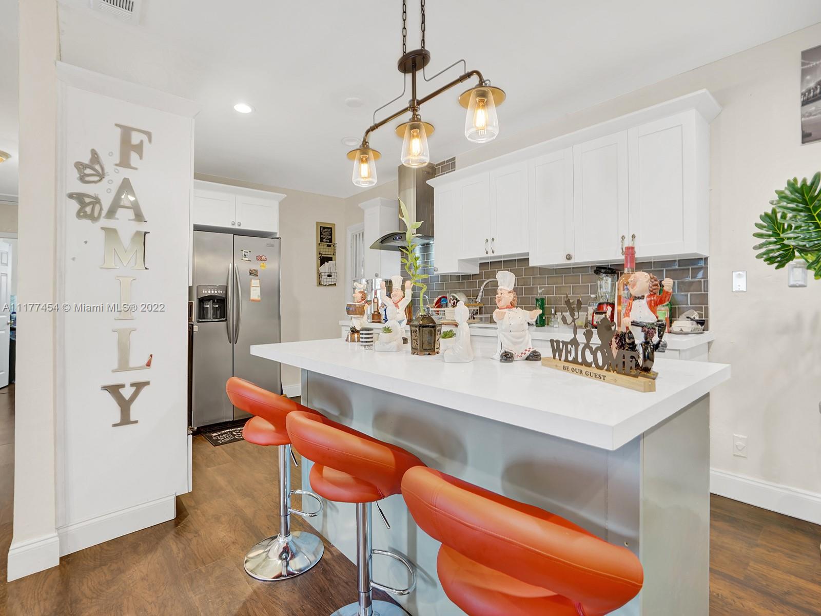 Come see this magnificent Single-Family home in the lovely neighborhood of Hialeah, Fl. (NO HOA) This home has 4 bedrooms/3 bathrooms plus a den/office. Roof replacement (2014), A/c Unit (2019) Tiki Hut (2020) Front electric fence new motor (2020). Upon entering this home, you are welcomed by a large open concept wood laminate open floorplan with a luxurious gourmet kitchen (quartz counter tops, island, wall oven & stainless-steel appliances). Most rooms are very spacious enough to fit a king bed & more. Exit out the back, to an extremely large patio (new privacy 6ft fence) with 5 fruit trees, a stunning tiki hut & a screened in porch. Additional items that will be staying (3 refrigerators, a/c mini split, bar, 2 vinyl storage, 1 metal storage & large pool 15x48. HURRY! Won't last long!