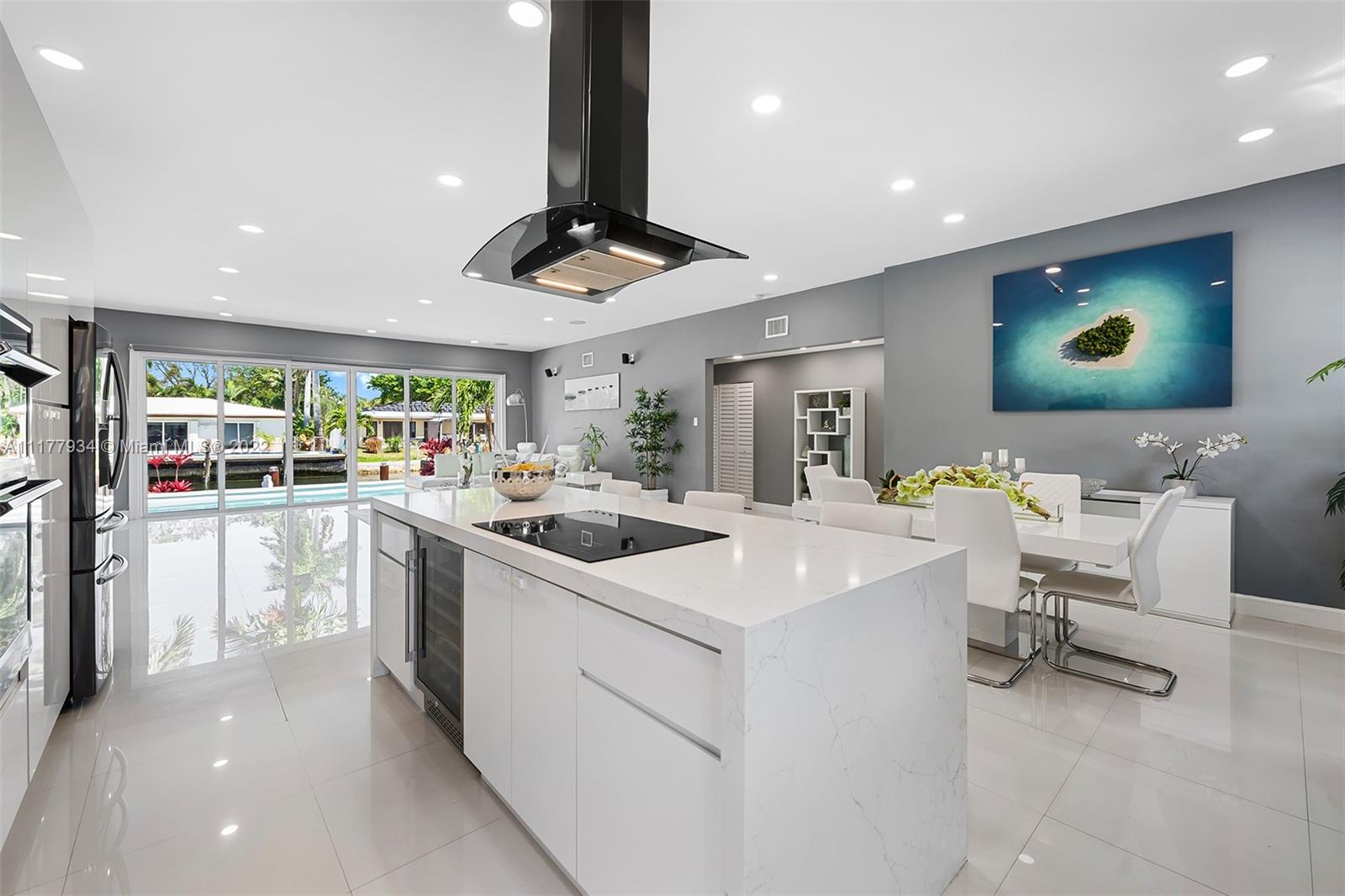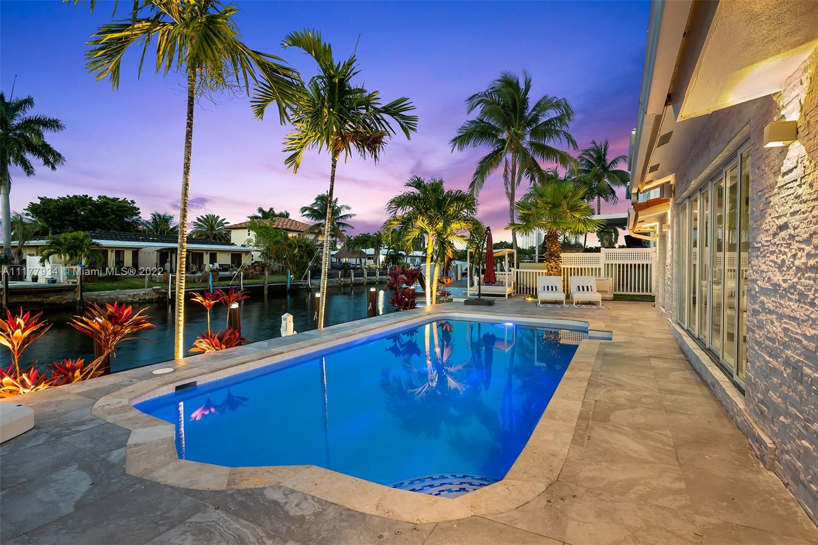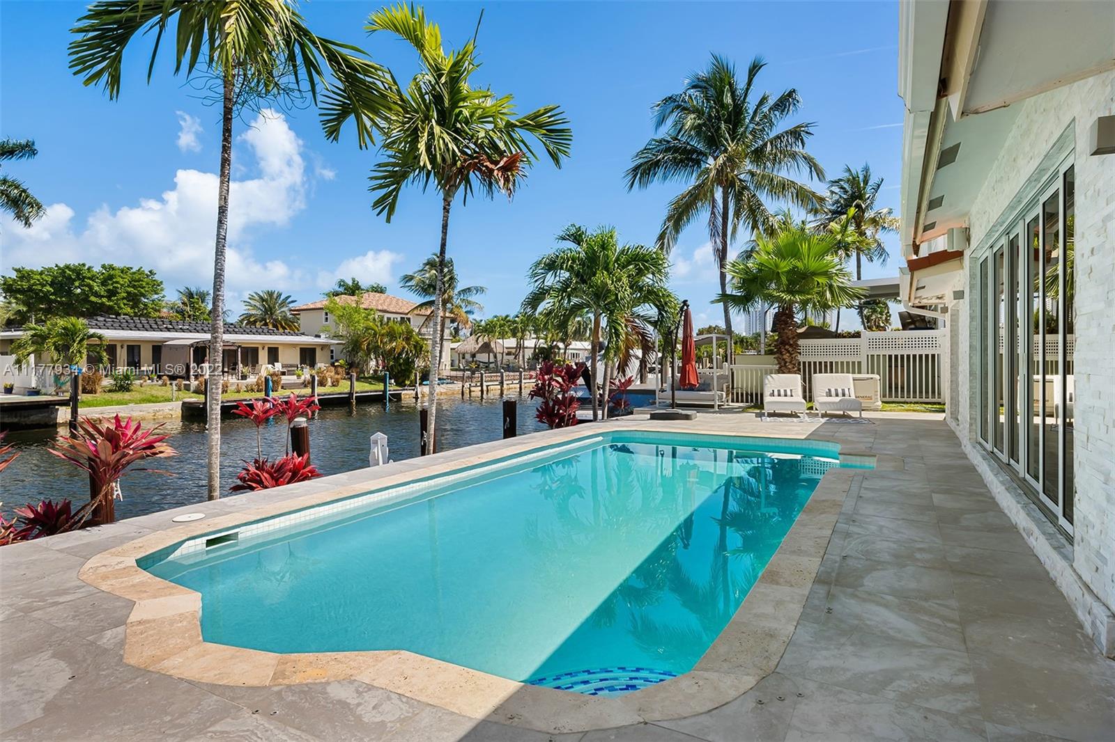 Like new. Step into a completely remodeled gem, located within minutes to Hillsborough Inlet. Enter the grand contemporary style door to an open floor plan with volume ceilings and panoramic waterfront views. Featuring Carrara marble throughout, porcelain tile floors, and matte non-slip exterior marble pavers. Two suites leading to the back patio. Spacious main bedroom overlooking your backyard oasis and a five piece en-suite bath with a freestanding soaker tub along with double custom built in walk-in closets. 75 FT of sea-wall has been completely re-done and elevated up to code. Hurricane impact windows throughout, updated electrical, plumbing and more! Close to shops, restaurants, and minutes to Pompano Beach Pier. No expense spared in this custom home!