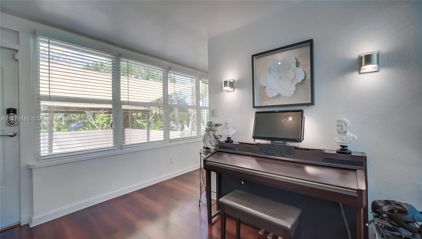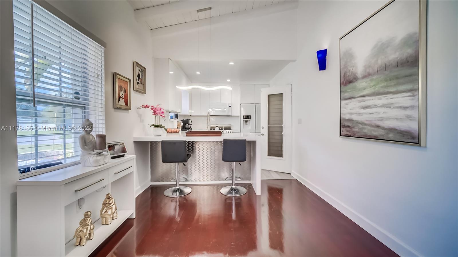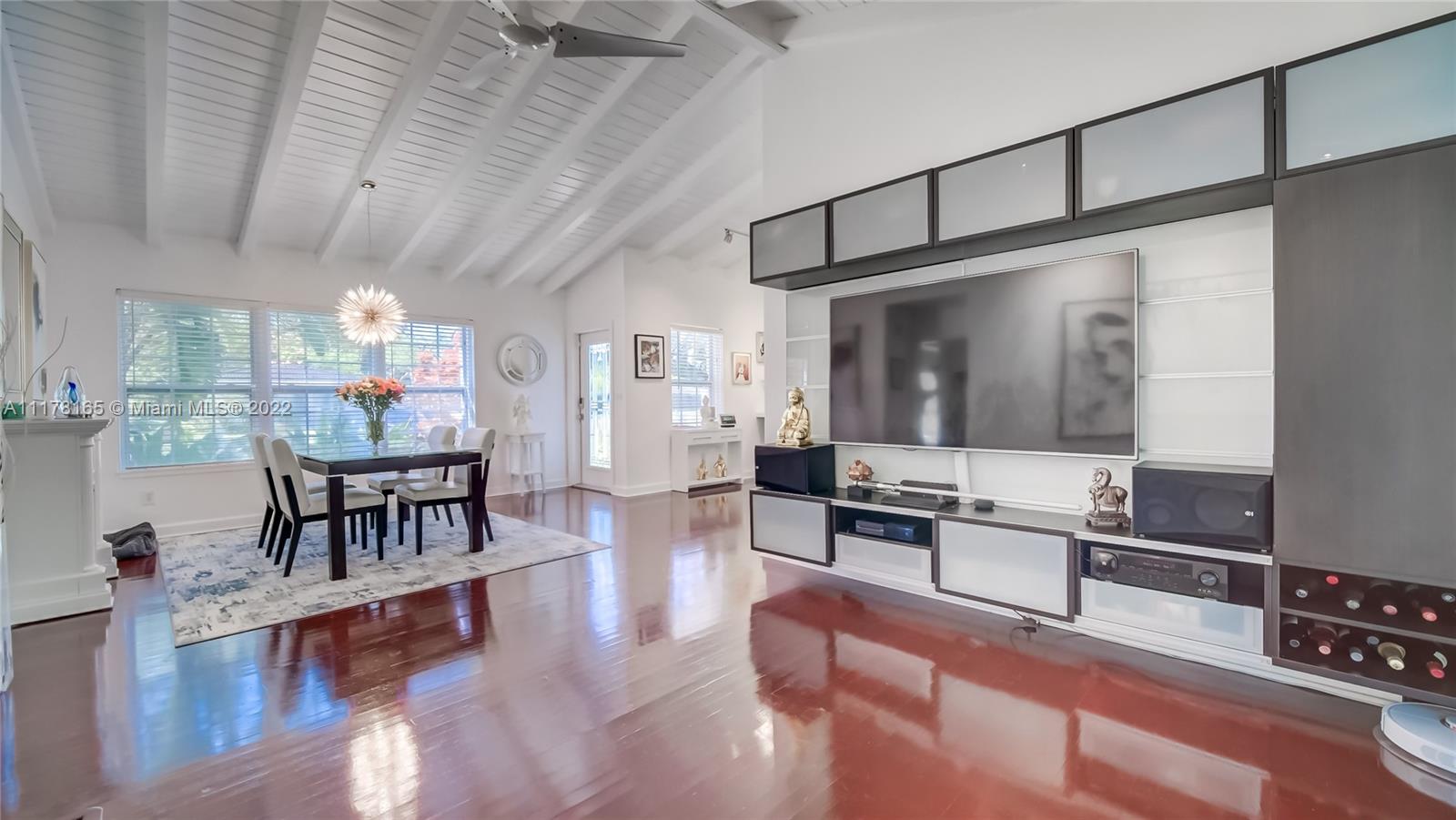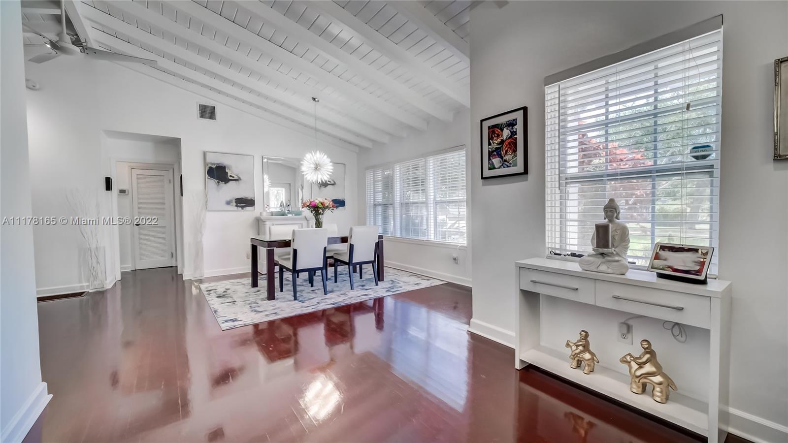 MIAMI SHORES HOME IN MOVE-IN CONDITION. 2 BED/2 BATH + DEN/OFFICE WITH SEPARATE PRIVATE ENTRANCE. IDEAL AS HOME OFFICE OR EASILY CONVERTIBLE TO THIRD BEDROOM. ATTACHED ONE CAR GARAGE WITH WASHER & DRYER + LOTS OF EXTRA STORAGE. UPDATED KITCHEN FEATURES LARGE BREAKFAST BAR, TOP LINE APPLIANCES INCLUDING A GAS RANGE. SPACIOUS OPEN PLAN LIVING/DINING ROOM WITH EXPOSED HIGH BEAM CEILING. REFINISHED HARDWOOD FLOORING. CENTRAL AIR/HEAT + MINI SPLIT IN DEN/OFFICE. PARTIAL HURRICANE IMPACT WINDOWS + STORM SHUTTERS. LARGE FULLY FENCED CORNER LOT WITH ROOM FOR A POOL. THIS HOME HAS BEEN MAINTAINED TO HIGH STANDARDS THROUGHOUT. BLOCKS TO DOWNTOWN MIAMI SHORES, LOCAL SCHOOLS & BARRY UNIVERSITY.