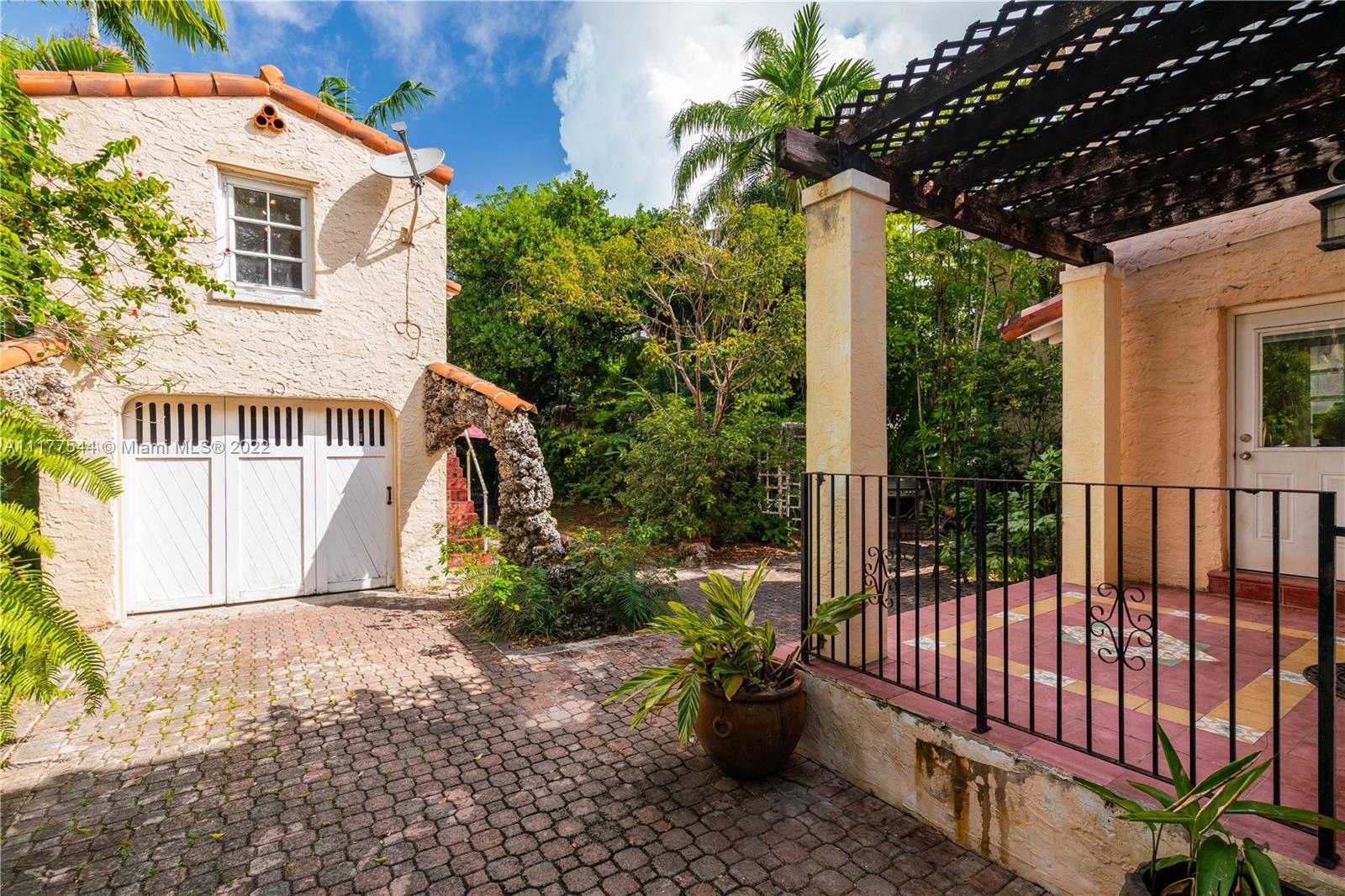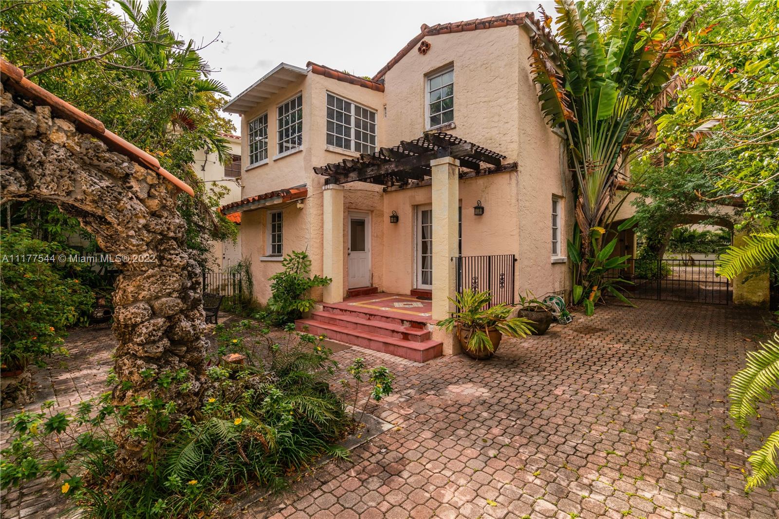 Built in 1925, this historic Coral Gables residence is significant because of its association with Frank Button, one of the key designers of the City of Coral Gables and because of its architectural distinction with noted Coral Gables architect Phineas Paist. The house needs updating but has all the feel-good niches & charming design elements that can only be found in an original Mediterranean Revival home. Kitchen has been remodeled. Atop the garage sits an updated guest quarters w/a Murphy bed, kitchenette and bath. Please note: second floor of the main house has 3 spacious rooms, 1 bath & a sleeping porch. Today’s homebuyer might want to turn the second floor into a 2/2. There is ½ bath on the first floor. There is a deep, lushly landscaped backyard. OFFER Deadline-Friday 3/25 by 12PM