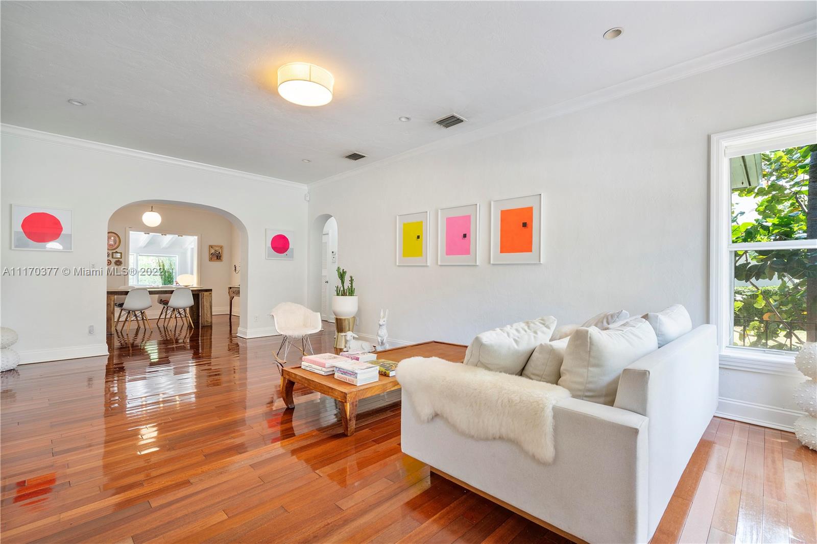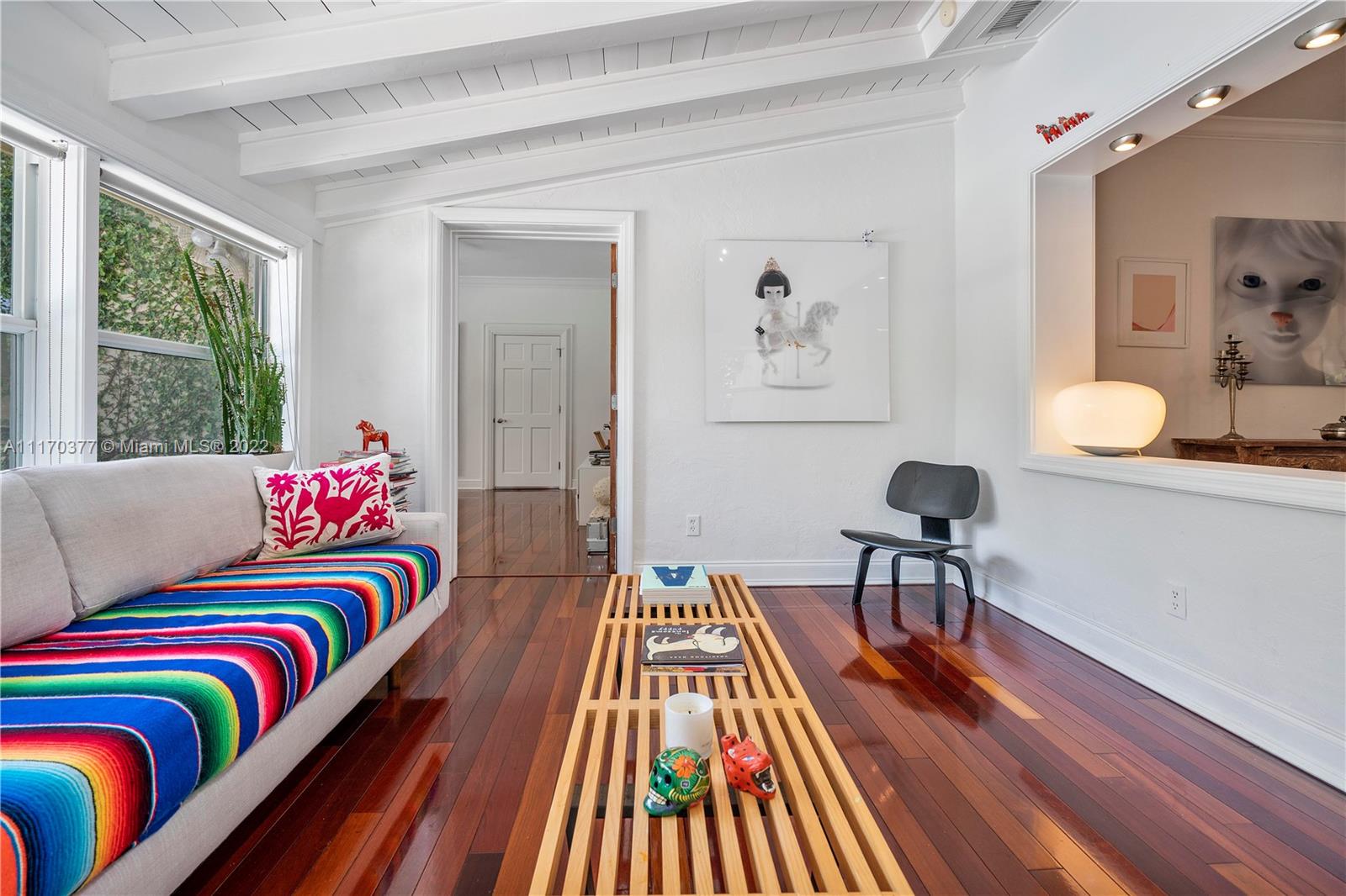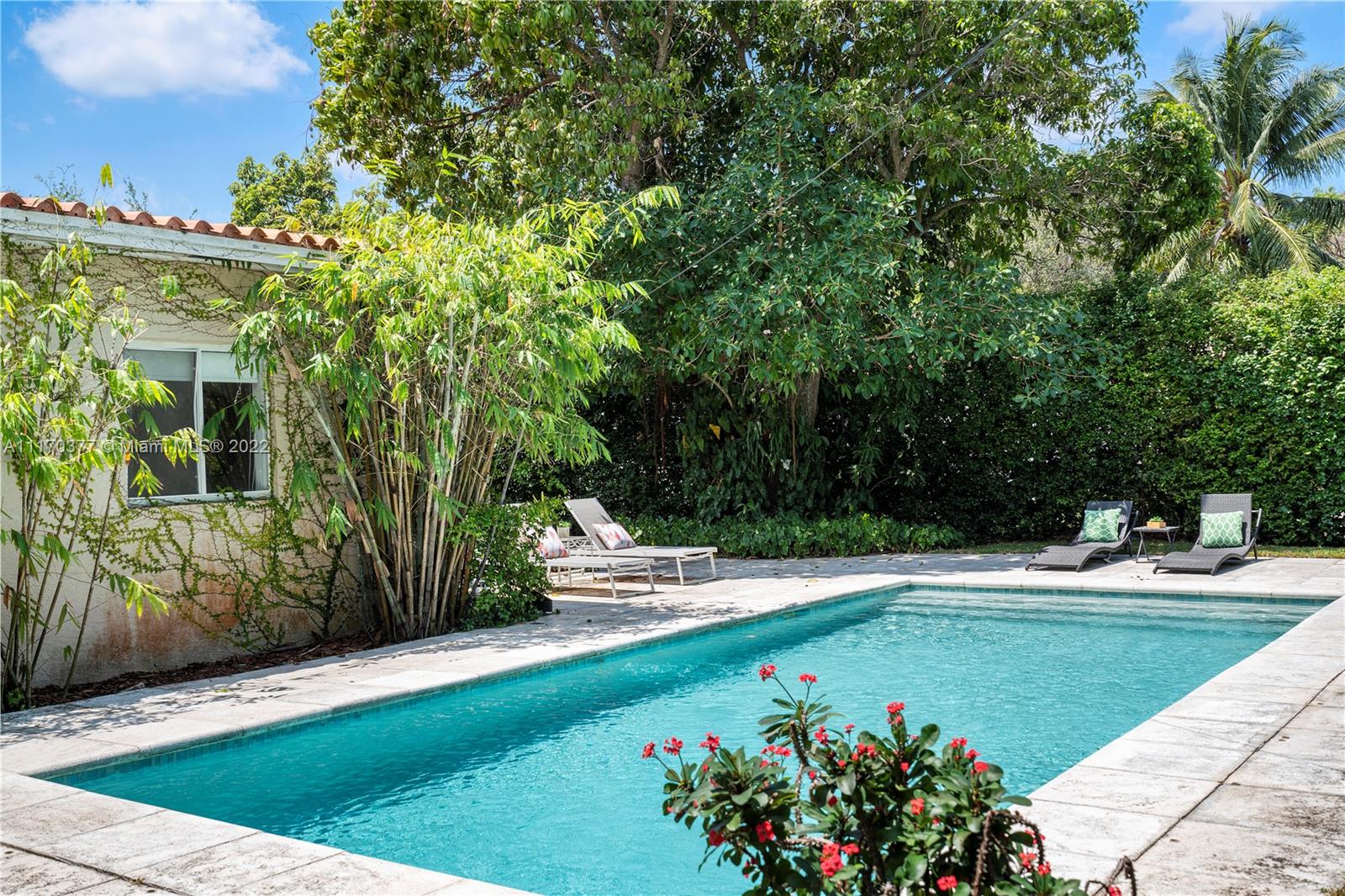 Fantastic opportunity to live on prestigious Miami Shores. Beautiful home featuring 3-bedroom, 2 full bathrooms + Florida room/den and 1 car garage. Brazilian Cherry wood floors with soaring ceilings and gorgeous exposed beams; formal dining room with built-ins. There is a huge master bedroom suite with a walk-in closet and a spacious bath with a separate tub and shower. Kitchen with maple cabinets, granite countertop, and tumbled marble backsplash. A/C, plumbing, and electrical upgraded. POOL! Nestled on a fenced private yard with fruit trees and a beautiful patio. This home has located half block from the Miami Shores Country Club golf course, it's spacious, comfortable, filled with natural light and it’s not in a flood zone! Call for appointments.