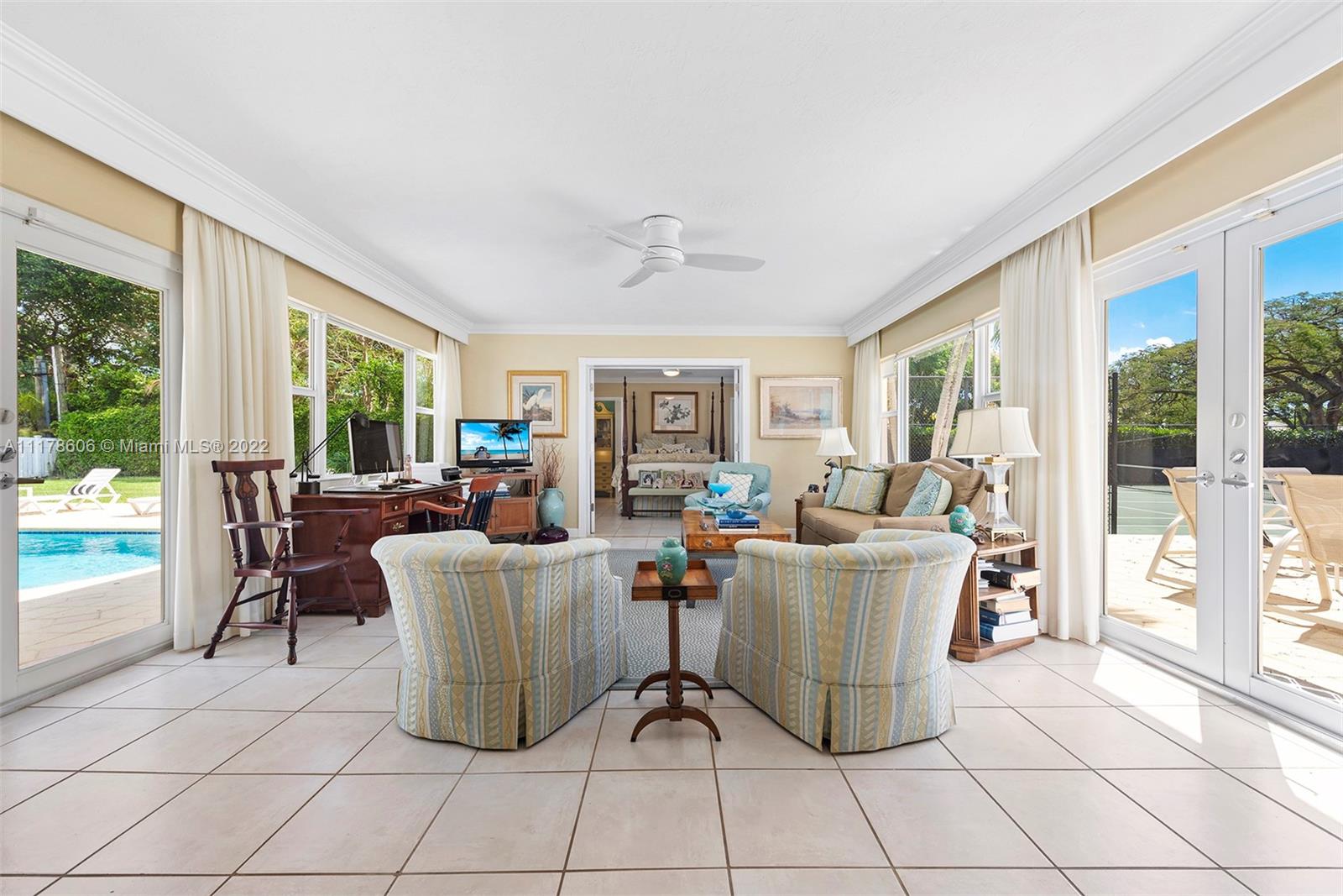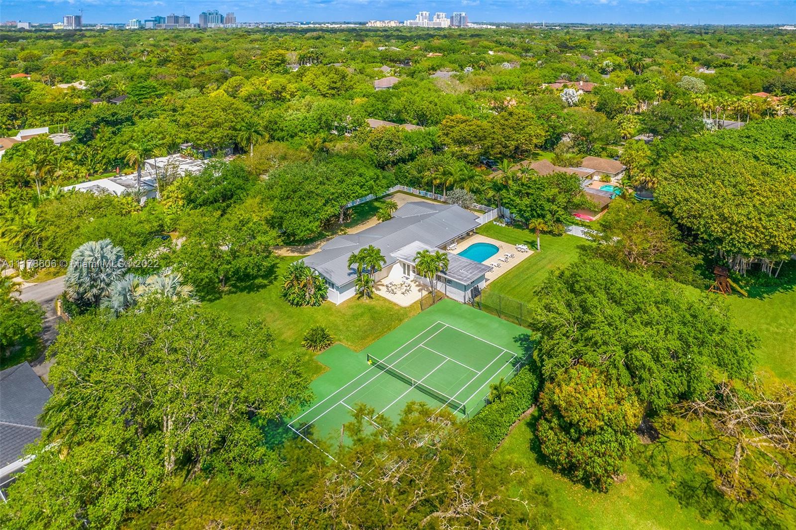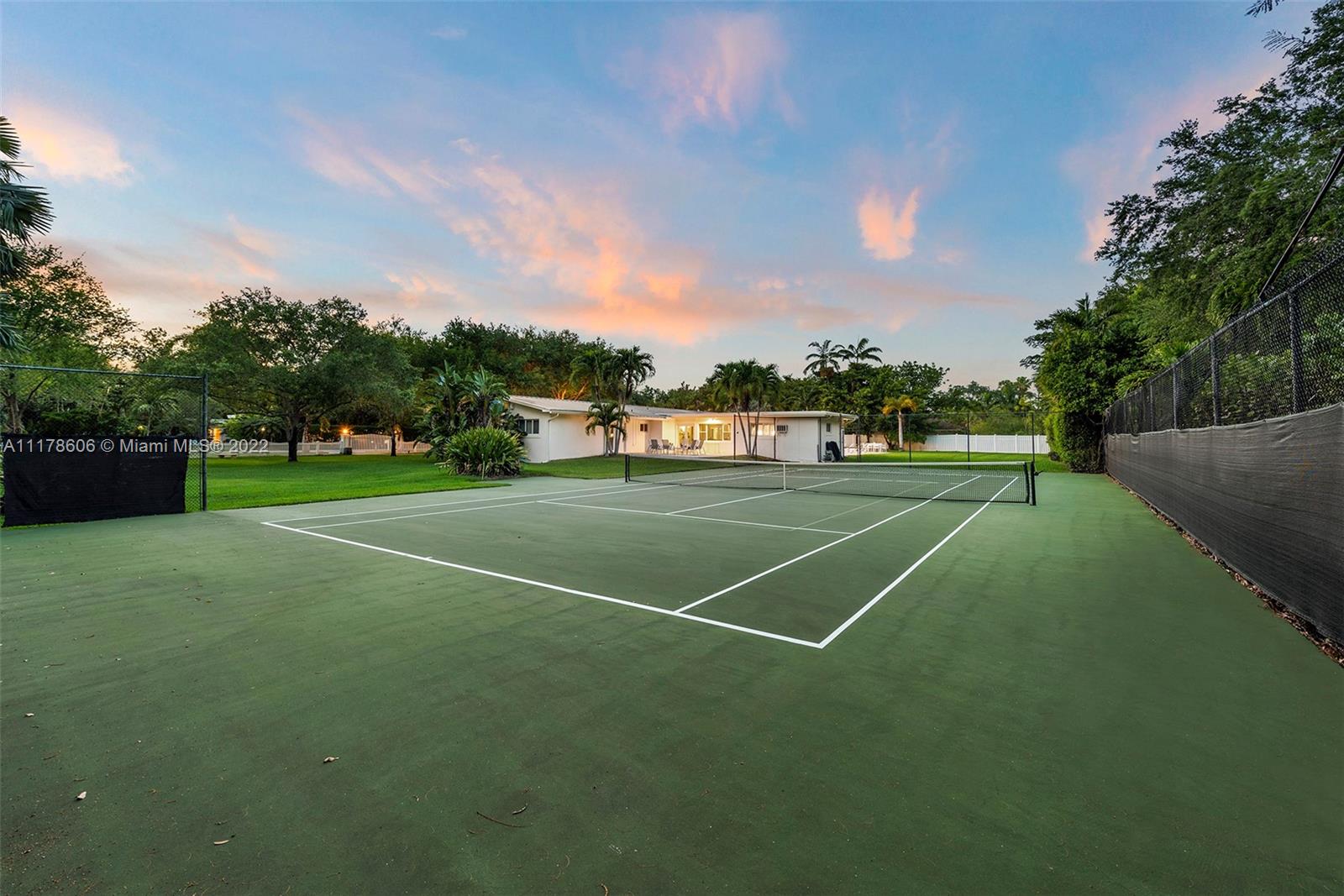 Paradise found in prime Northeast Pinecrest! Enter this gated one-of-a-kind Key West style acre home on a tranquil street w/magnificent oak trees, royal palms & bismarck palms. 3,534sf encompasses the best of South Florida lifestyle complete w/ sparkling heated pool & professional Decoturf II tennis court w/ pickleball markings. Home features light & bright open kitchen by Trimline, Wolf & Sub-Zero appliances, gas cooktop, quartzite countertops & Shaker cabinetry. Ideal layout for families w/ guest wing & office. Owner’s suite includes quartzite bathroom. All impact windows & doors, metal roof, PVC plumbing, 2 car garage, tankless water heater & underground electric. Located within blocks of some of South Florida’s best schools (Pinecrest Elem, Gulliver & Palmetto). The list goes on & on.