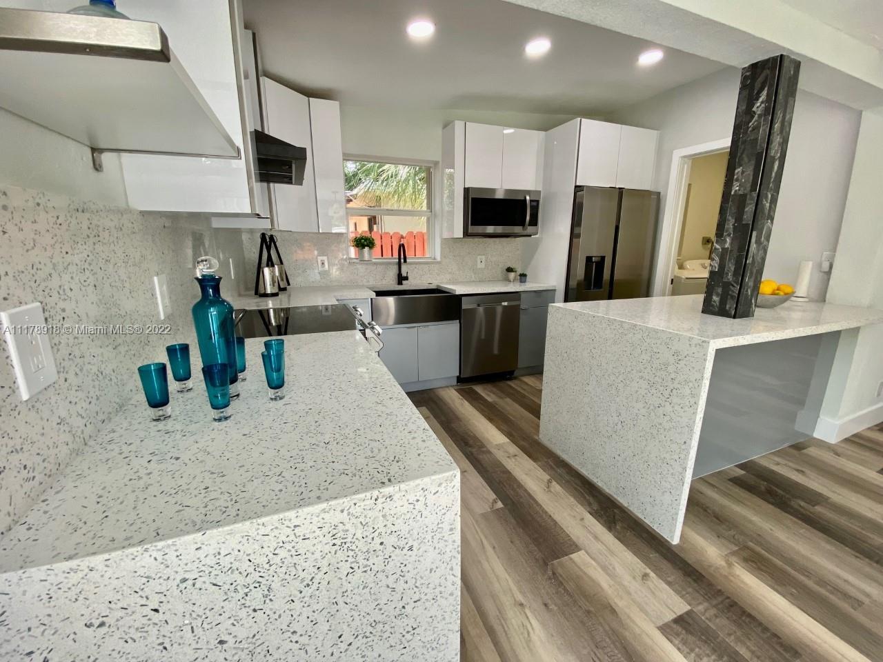 Welcome Home! Stunning Single Family, Completely Updated 3/2 Open Concept with a Big Fully Fenced Yard, enough space for a Swimming Pool. Enjoy memorable moments with family and friends under the TikiBar perfect for barbecue weekends. New Modern Kitchen with Quartz countertops, Top-Of-The-Line Samsung Appliances, Kitchen Bell, Touchless Matte Black Faucet and Farm Sink. Bar area with New Wine Cooler. Luxury Bathrooms with Rain Shower in master and frameless glass. The whole house is hurricane impact rated with accordian shutters and new impact door. Energy Efficient with Nest Thermostat and LED lighting. Perfect Location, right across Stranahan High School, Coontie Hatchee Park, within min from Downtown Ft Lauderdale, Las Olas Blvd and the Beach. Close to US-1, I-95 and NO HOA!!