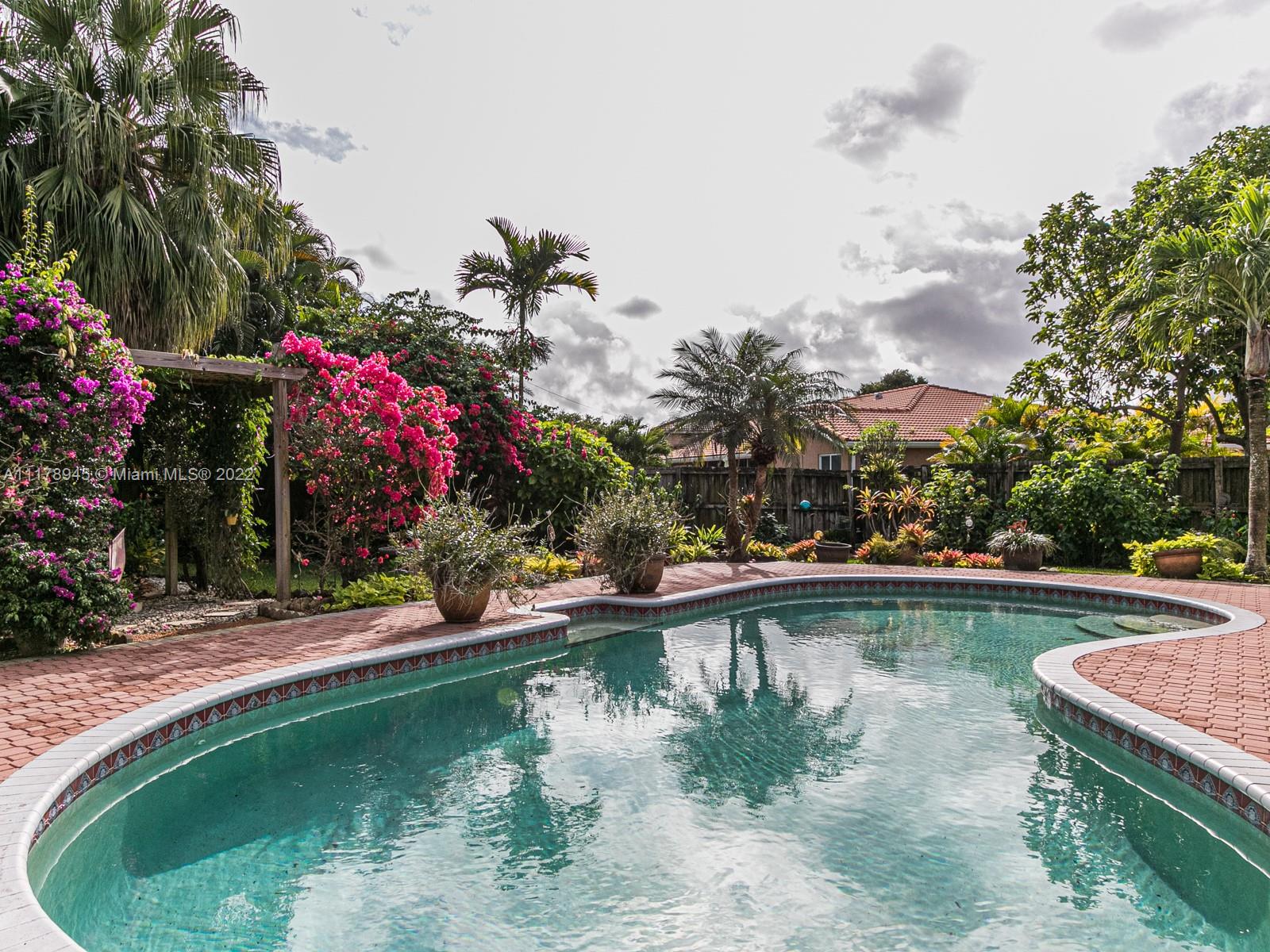 Located in the most desirable area of West Davie in Hawkes Bluff - A King Arthur Model that has 4bed/3.5bath pool home w/2car garage. A back yard oasis w/plush landscaping that took years to grow! The Primary bedroom has an office, 2 Walk-in closets & 2Baths (1 is a cabana bath), Large Bedrooms, Formal Living & Dining Room, Spacious Family Room, Plantation Shutters inside, Hurricane Impact windows, Accordion Shutters for all of the French Doors, 2 A/C units, Tile Roof, Sprinkler System. Just minutes away from Schools, Parks, Restaurants, Stores, Hospitals and Highways.
