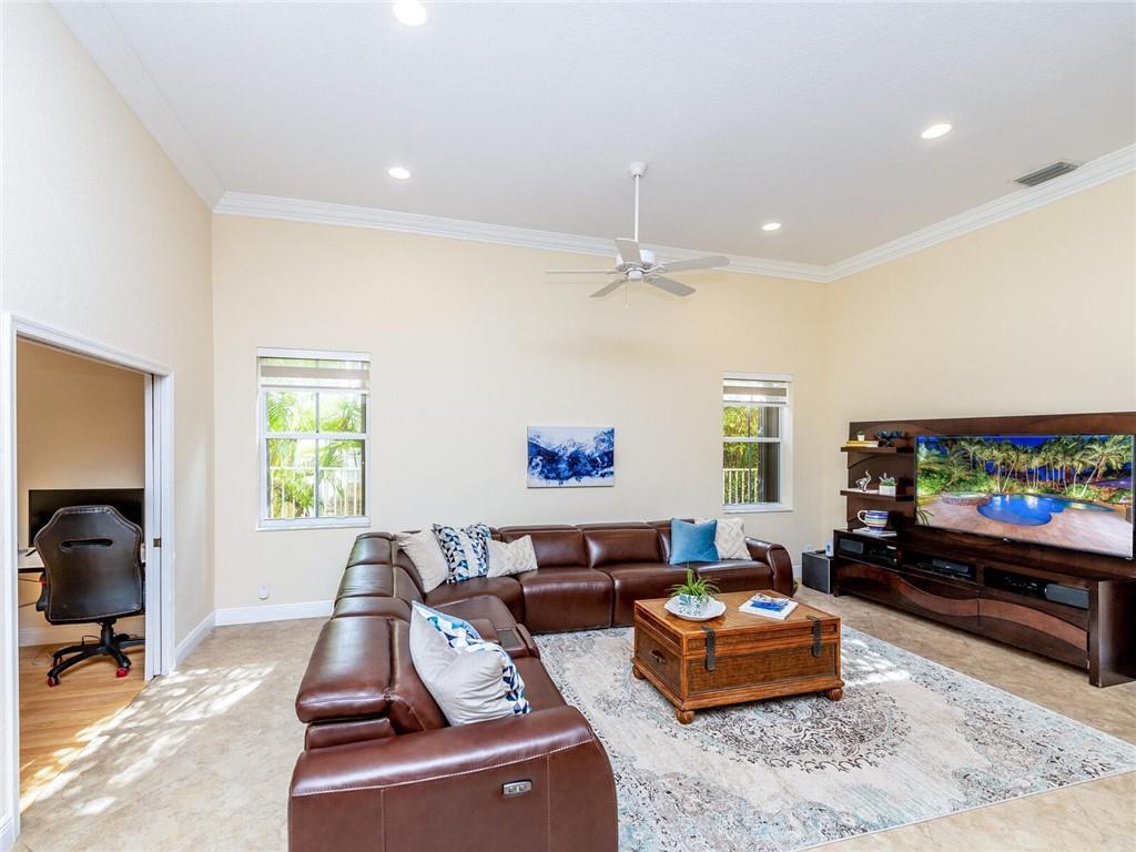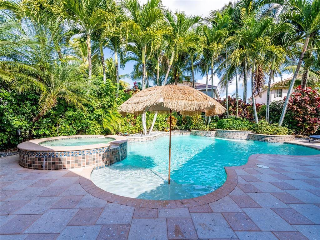 MODEL-PERFECT, meticulous 4BD+Den single story, offered for the very first time! Stunning curb appeal, set back on a wide culdesac, incredible long driveway, front porch, magnificent landscape! Absolutely SPECTACULAR fenced resort-like backyard oasis w/generous covered patio, oversized WOW heated POOL/SPA, tropical landscaping illuminated w/extensive outdoor lighting, custom rock speakers & beautiful Zen Garden! Porcelain tile in liv areas, wood lam in all bedrooms, high ceilings, crown molding, LED lights, custom closets, new AC compressor, surround sound in/out, accordion shutters. Master/bath/cabana all newly painted, all brand-new modern lights. Granite/stainless kitchen w/large walk-in pantry & peninsula counter. Savanna Commons resort clubhouse incl in low quarterly HOA! A+ schools.