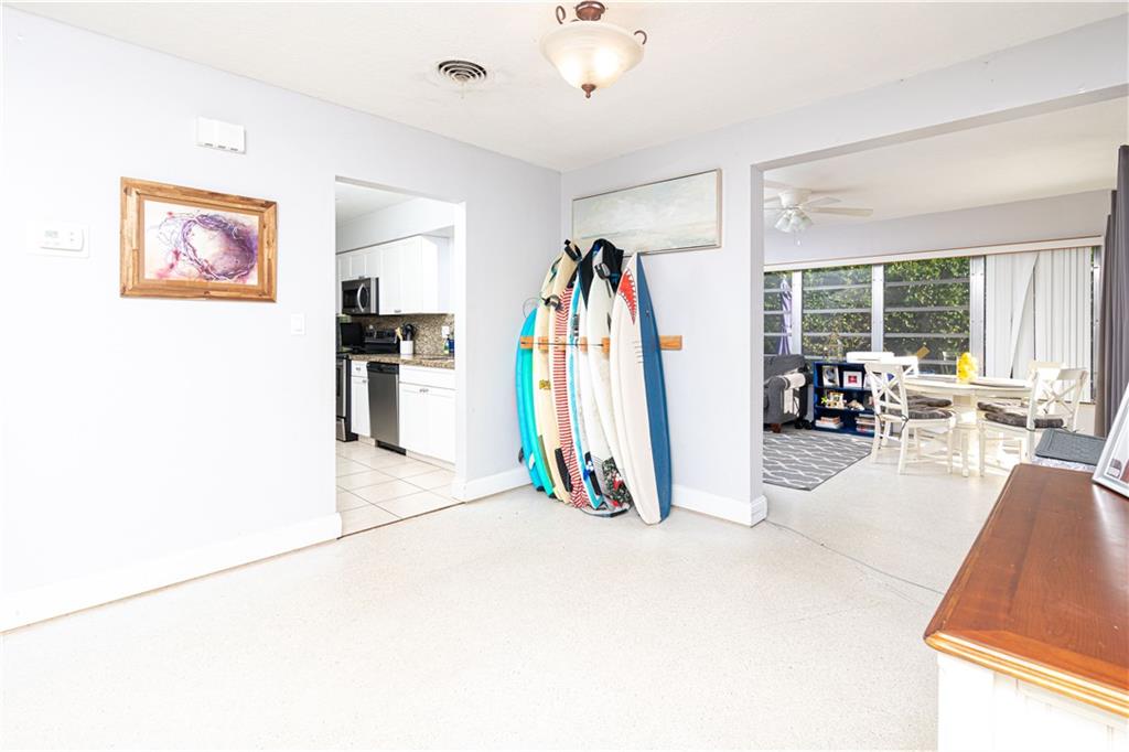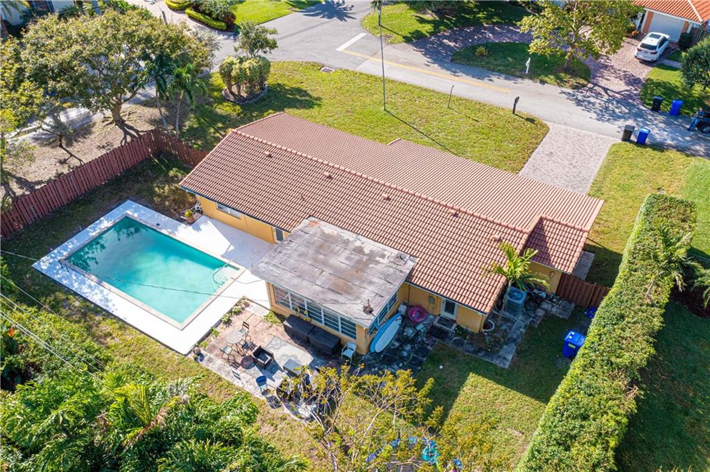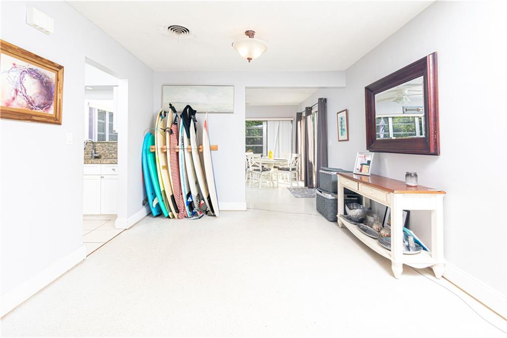 Beach house paradise. This property boasts an oversized corner lot in the quiet island neighborhood of Terra Mar. The 3/2 pool home features a spacious kitchen with white cabinetry and stainless-steel appliances. There are terrazzo floors throughout the house for cool Florida living and mid-century reto vibe. The family room opens up to a spacious back yard and pool area. There is plenty of room to expand and enjoy the tropical oasis.