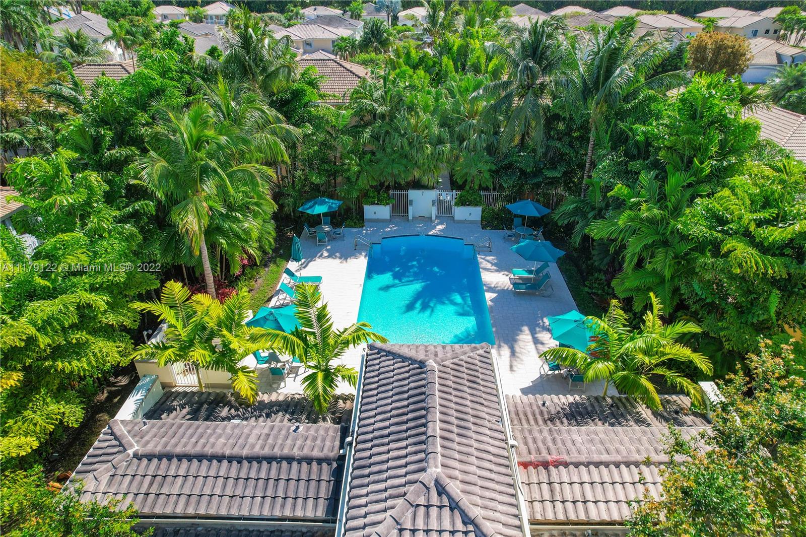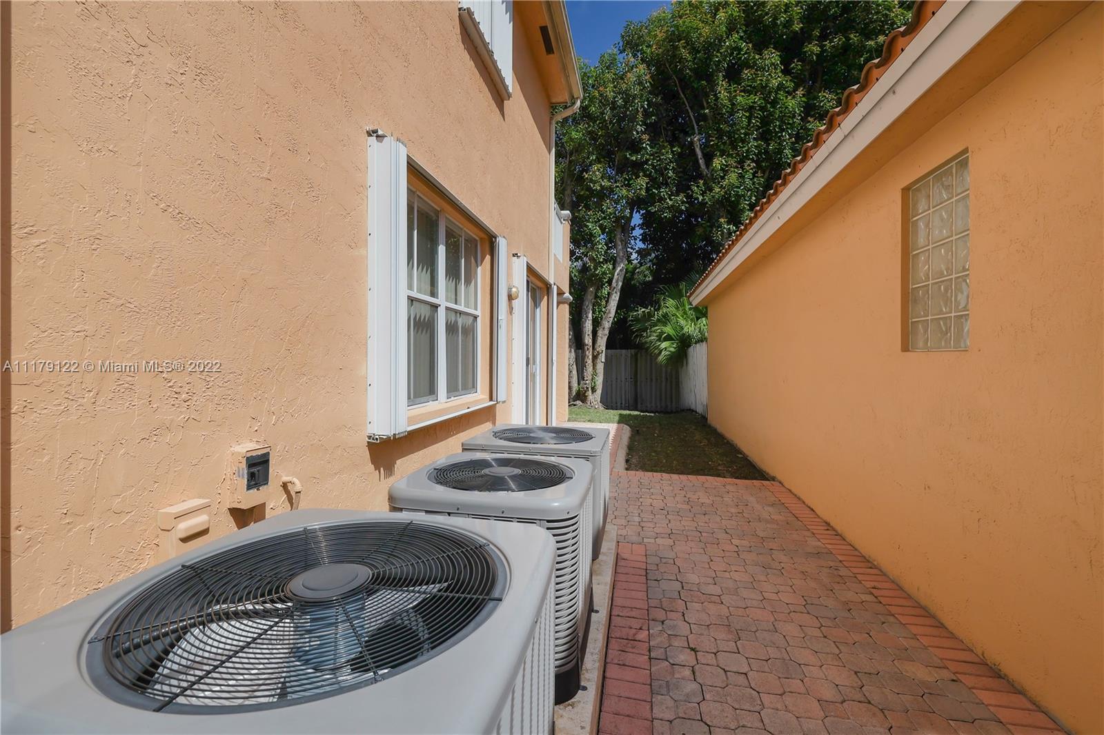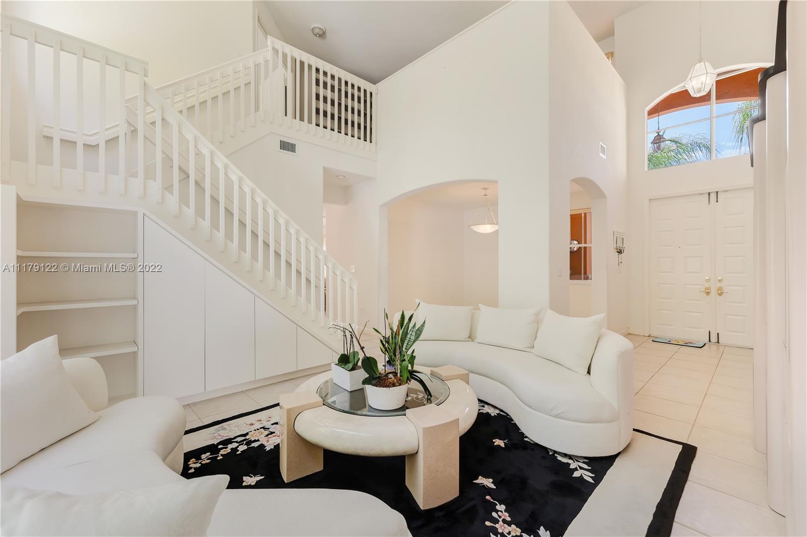 DEN/OFFICE 12FTX10FTX8FT EASY TO CONVERT TO A 4TH BEDROOM. Doral at it's best. Rarely available 2 story single family home located in exclusive gated Goldvue Estates. Property features Volume ceilings throughout living areas and kitchen. Master bedroom boasts spacious built in closets, with Roman tub, double vanities. Laundry room with cabinets & lots of storage space, two car Garage with Tesla car charging outlet outside. Accordion shutters throughout. Tankless water heater. Top of the line washer & dryer. Backyard Patio faces golf course. Gate guard and 24hr security, community pool, kids' playground, walking distance to school, Publix, Walgreens and close to major highways.