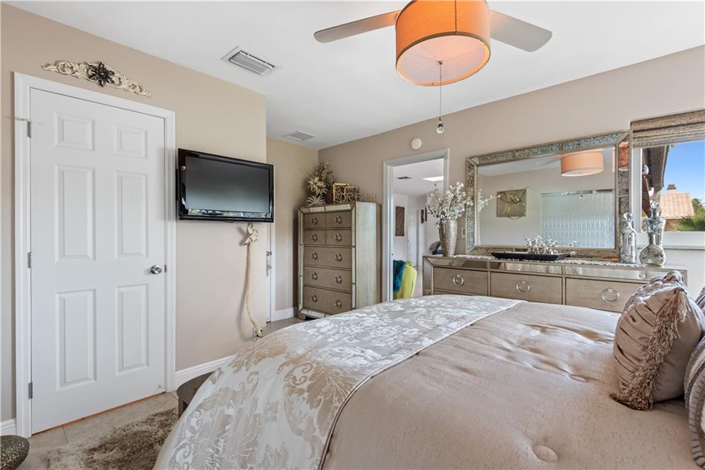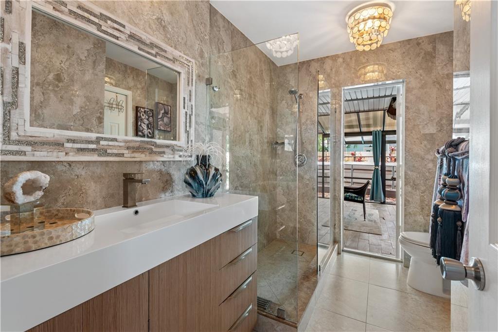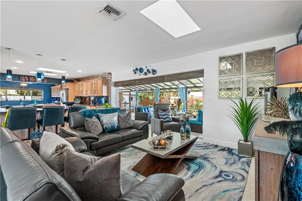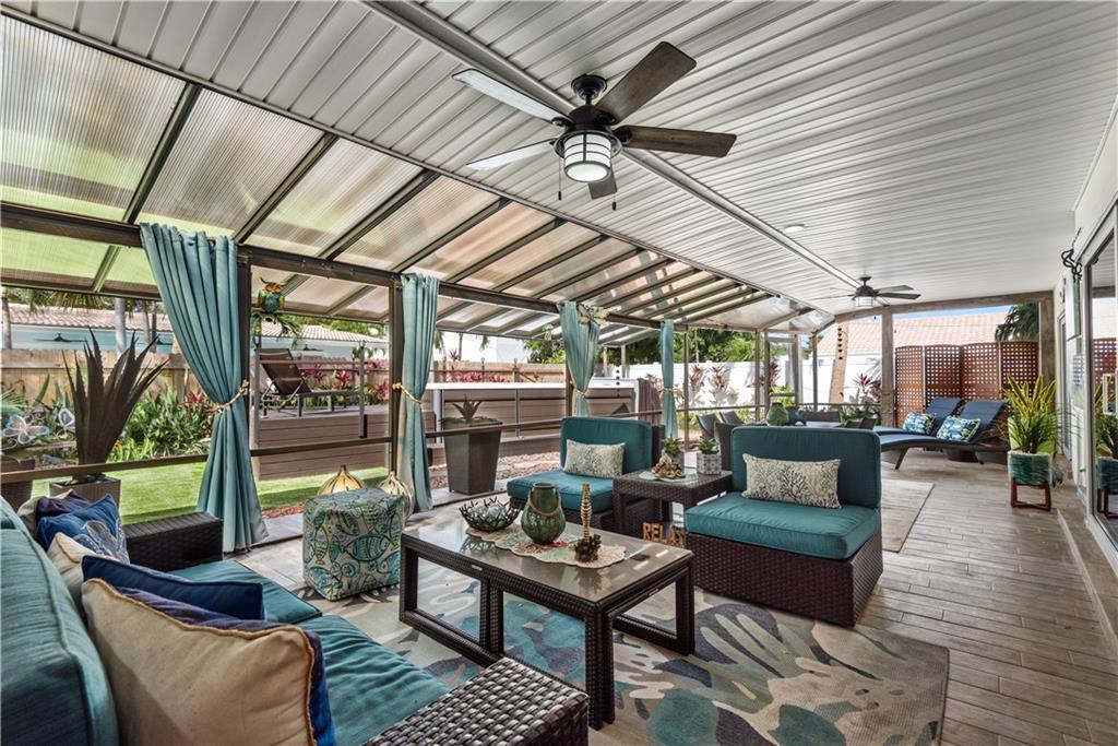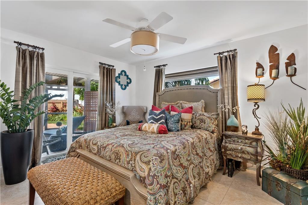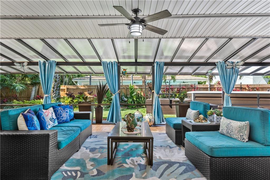Model Home-Stunning updated 3BR/2BA/1CG (+Boat/RV parking) pool home is at the end of a quiet street, E. of US1 & steps to Intracoastal. The house itself is a show stopper...the sprawling covered, screen enclosed patio w/ resort-style pool area makes this property ONE-OF-A-KIND! Exquisite features: Open chefs eat-in kitchen (w/ custom cabinetry, bkft bar, island, wine fridge), split floorplan w/ TWO master suites PLUS large 3rd BR. Triple sliders nest completely into the wall to transitions the tremendous patio area into your living room for added enjoyment-PERFECT for entertaining, relaxing, etc. Resort-style pool area offers above-ground swim/spa (jet for doing laps), cabana bath, deck & green space for sunbathing. Huge shed. Newer roof, a/c, impact windows/doors, pavers. Mins to beaches