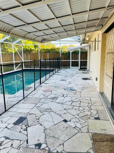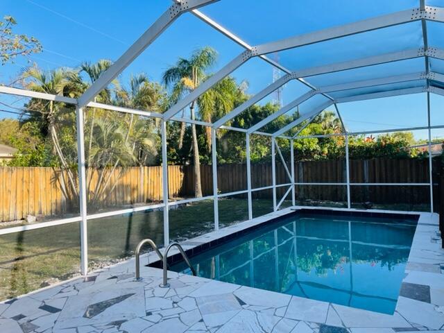 Nice 3/2 single family pool home in east Pompano Beach. Home features circular driveway, with nice kitchen with granite counter tops, tile/travertine tile throughout. screened in pool, fully fenced, and large lot. This one will not last long, come see today!