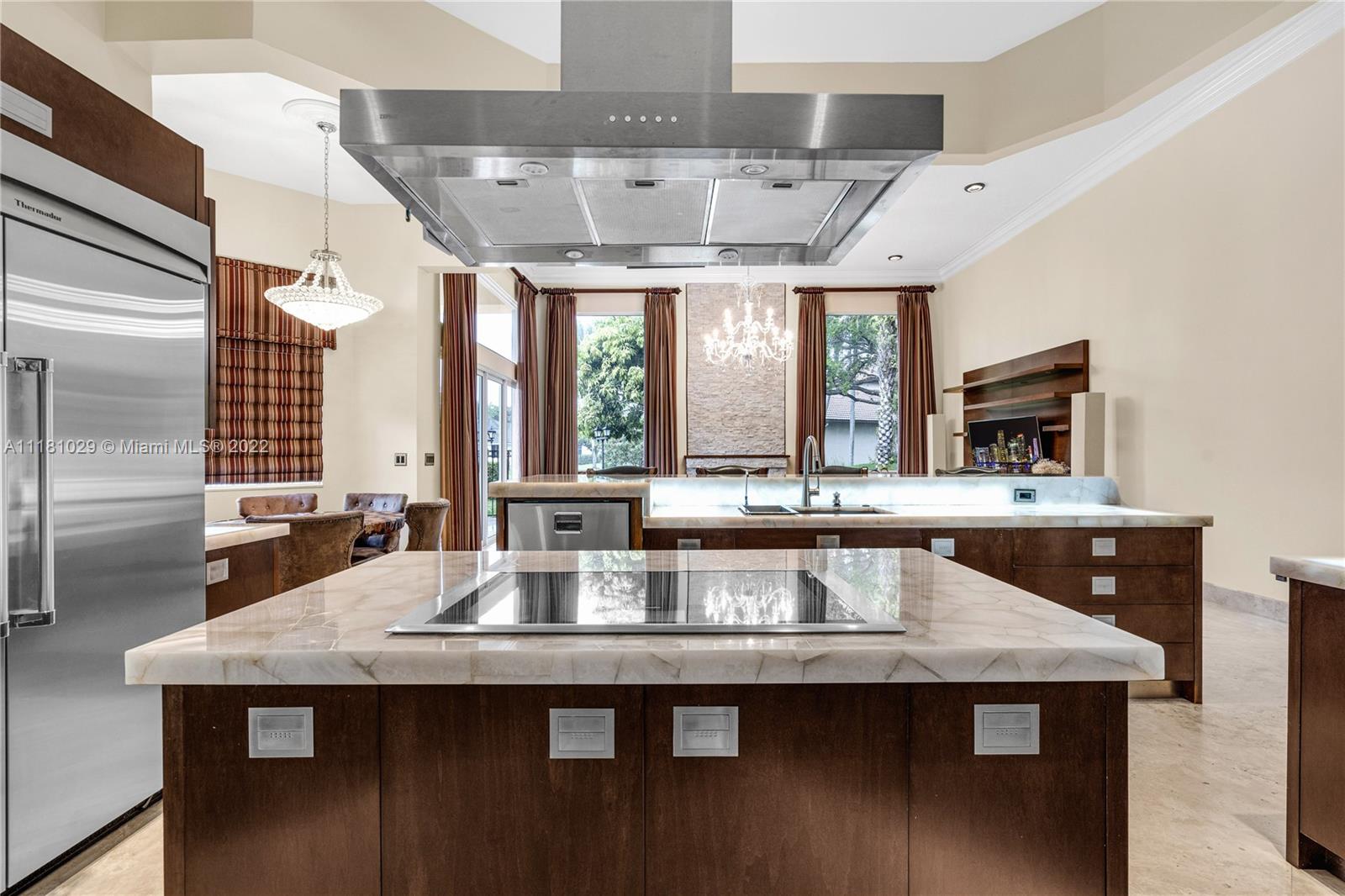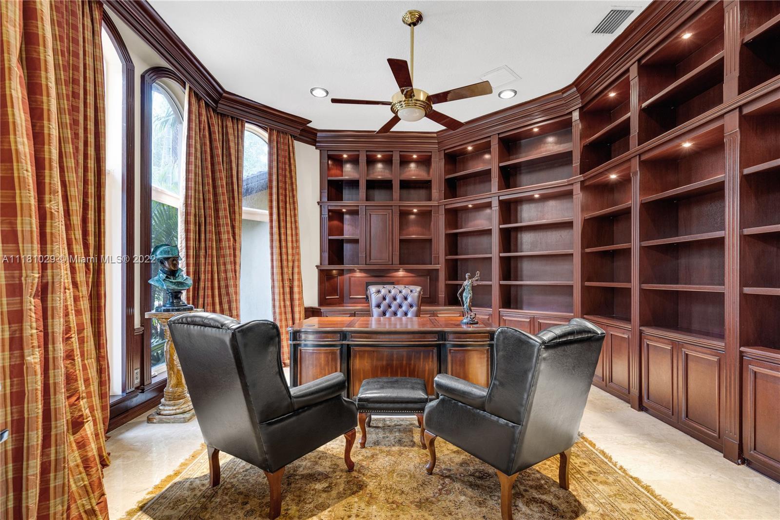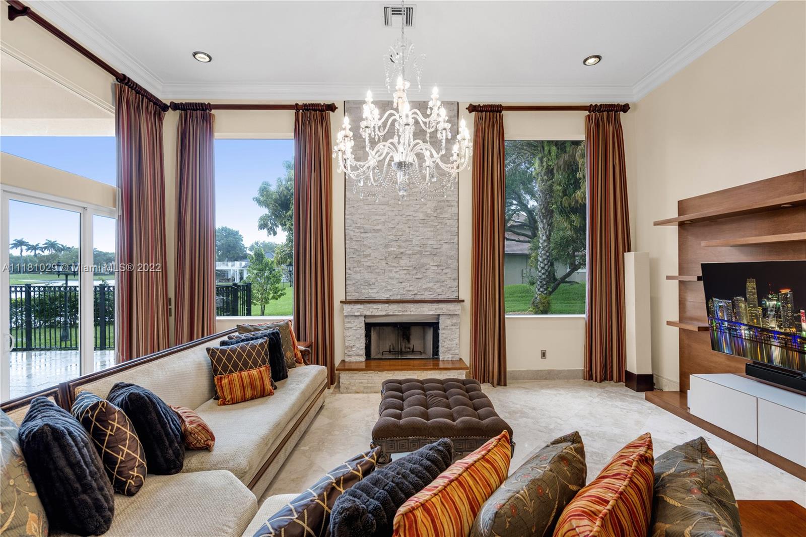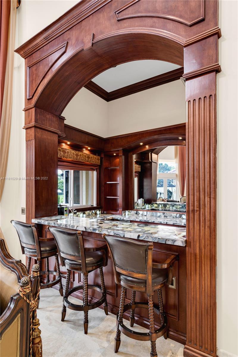 Best Price in Windmill Ranch! Spectacular custom estate in a prestigious gated community, home sits on an exquisite lake front 1 acre lot on a private cut-the-sac lot, with 10+ parking spaces, marble floors, volume ceilings, luxury chandeliers, costume made high end drapes, fireplace with lights, crown molding, Kitchen, bar and bathrooms features stunning imported Quartz countertops, custom made library with mahogany wood and security door, main entrance includes a semiprecious gold medallion valued $15k +, each bedroom has private bathroom, master bedroom includes two closets, private room for exercise or baby room, his and hers bathroom including two toilets, entire house contains LED lights and impact windows, salt water pool and more!