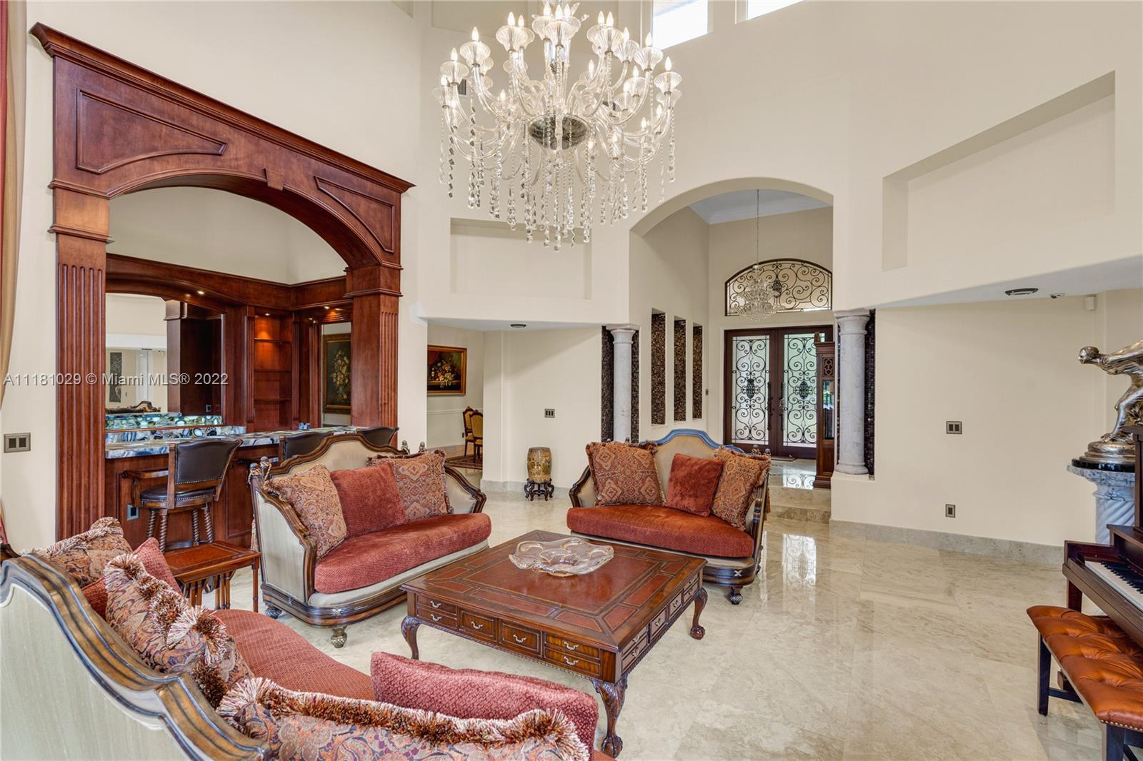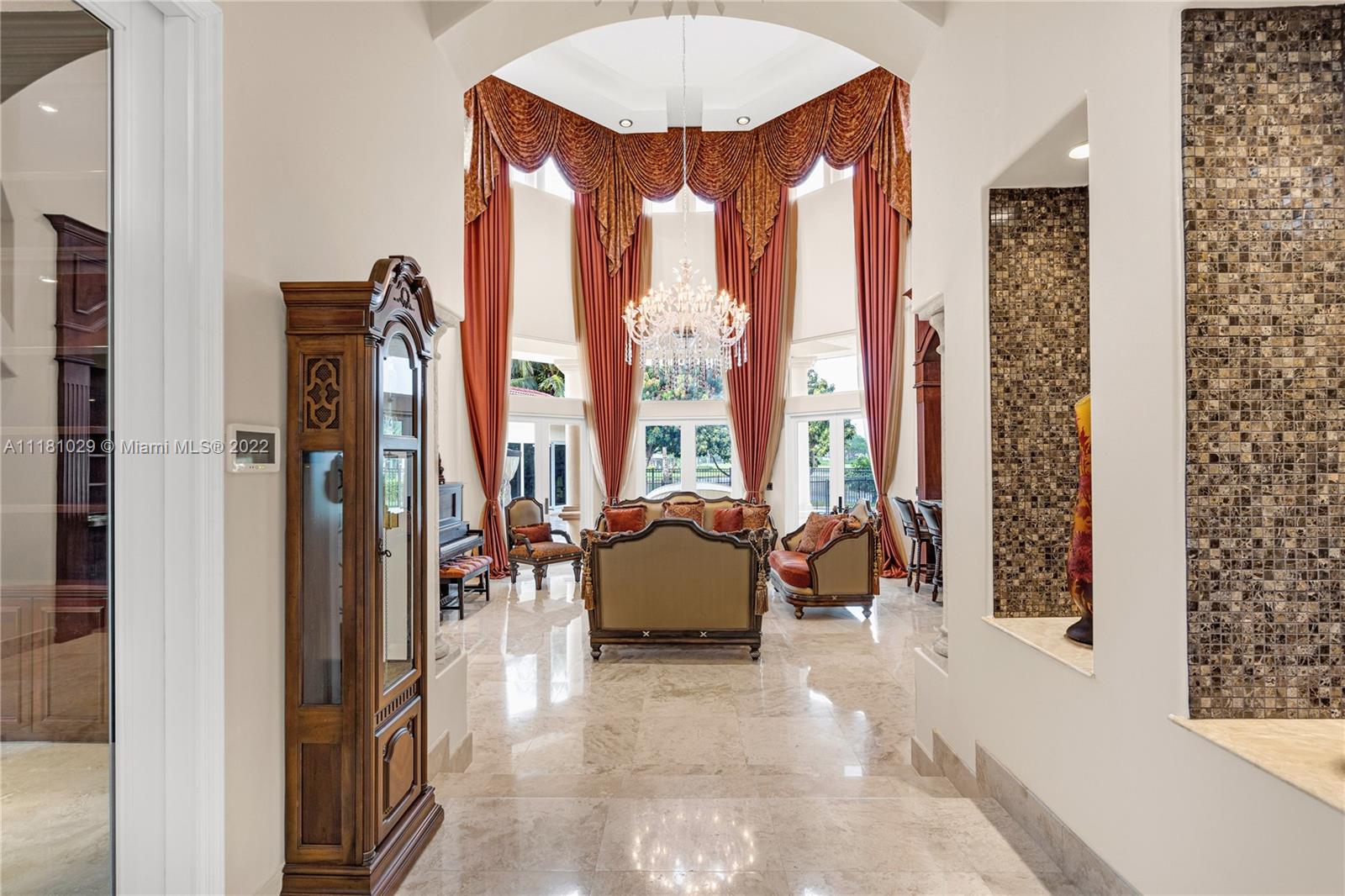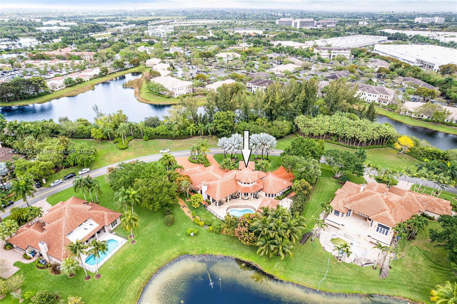 Best Price in Windmill Ranch! Spectacular custom estate in a prestigious gated community, home sits on an exquisite lake front 1 acre lot on a private cut-the-sac lot, with 10+ parking spaces, marble floors, volume ceilings, luxury chandeliers, costume made high end drapes, fireplace with lights, crown molding, Kitchen, bar and bathrooms features stunning imported Quartz countertops, custom made library with mahogany wood and security door, main entrance includes a semiprecious gold medallion valued $15k +, each bedroom has private bathroom, master bedroom includes two closets, private room for exercise or baby room, his and hers bathroom including two toilets, entire house contains LED lights and impact windows, salt water pool and more!
