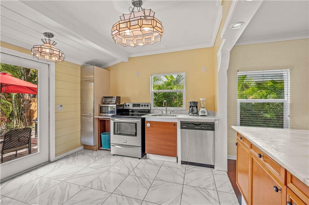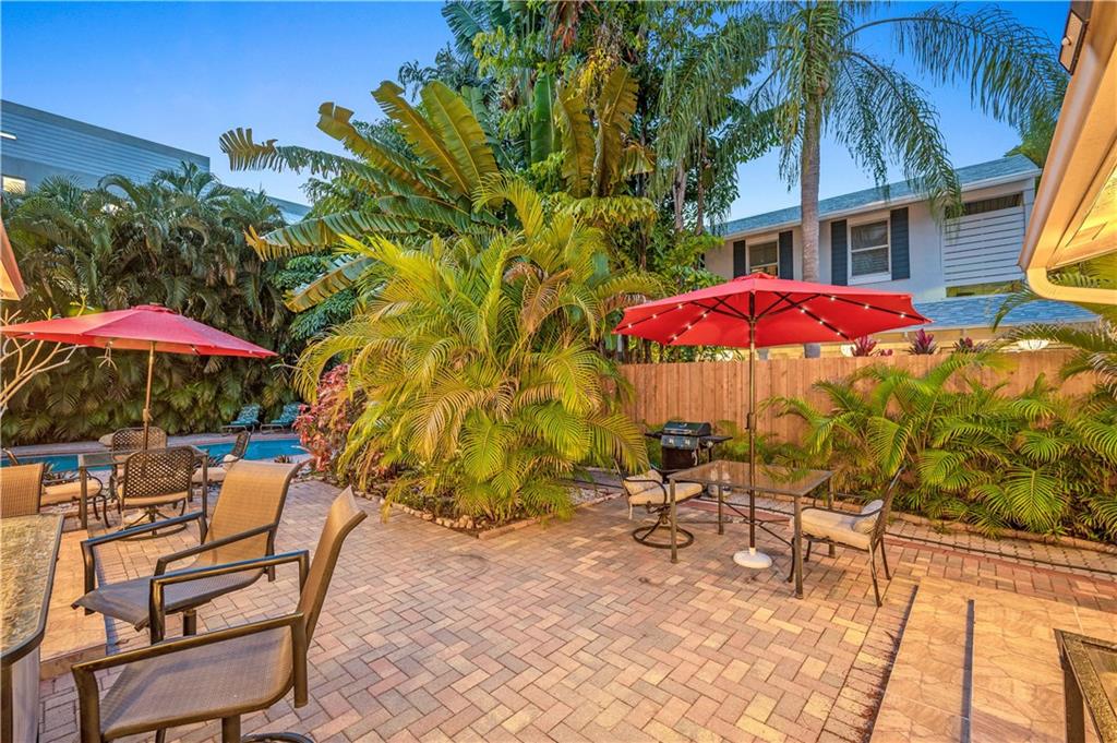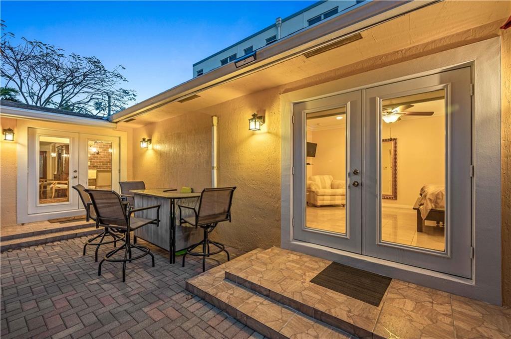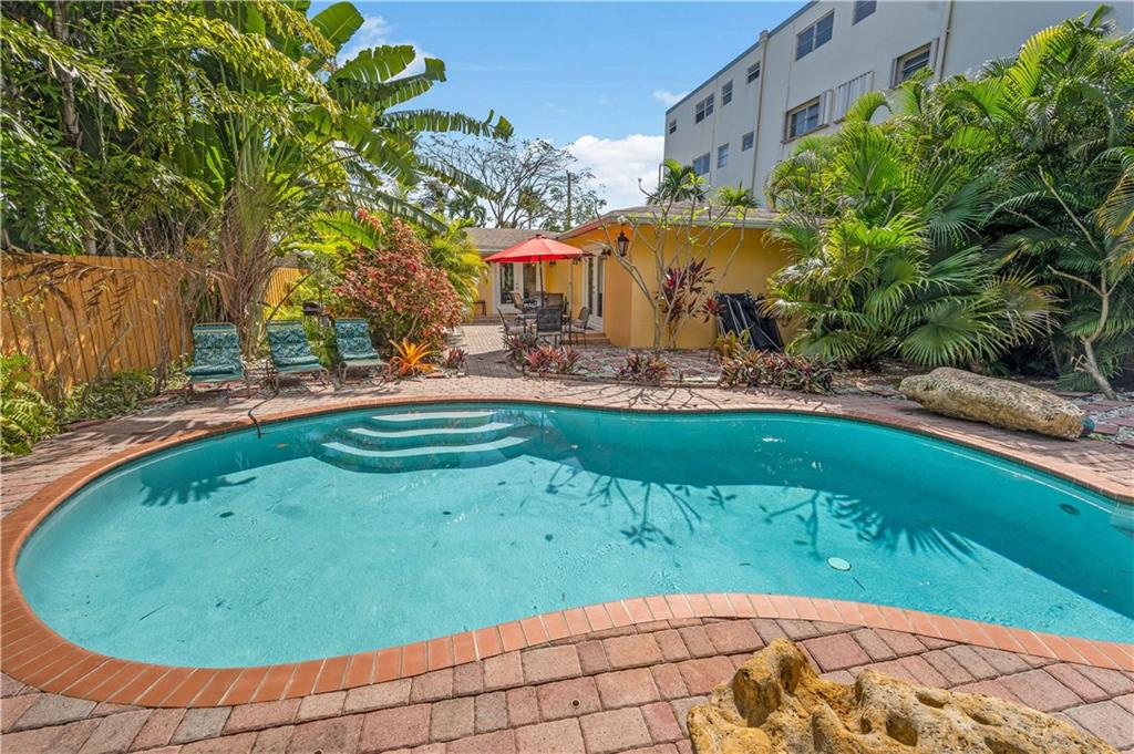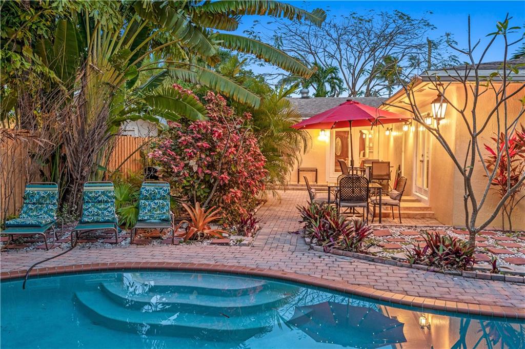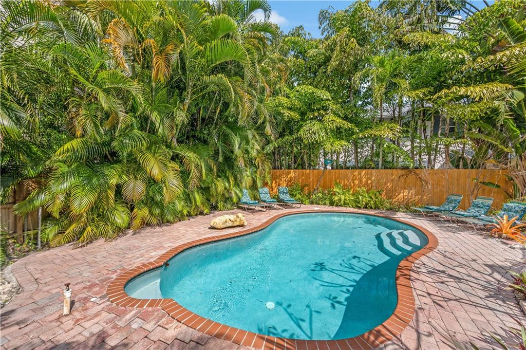 Victoria Park 3 bedroom 2 bath pool home with a terrific park-side location. This property checks all the boxes: an open floor plan, contemporary kitchen with two breakfast bars, formal dining room, a private pool side primary suite with French doors to the terrace and private yard. Rooms are generously-sized. The house has impact rated windows and doors. The yard is fenced for privacy with pretty gardens and a paved patio surrounding the free form pool. This property is currently licensed and operated as a vacation rental and is available furnished.