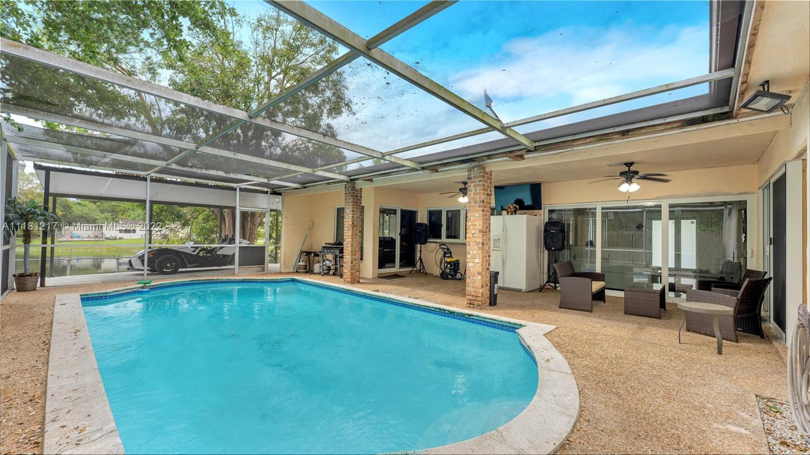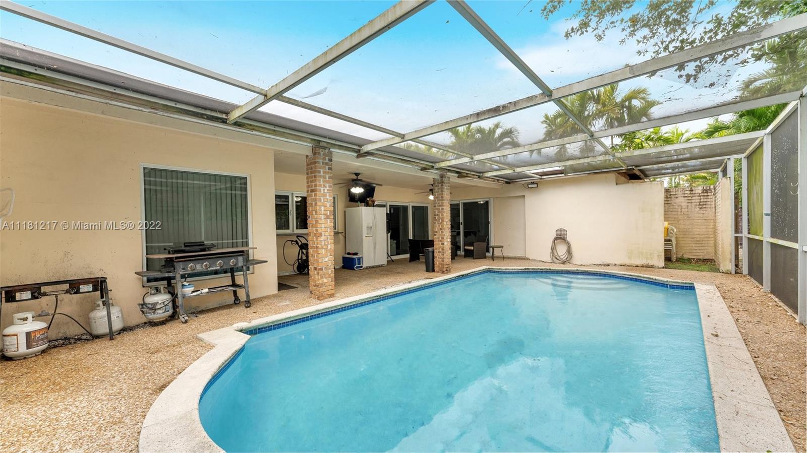 Check out this lovely property new to the market with so much potential . An oasis feel with a covered pool terrace + lake view and access . Great location with a front park for your kids to enjoy . Come put your personal touches & make it yours today .
