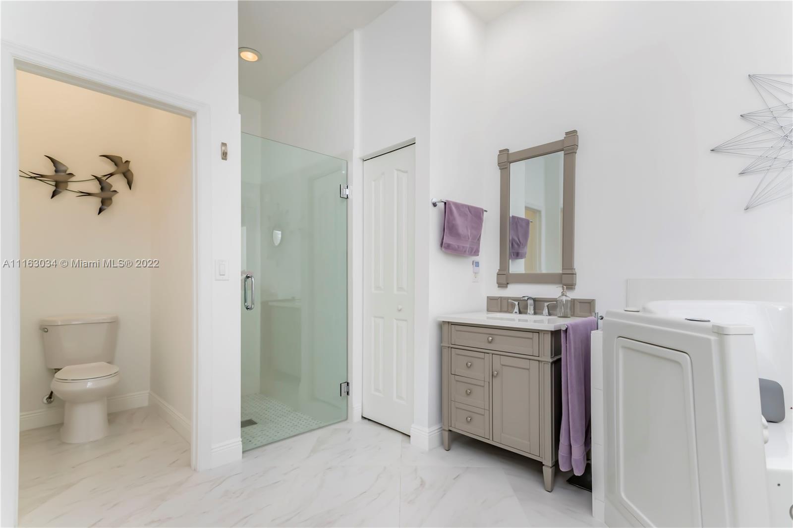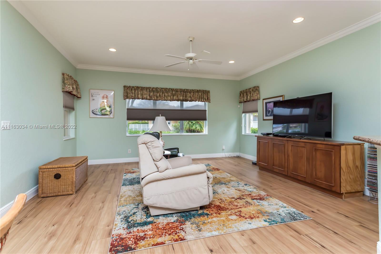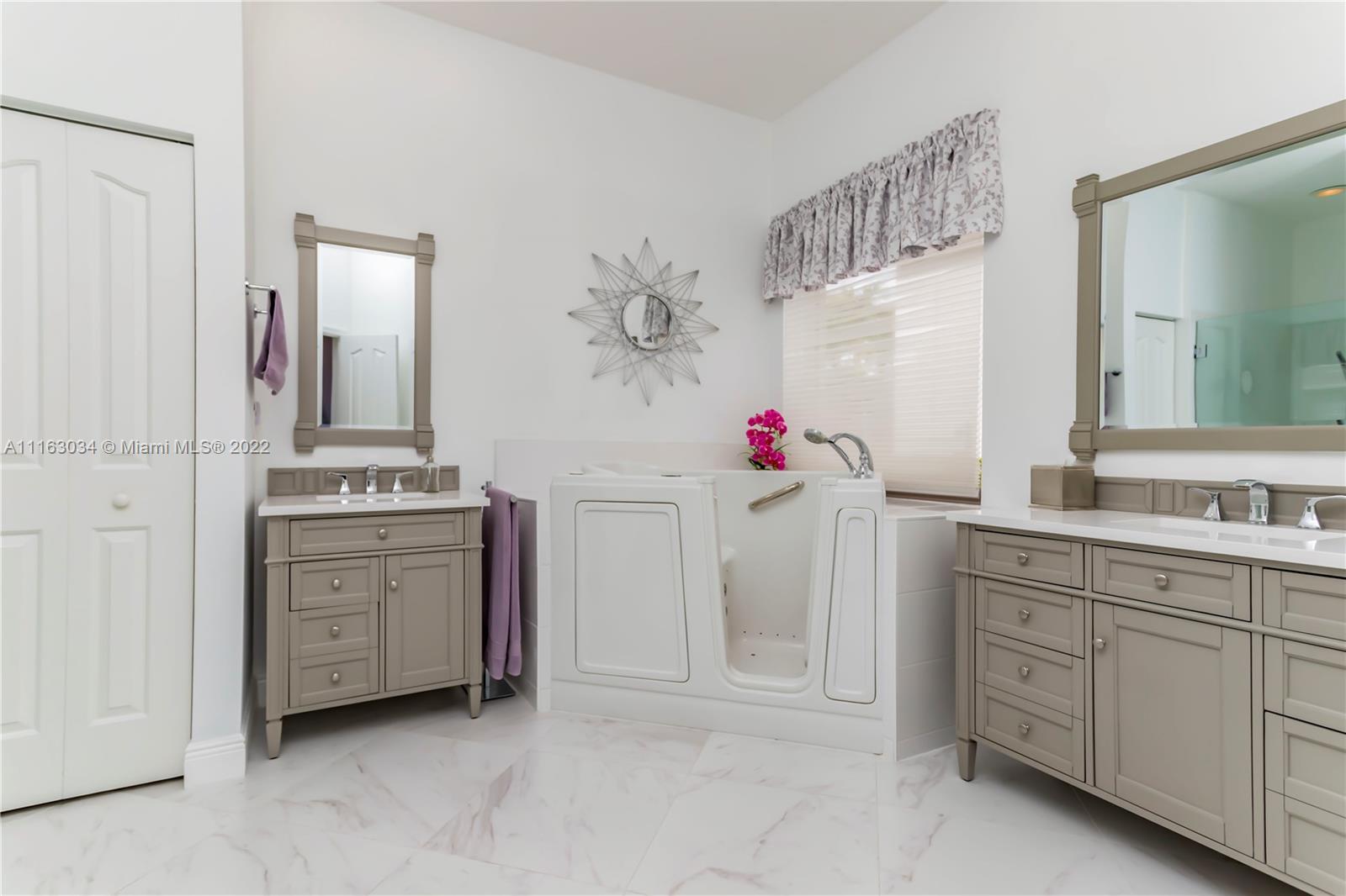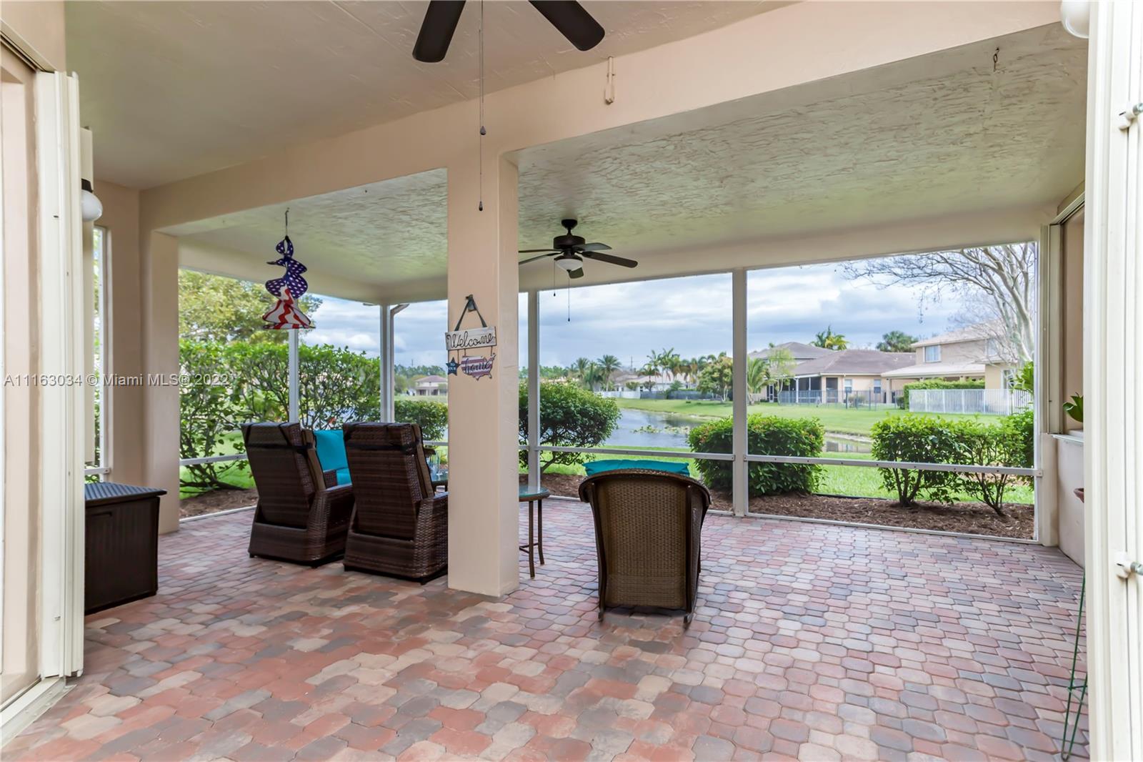 Single-story home in desired community of Isles at Weston. Pride in ownership shows w/ beautifully landscaped yard. Enter into this freshly painted home with its warm neutral tones, high-hat lighting, crown molding & all new base boards. All new beautiful vinyl wood floors. Master bedroom features his and her closets as well as sliding doors that lead to the patio. Master bathroom completely remodeled w/ quartz countertops, an aroma therapy step-in tub w/ bubble jets. Large kitchen and family room perfect for entertaining. French doors in formal Livingroom also lead to the patio. Relax out in your extended patio which is screened in w/ 2 ceiling fans. Amazing views of the lake & garden. Very peaceful & private. HOA includes Internet basic TV, hotwire, clubhouse, gym & pool.