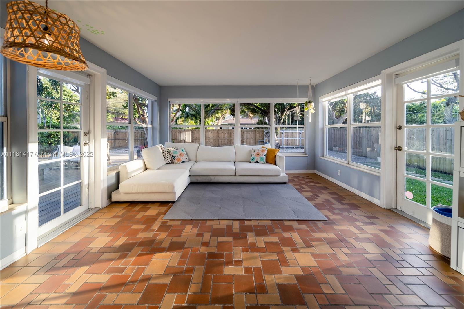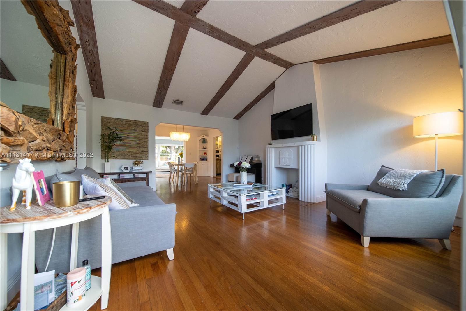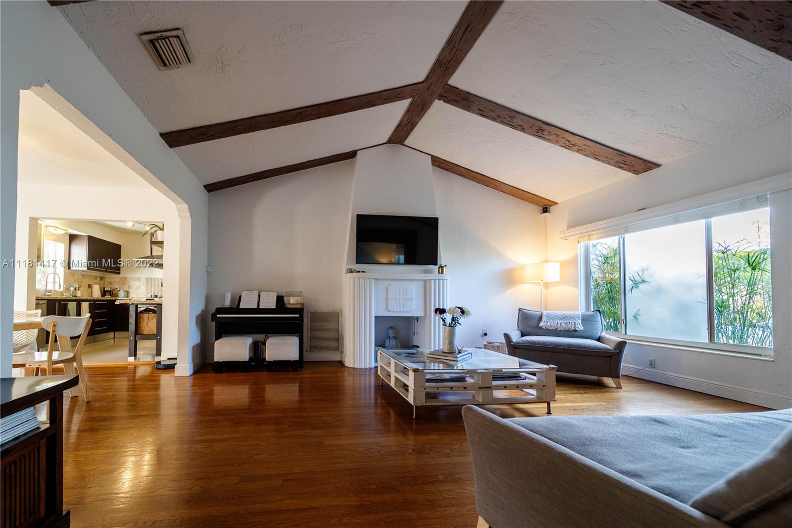 Welcome to this beautiful Miami Shores home in move in-ready condition featuring a 2 bed + 2 bath + Sunroom + one car garage being used as a private home office. Open floor plan showcases hardwood floors , vaulted ceilings and updated kitchen with stainless steel appliances.