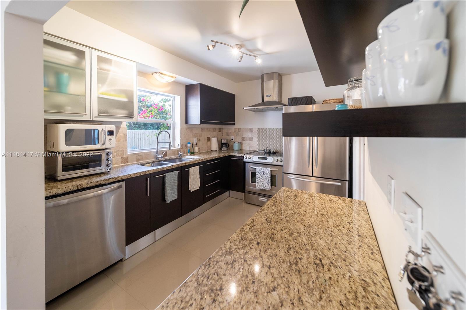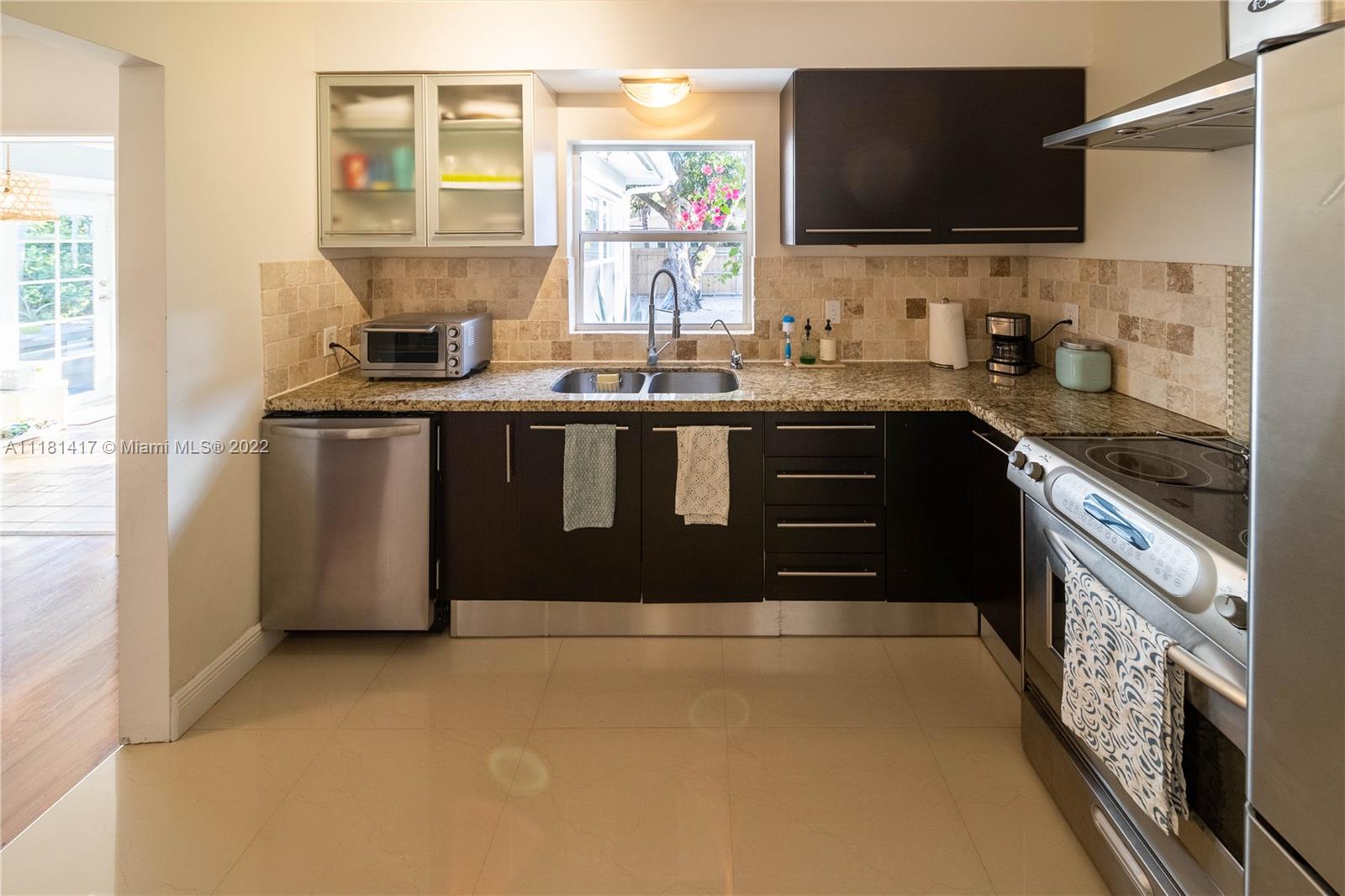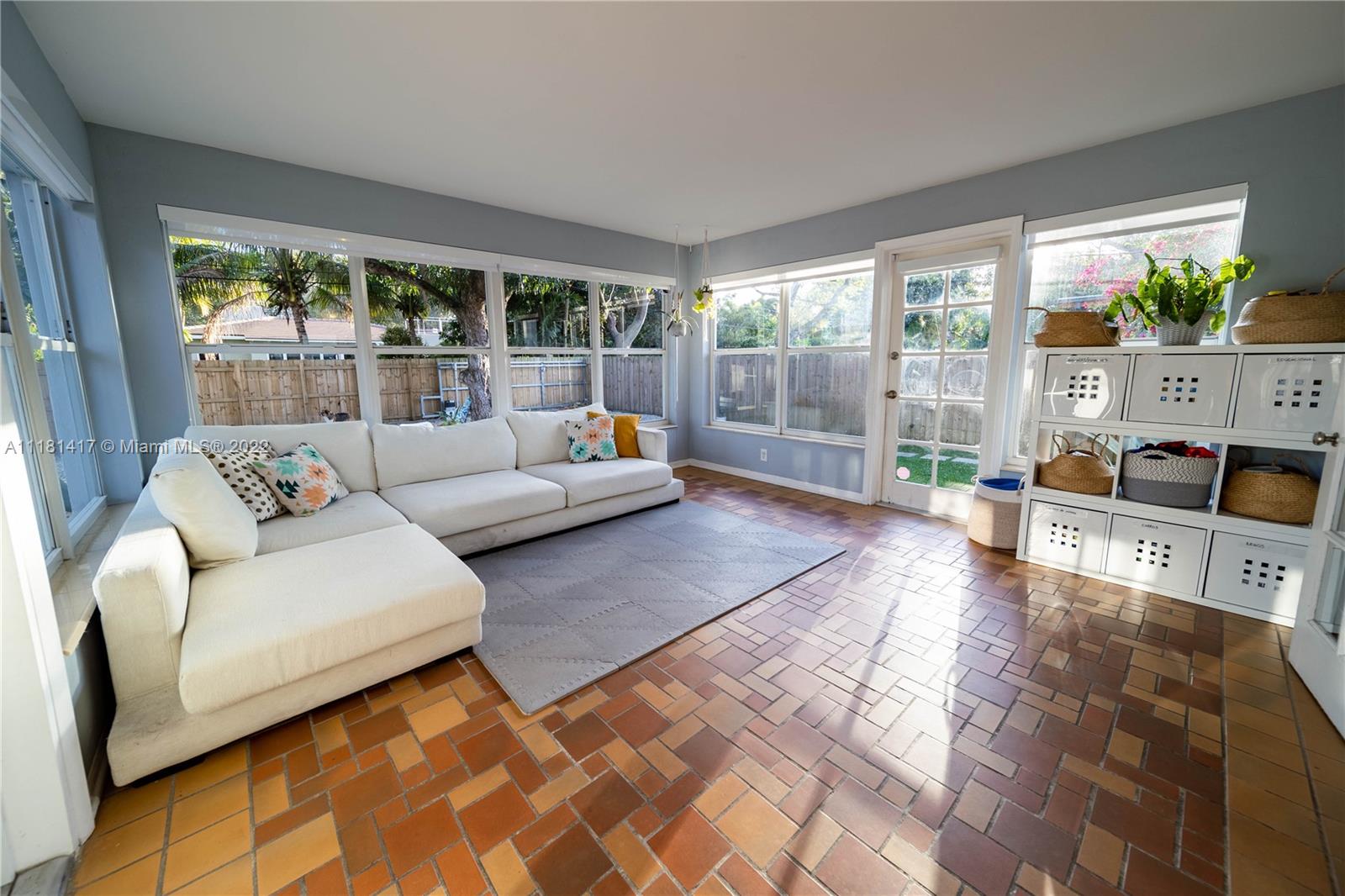 Welcome to this beautiful Miami Shores home in move in-ready condition featuring a 2 bed + 2 bath + Sunroom + one car garage being used as a private home office. Open floor plan showcases hardwood floors , vaulted ceilings and updated kitchen with stainless steel appliances.