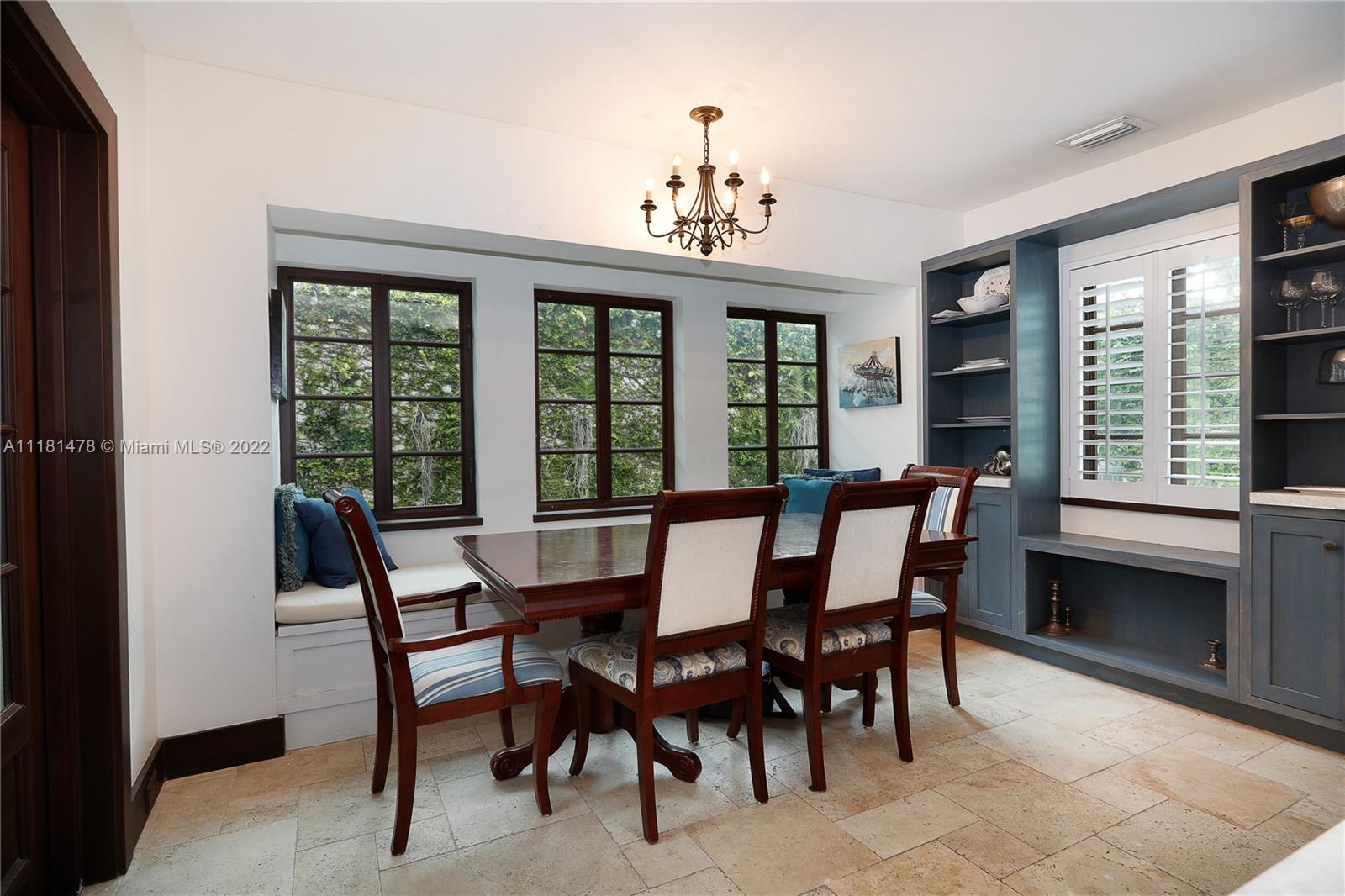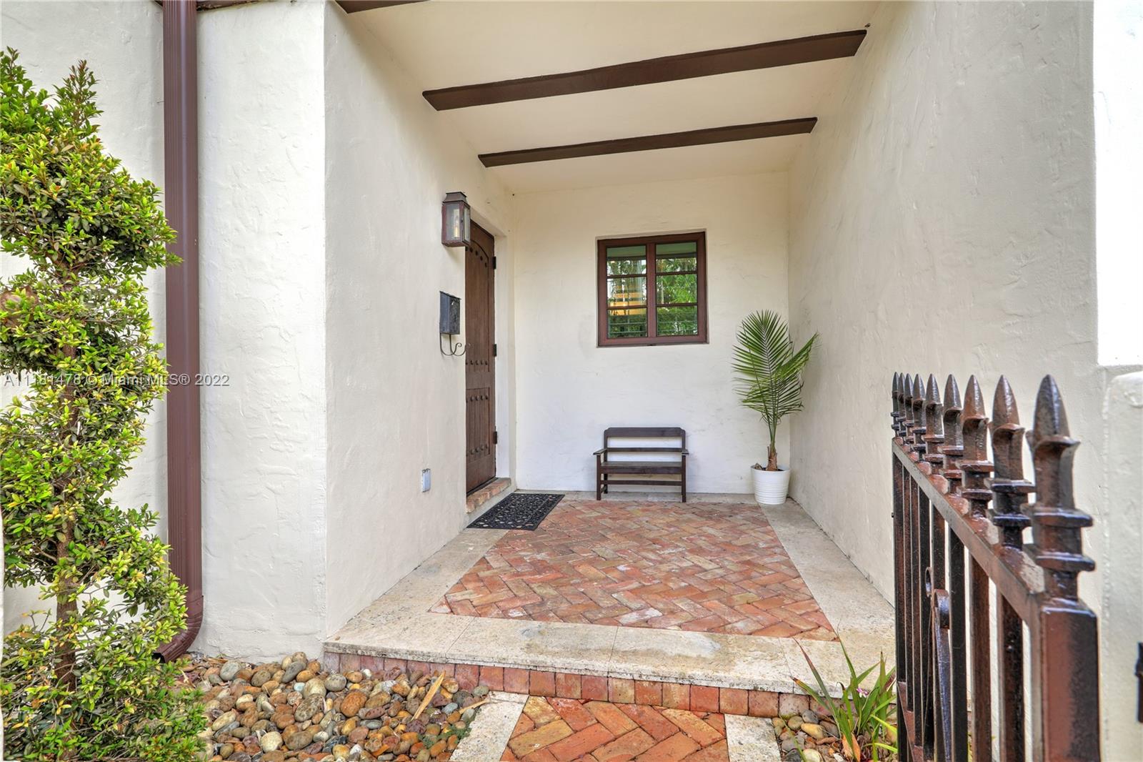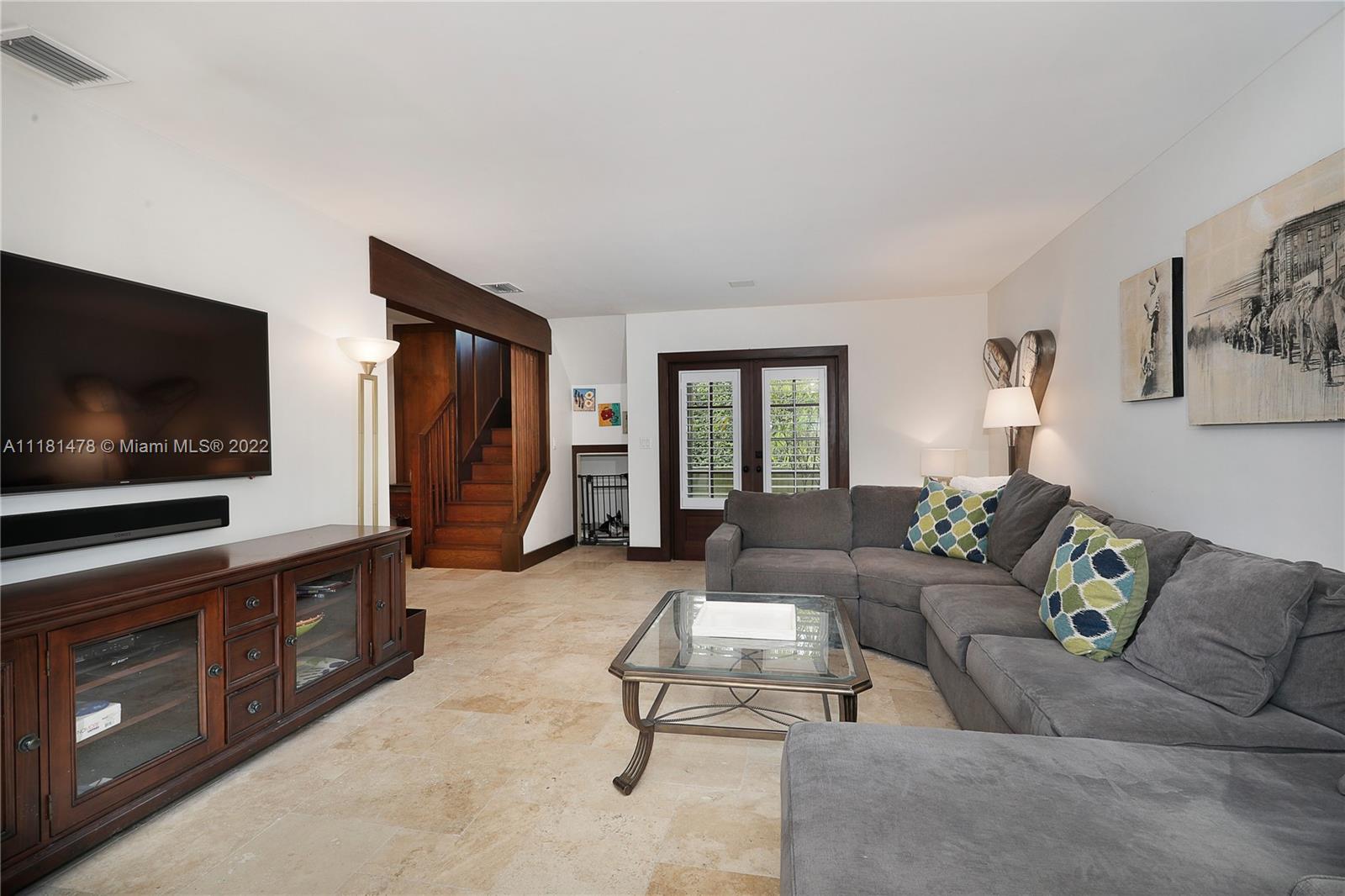 This beautiful French Normandy Village 3 story townhome is truly special! Built in 1989 w/ an effective year of 2010, it offers modern amenities w/ the charm of the original Gables. Covered entry introduces this lovely home w/ open spaces including generous living rm & kitchen w/ large island, great storage, built in window seat & dining space. Impact doors & windows, marble & wood floors, high ceilings & spacious closets are just a few of the special features. The downstairs has wonderful light & French doors opening to the private patio w/ Chicago brick & oozing w/ charm. The 2nd floor is comprised of a den/BR, 2 BR/2 BA incl the spacious primary suite w/ lovely bath w/ tub & shower. The 3rd floor offers an amazing add’l BR, office/playroom w/ walk in closet & beautiful dormer window.