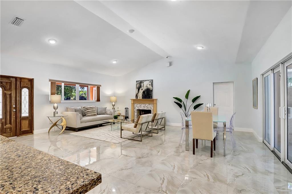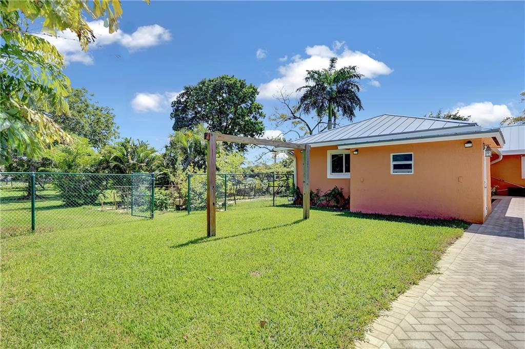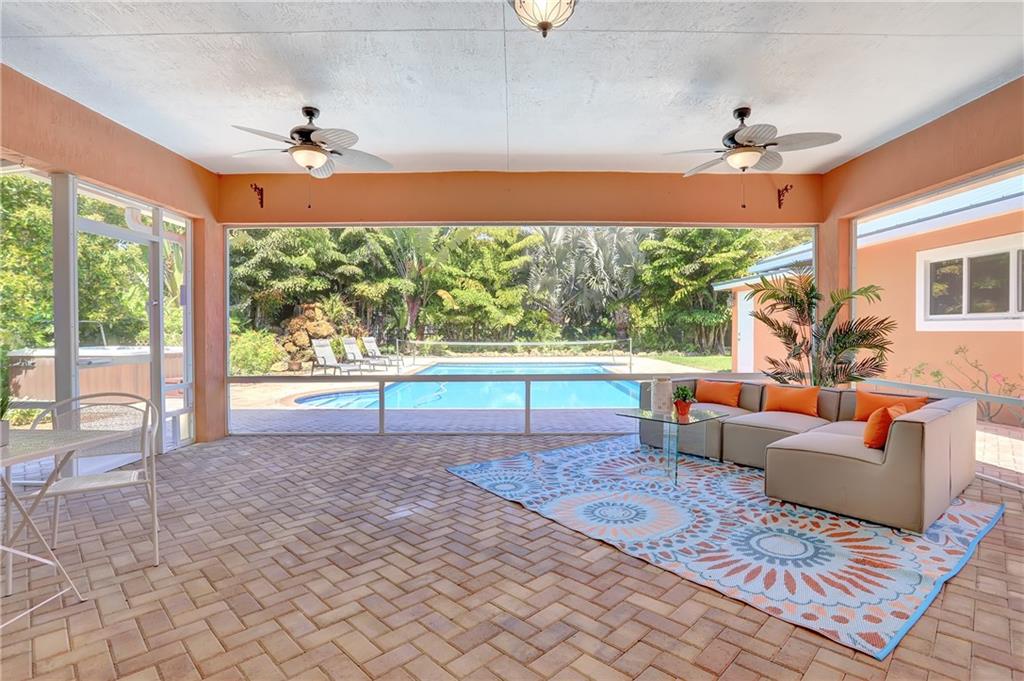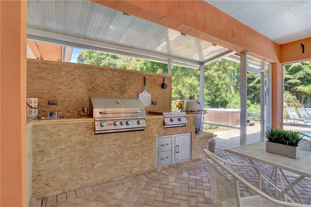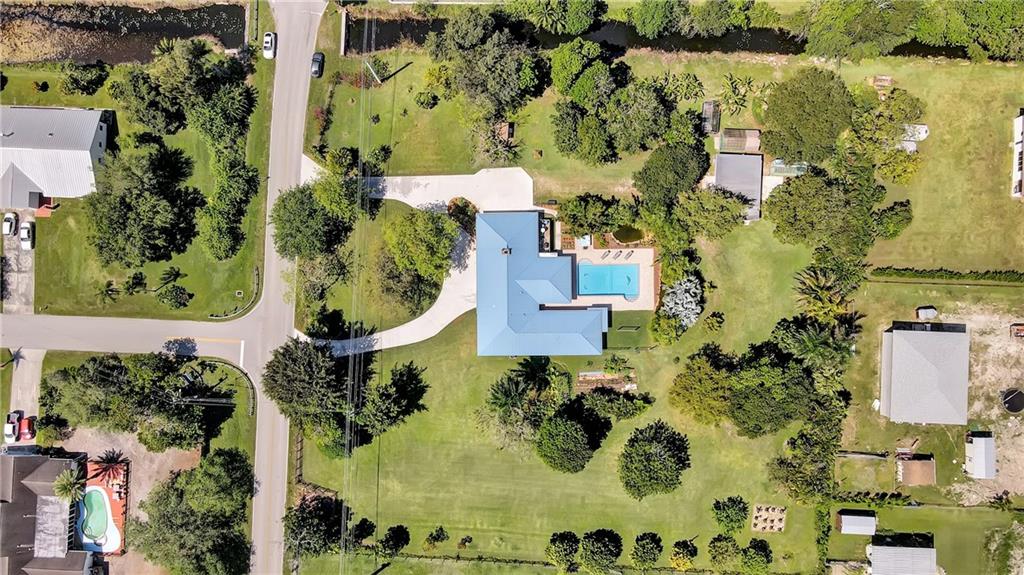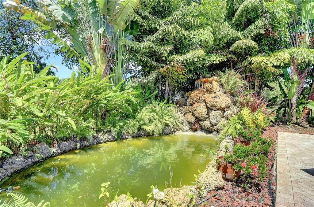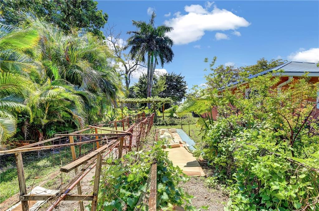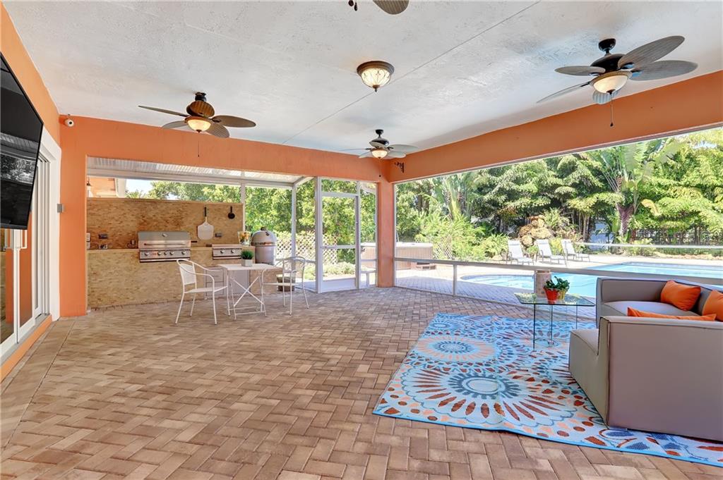 This incredibly rare and impressive property is nestled on a quiet, coveted street in unincorporated Davie; sits comfortably on just under two acres of lush tropical land; features 4 BD’s + office, 3.5 BA’s + poolside cabana bathroom. A covered, brick-paved, and screened-in patio features a summer kitchen, overlooking the oversized pool and cascading rock waterfall, is perfect for entertaining or private enjoyment alike. A sprawling circular driveway can easily accommodate a small fleet of vehicles. Substantially remodeled, reinforced to meet the latest code, and expanded, boasting tile throughout the living areas, hardwood in the bedrooms, complete impact windows and doors all around. The indoor kitchen boasts stainless-steel appliances, granite countertops, and wood cabinets.