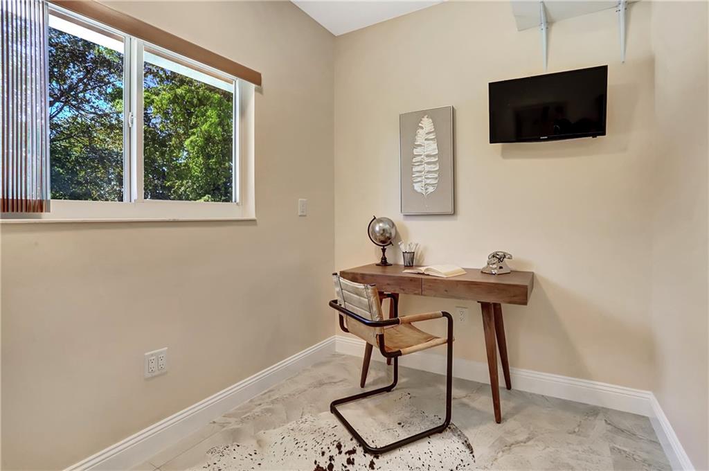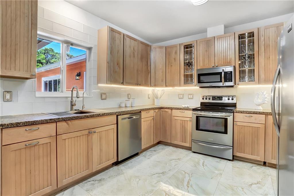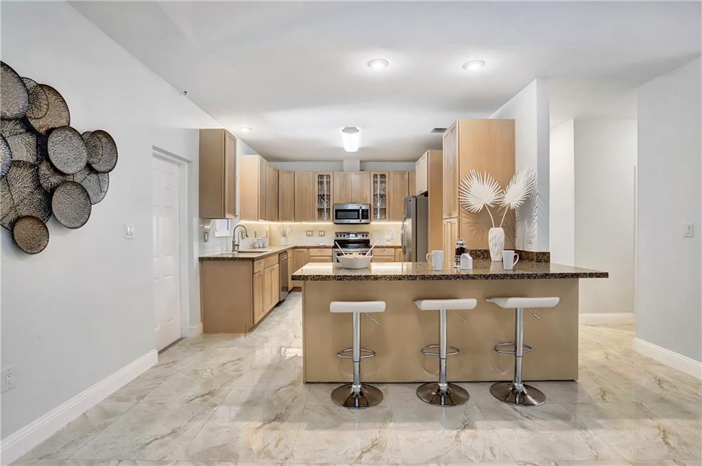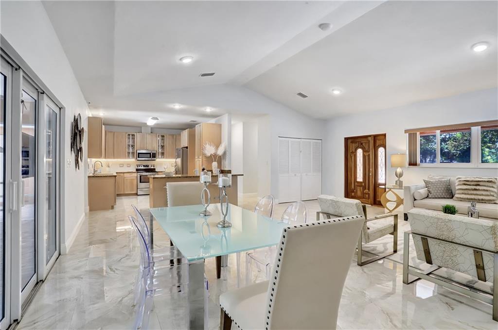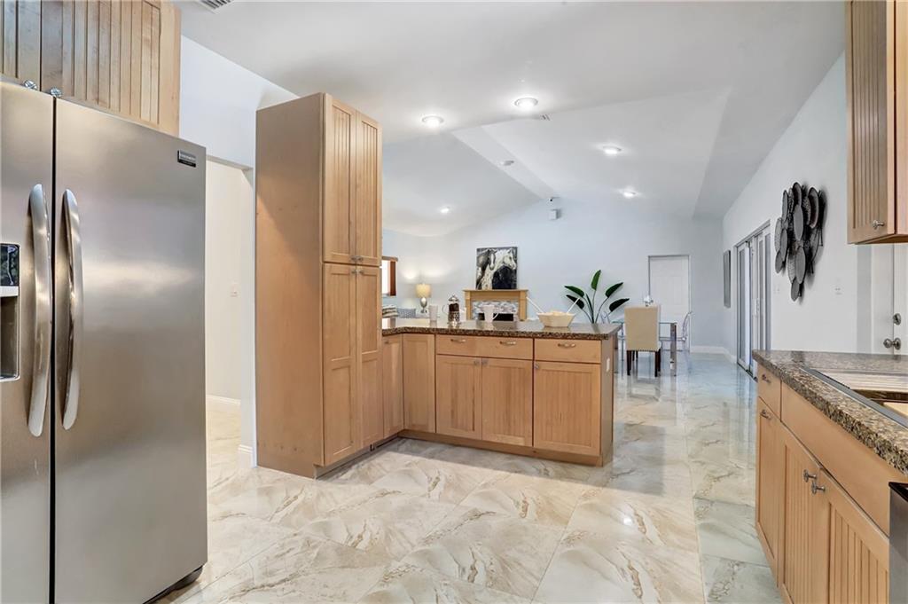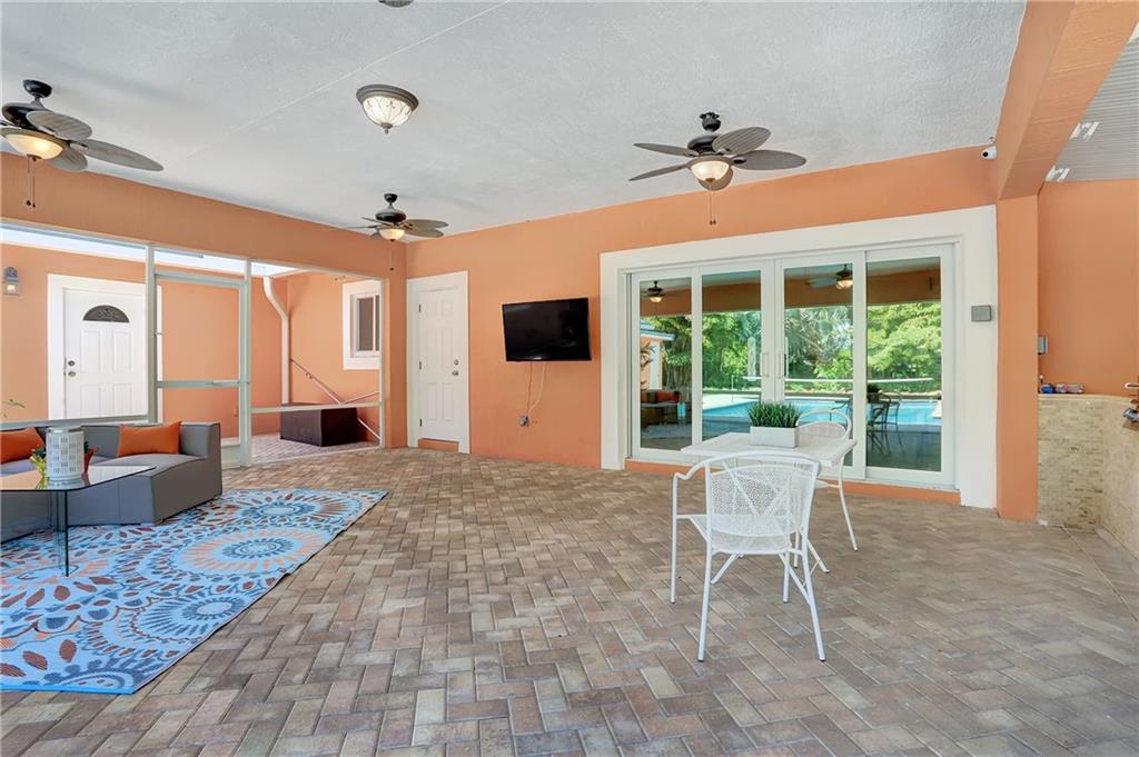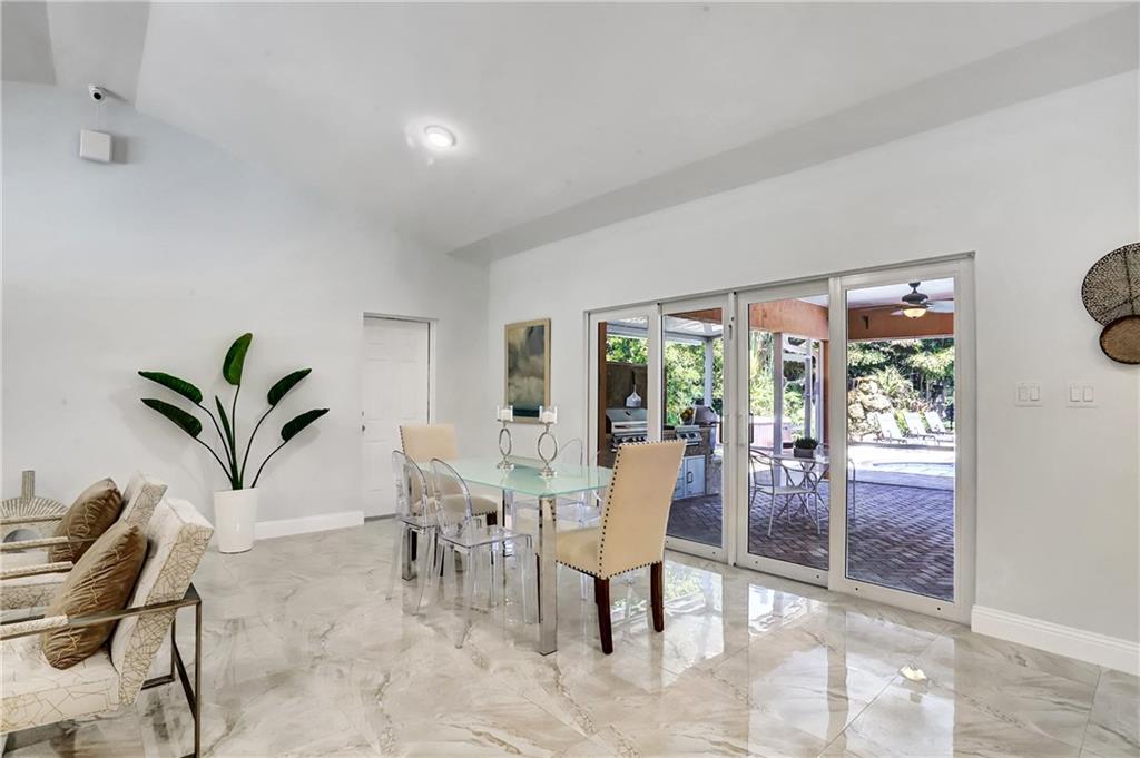 This incredibly rare and impressive property is nestled on a quiet, coveted street in unincorporated Davie; sits comfortably on just under two acres of lush tropical land; features 4 BD’s + office, 3.5 BA’s + poolside cabana bathroom. A covered, brick-paved, and screened-in patio features a summer kitchen, overlooking the oversized pool and cascading rock waterfall, is perfect for entertaining or private enjoyment alike. A sprawling circular driveway can easily accommodate a small fleet of vehicles. Substantially remodeled, reinforced to meet the latest code, and expanded, boasting tile throughout the living areas, hardwood in the bedrooms, complete impact windows and doors all around. The indoor kitchen boasts stainless-steel appliances, granite countertops, and wood cabinets.