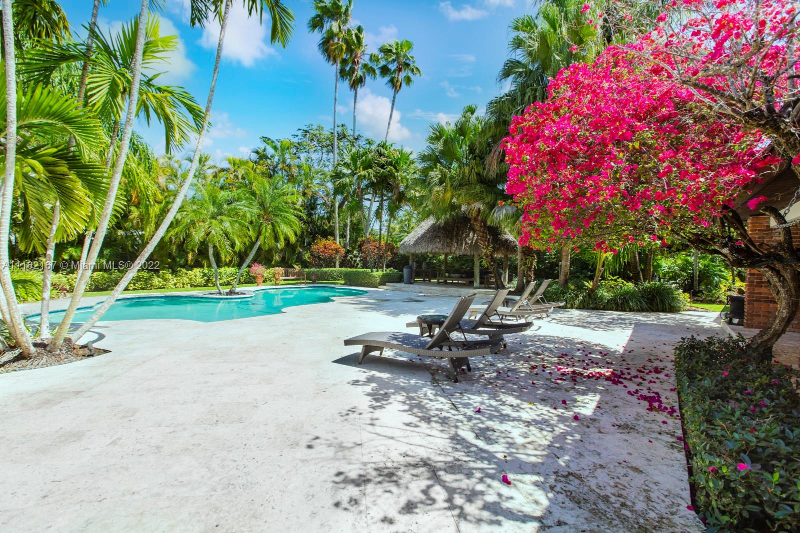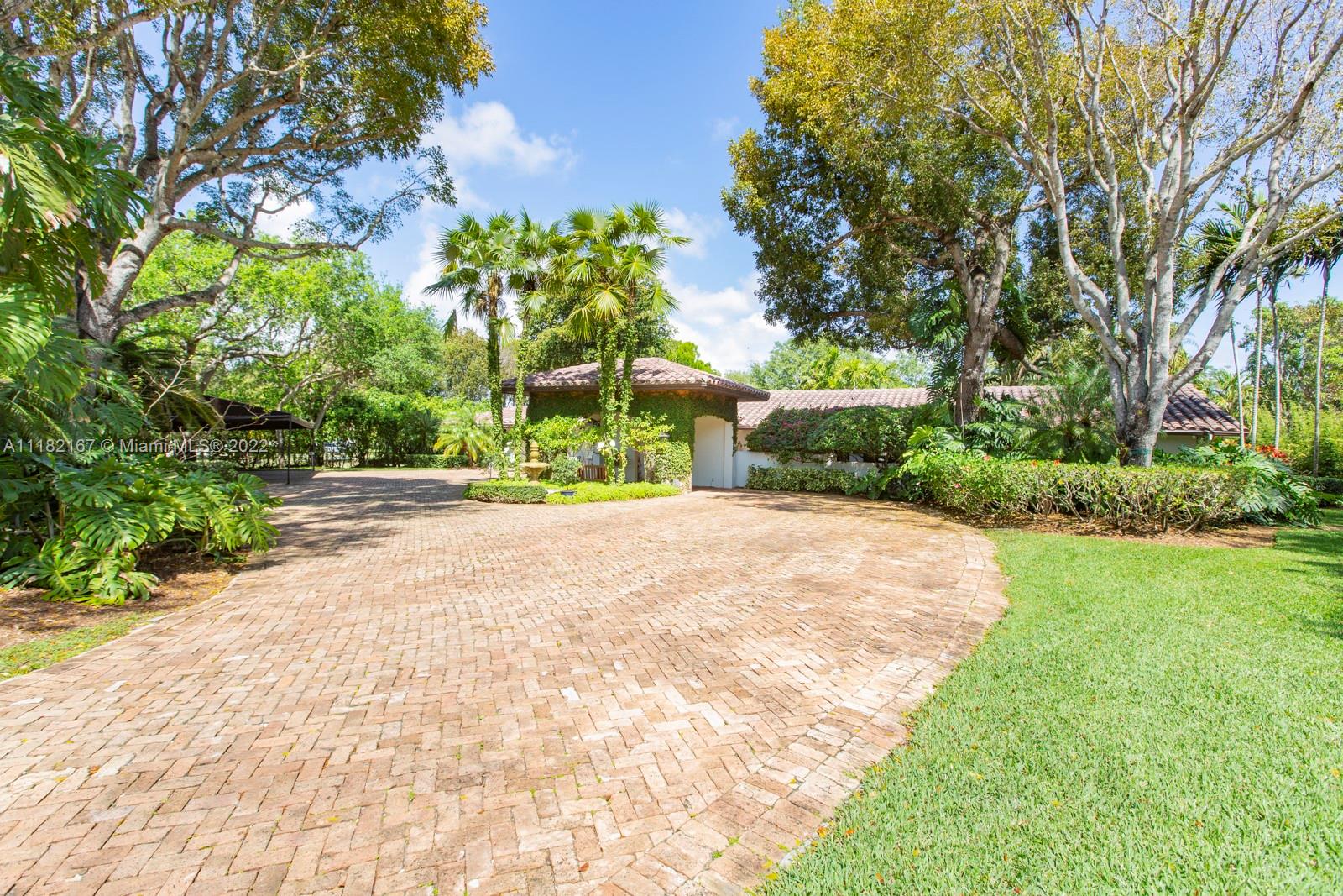 Beautifully updated 6 bedroom 5 bath fully gated and secluded corner acre home in the heart of East Pinecrest. Picturesque and elegant family home with loads of charm and space for formal and informal living, both inside and out. Strong sense of style along with beautiful vistas make it feel like you have escaped to Tuscany. Redone plumbing, all impact glass, fabulous updated gourmet kitchen, gym/office, gorgeous tropically planted pool-patio-yard + basketball/pickleball court. Top of the line detailing and upgrades throughout. Porte-cache + 3-car carport, inviting and lush front dining courtyard. All of the best schools in Pinecrest.