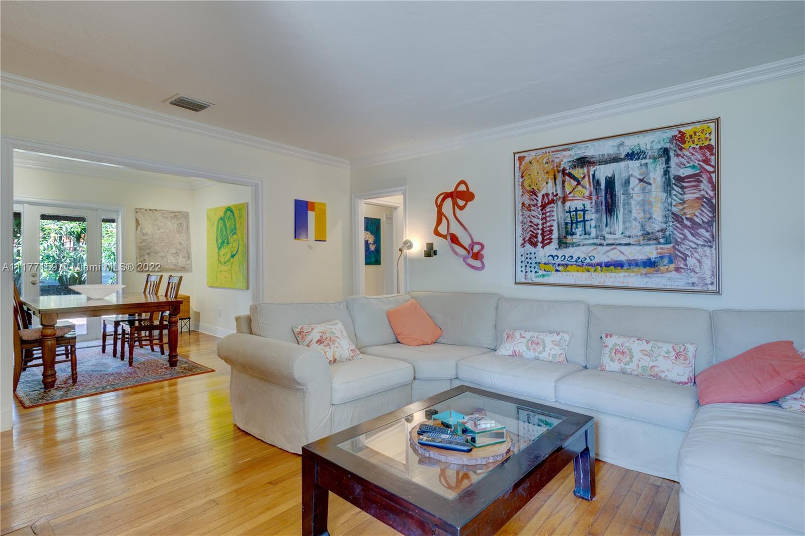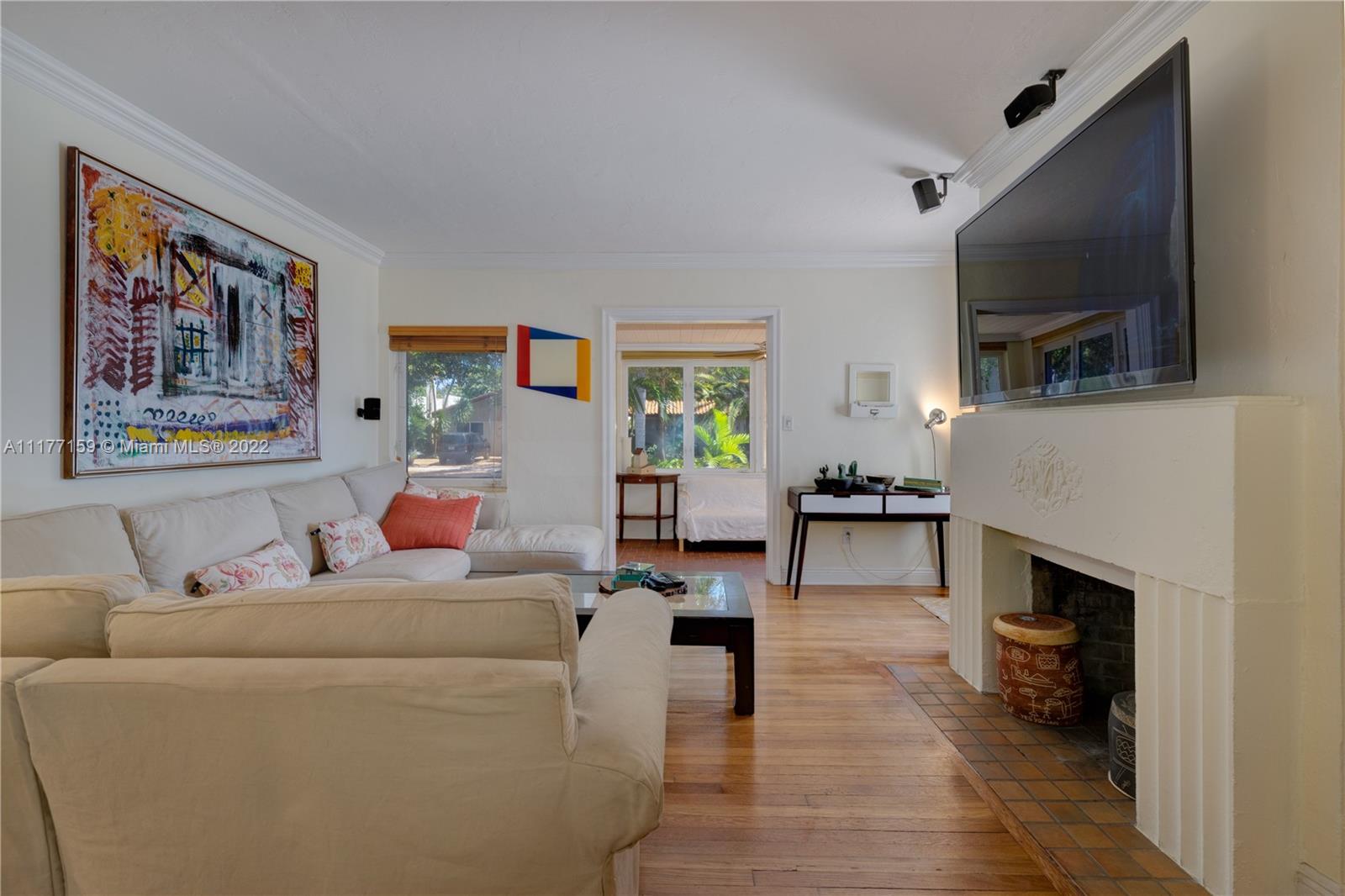 Beautiful 2 bed/2 bath + Den, easy to convert into a 3/2. With one car garage and an Old Chicago Brick driveway for 4 more cars. Beautiful state of the art kitchen w/granite counter tops, professional chef's gas stove with cooker hood & stainless-steel appliances. Wood floors. Art deco style fireplace. Crown moldings thru out. Large backyard with room for a pool. Backyard deck. Concrete Fenced backyard. Prewired surround sound speakers. Home generator. Impact windows. Newly painted exterior. Large utility room/Laundry room. New A/C & Water Heater and more...
