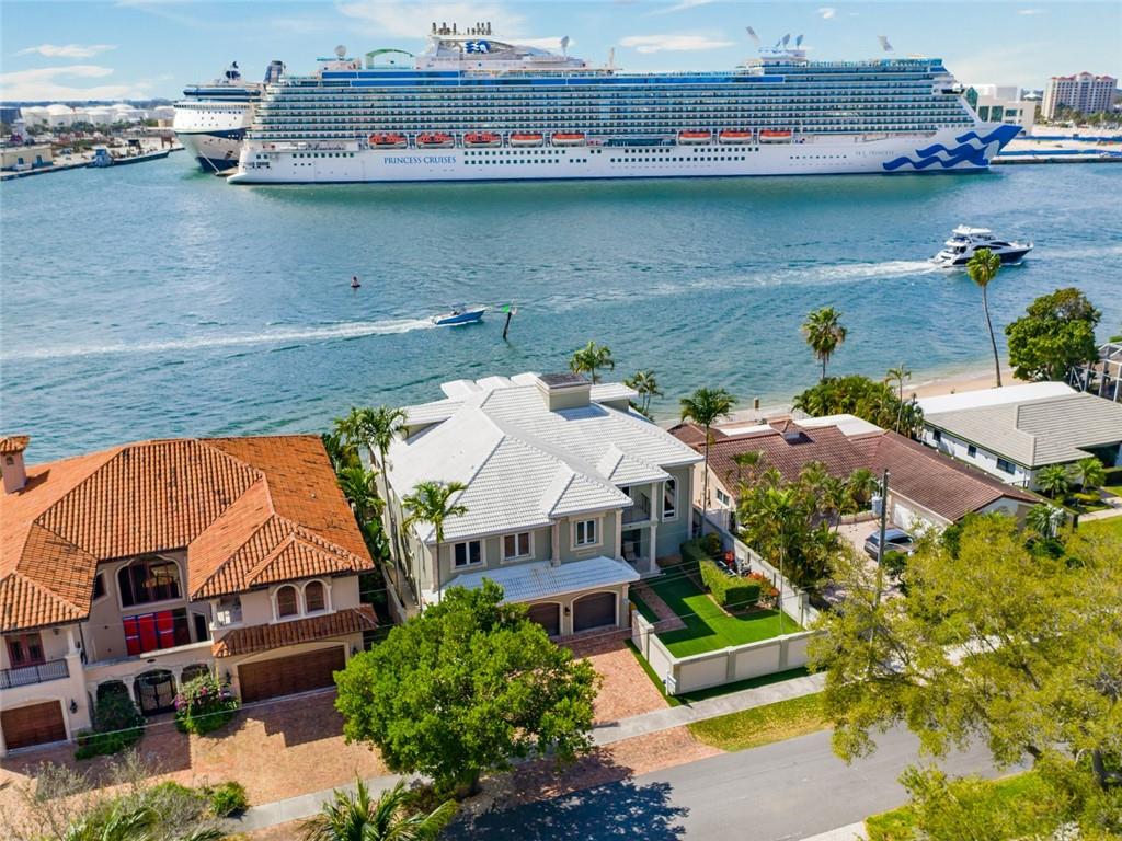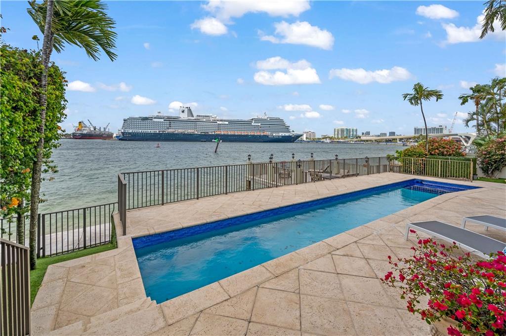 Sought after and rarely available Harbour Inlet waterfront estate, featuring incredible views of mega yachts and cruise ships 7 days a week! Breathtaking sunsets & gorgeous downtown views. A spacious 2nd floor balcony spans the length of the home. 4 large bedrooms with office/gym, a full house automatic generator, water purifying system, wood floors, impact windows, large kitchen with island and huge pantry. Beautiful coffered ceilings with crown molding, wet bar and commercial elevator with access to 3rd floor air conditioned attic. Large master suite with 2 huge master closets. The oversized concrete dock & 11X50 ft. lap pool is fun for all social gatherings. Artificial turf and a complete mosquito misting system. Generous 3 car garage. Interior photos week of April 5th.