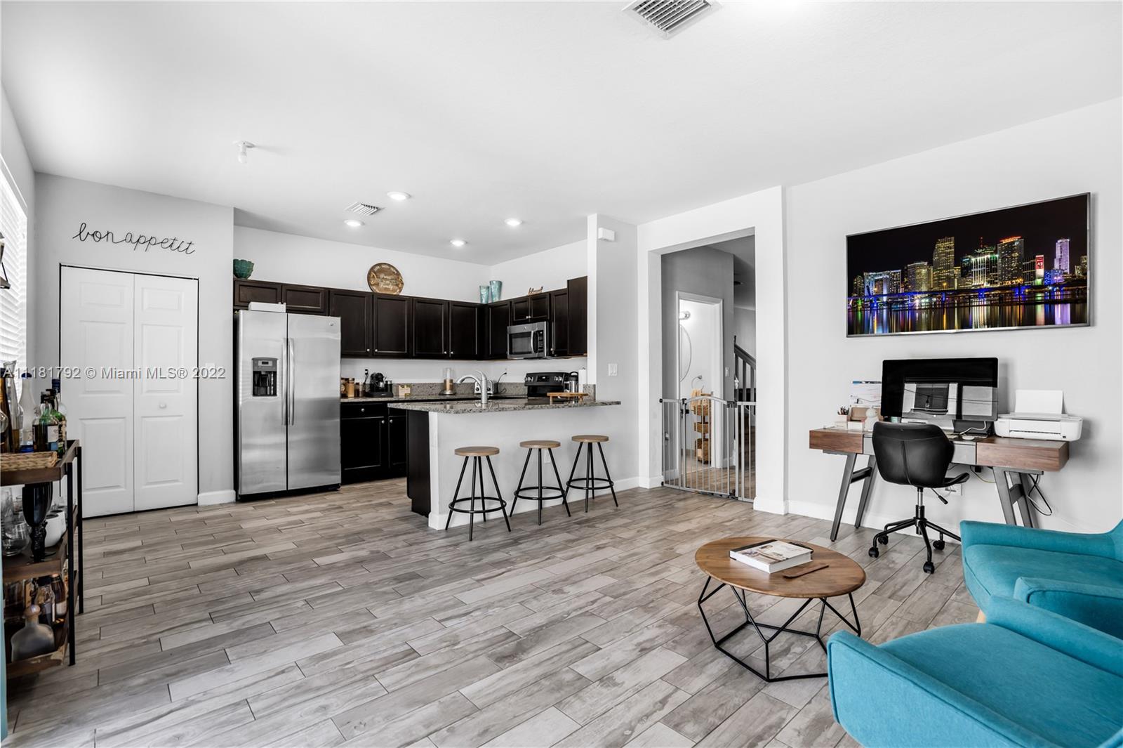 Spectacular Townhouse rarely available 4/2.5 with garage, located in the New Gated Community of Aquabella, additional den that can be use as Office, game room or library. Beautiful tile on the first floor with wood look, stainless steel appliances, granite and wood open concept kitchen, nice fence patio to fully enjoy. Resort-style amenities as LakeFront Clubhouse, Bussiness Center, Gym, Pool, BBQ area and more. Hurry Wont Last!!