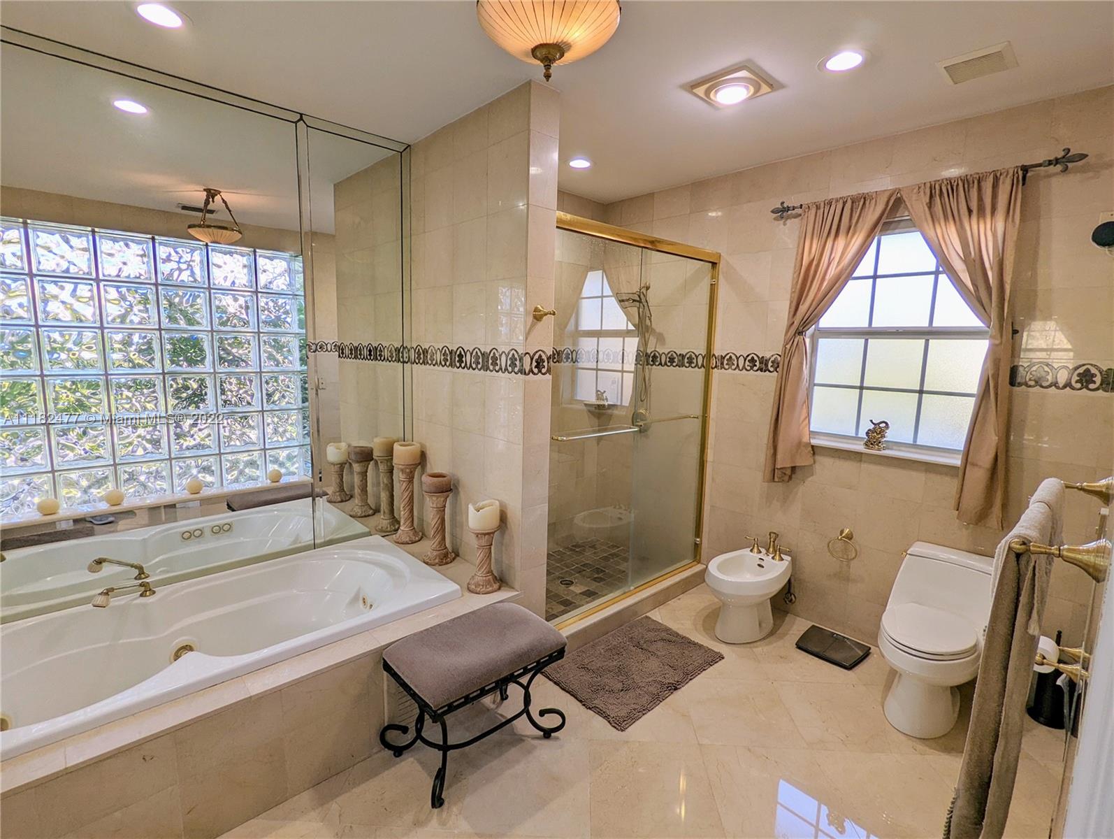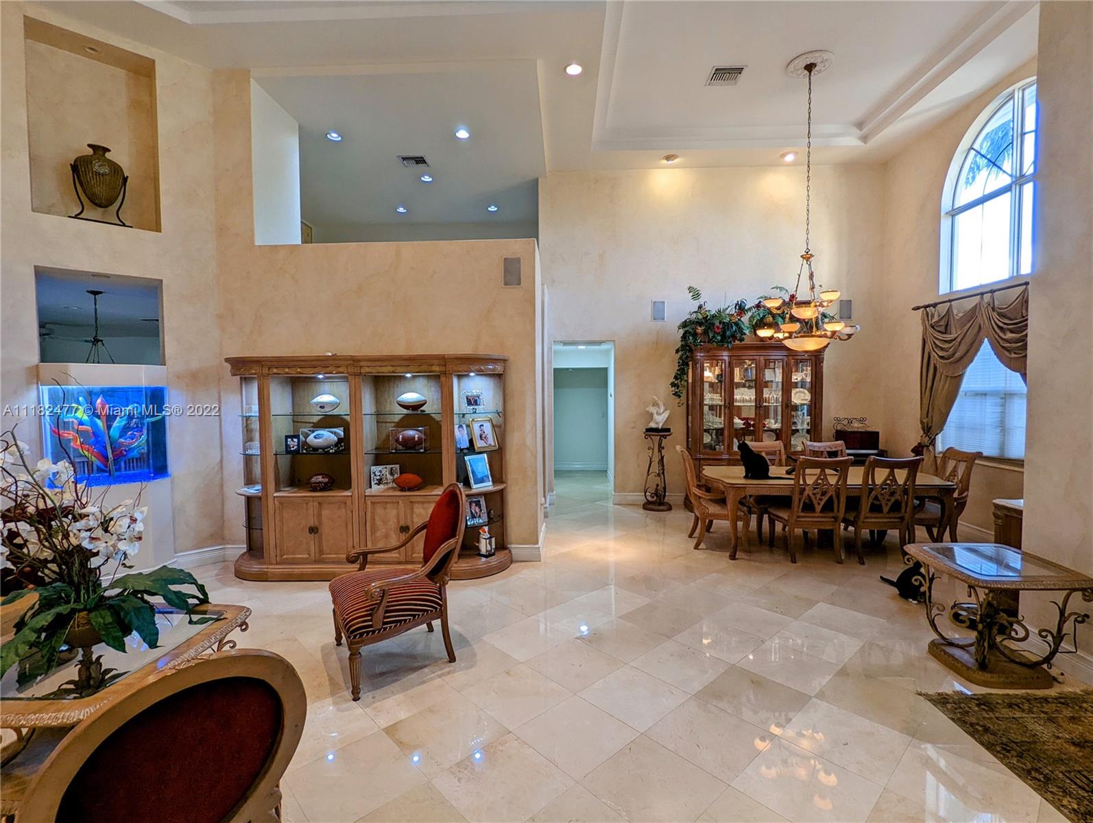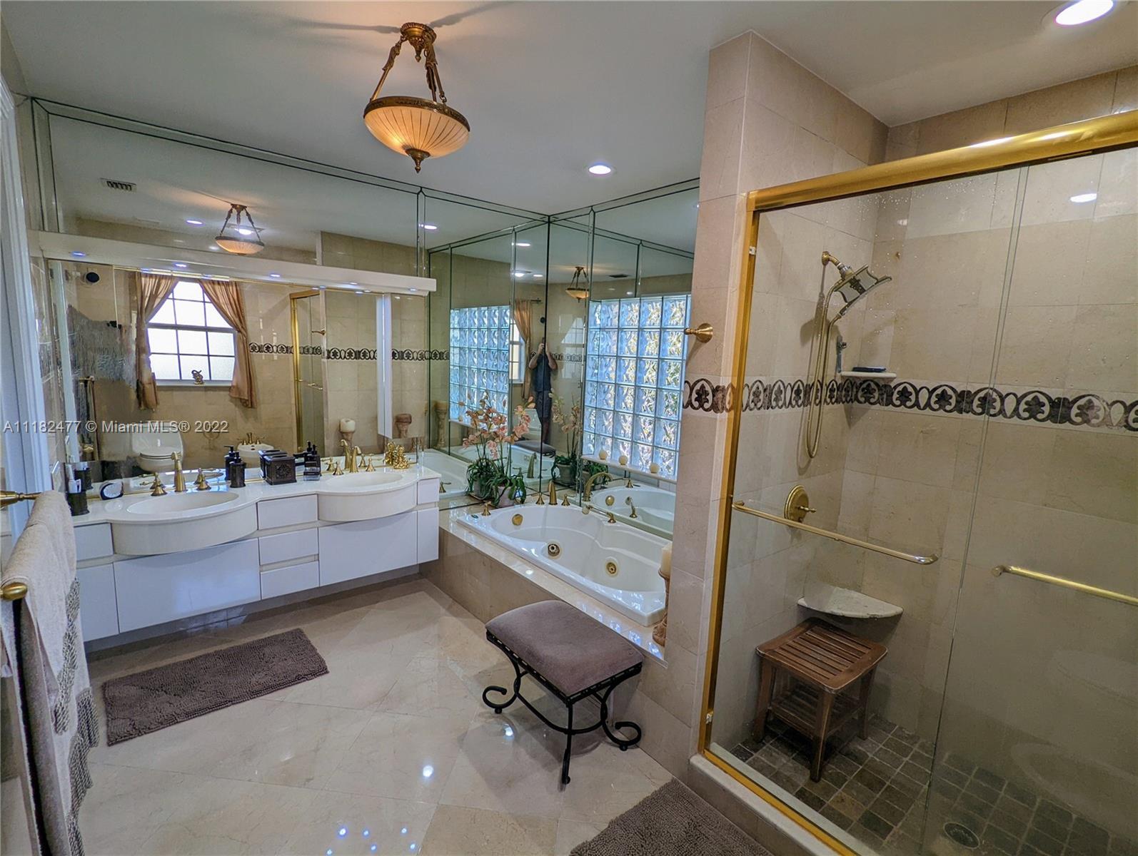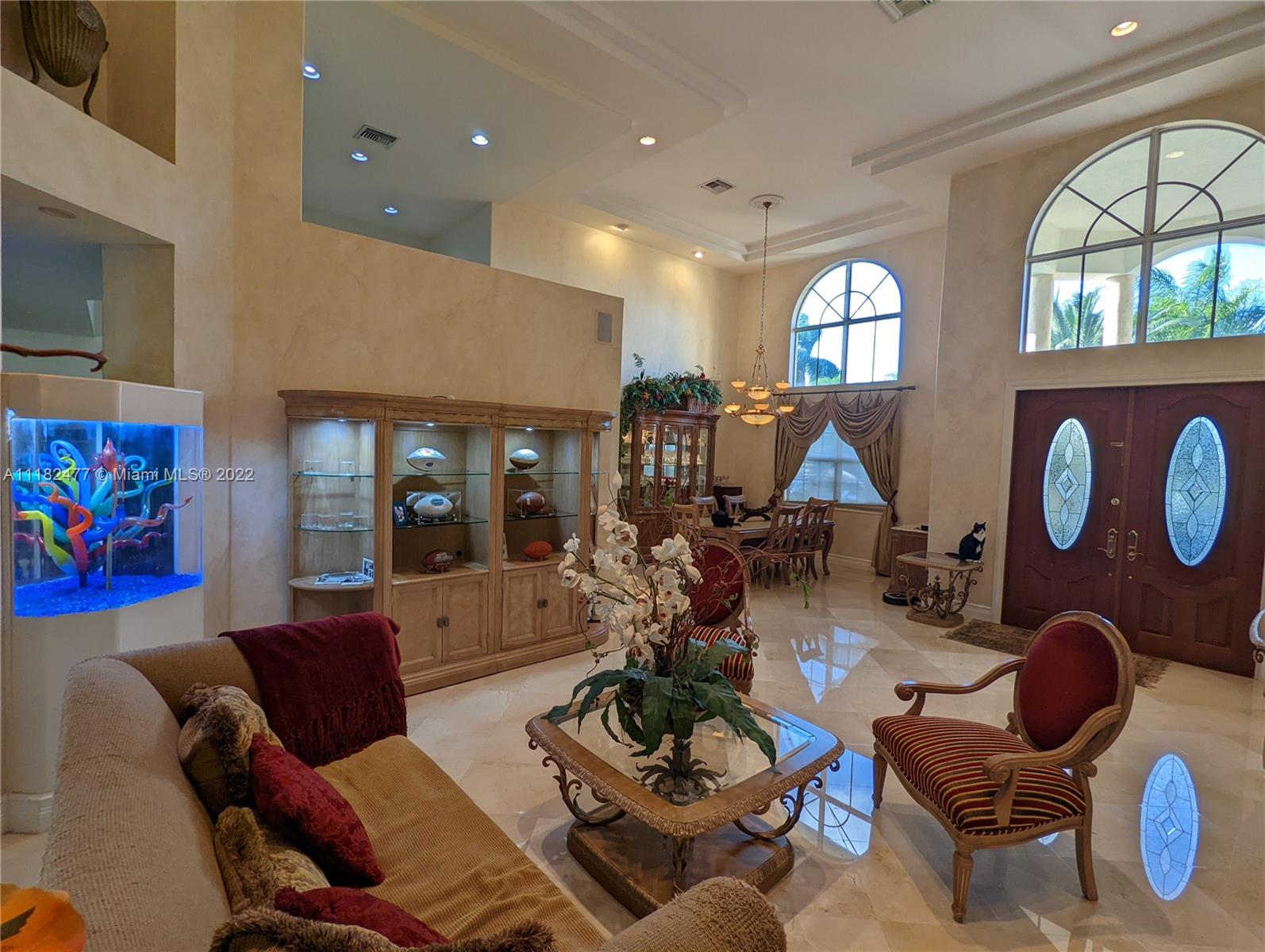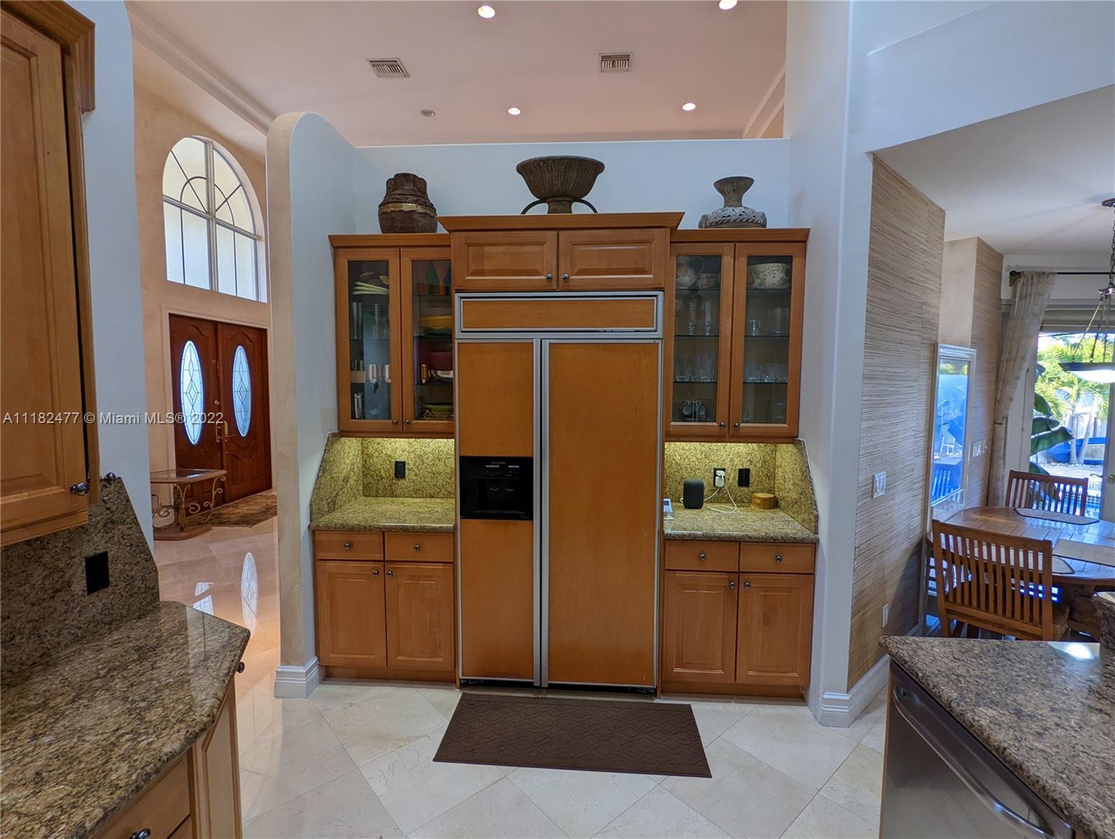 Beautiful 5/4, waterfront, ocean access home in guard-gated Eastern Shores. Dock for 80 foot yacht. Modern home with luxurious high ceilings, marble floors, granite counters, 100% hurricane impact windows, 4 AC zones, heated pool, spa, Google smart home & so much more. This house was built to modern hurricane standards with high strength roof system. The master suite is downstairs, with 2 more bedrooms downstairs and 2 more bedrooms upstairs. No fixed bridges to the ocean and this location is a very secure spot for your yacht. Includes a Waverunner elevator lift. This home is located at the private cul-de-sac at the end of 164th ST. There are only 128 homes inside this guard gate so it is a very private and secure home for your family.