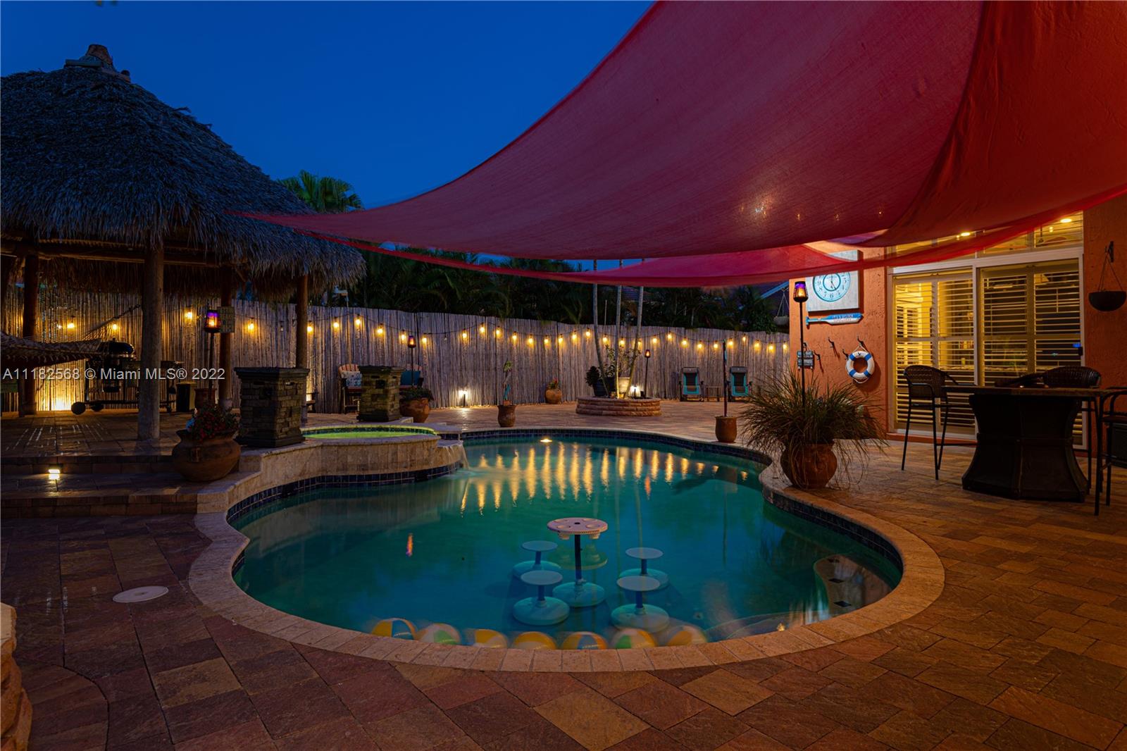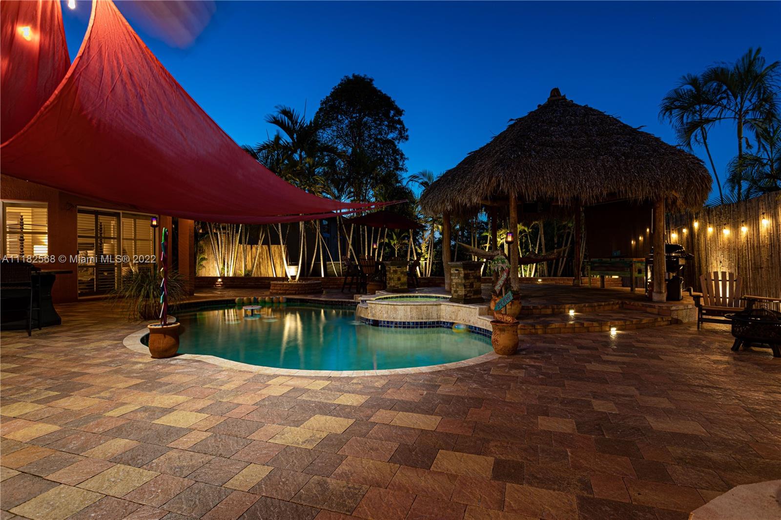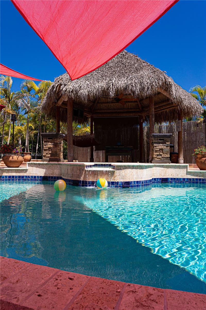 A unique opportunity to own this beautiful luxurious home in the prestigious enclave of Mirasol at Sunset Lakes. The best resort style community in West Miramar. As soon as you enter this home you feel the relaxation that only a beach house styled home can give you. The entrance opens to beautiful travertine tile in French pattern which runs thru the entire home as well as custom plantation shutters. The backyard is so relaxing and gorgeous featuring a large pool with jacuzzi and a large authentic Tiki giving you a resort feel-you will never leave home! Many more features but you will simply have to see it for yourself so don't miss out on this perfect opportunity to make this amazing house your home.