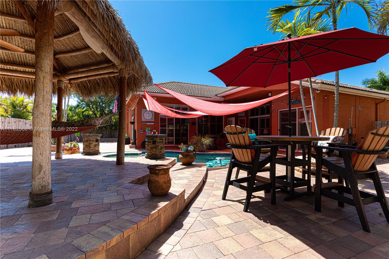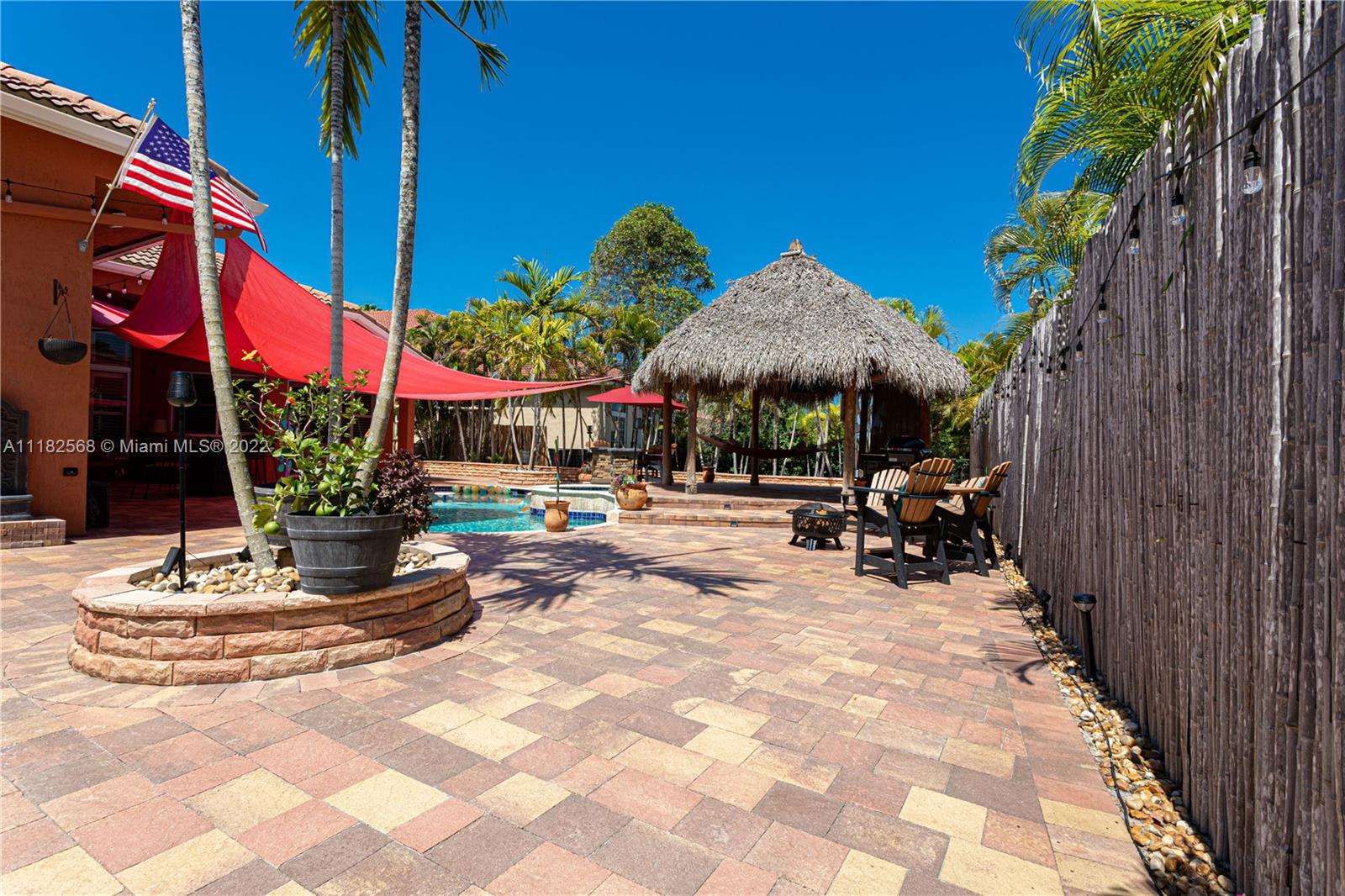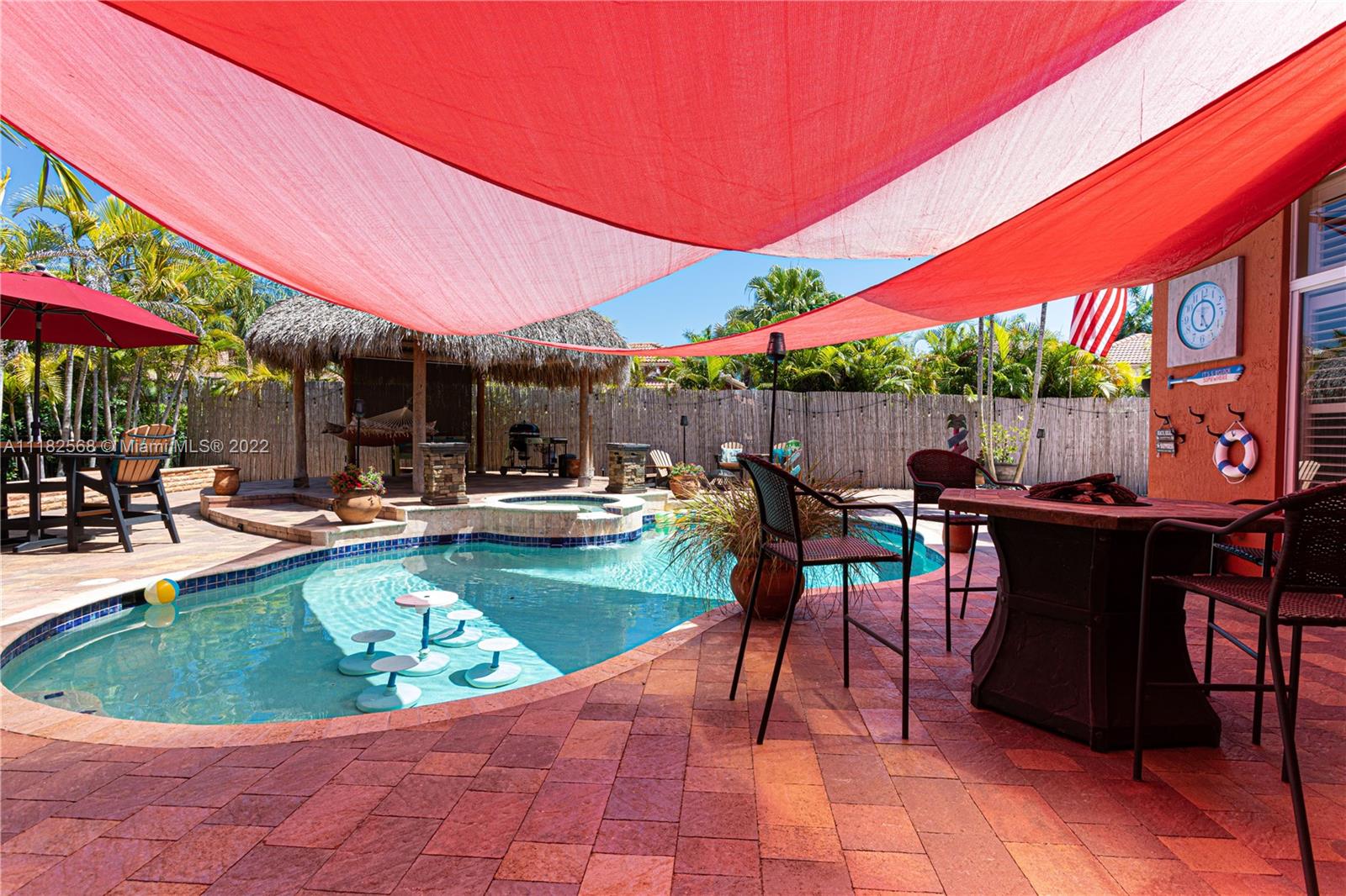 A unique opportunity to own this beautiful luxurious home in the prestigious enclave of Mirasol at Sunset Lakes. The best resort style community in West Miramar. As soon as you enter this home you feel the relaxation that only a beach house styled home can give you. The entrance opens to beautiful travertine tile in French pattern which runs thru the entire home as well as custom plantation shutters. The backyard is so relaxing and gorgeous featuring a large pool with jacuzzi and a large authentic Tiki giving you a resort feel-you will never leave home! Many more features but you will simply have to see it for yourself so don't miss out on this perfect opportunity to make this amazing house your home.