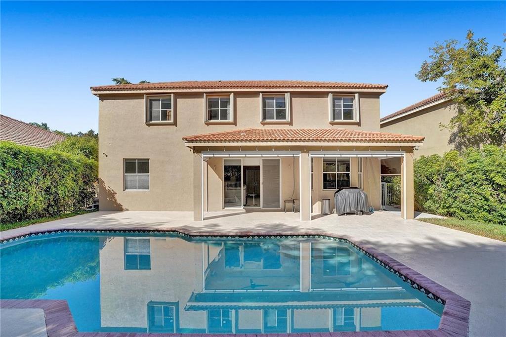 One of a kind house in one of the most desirable developments in Weston, The Ridges. This property features 4 bedrooms + den, 3 full bathrooms. Flat ceilings with recessed lighting all over house including rooms, Tiles in both first and second floor, custom bathrooms, oversized shower doors, all faucets around the house are rose gold. All closets are built. Window treatment through-ought the property. Outdoor electric screens to help protect from the sun and also from bugs if necessary. Back yard features an oversized pool and only has neighbors to the sides but not to the back. All furniture in the property is for sale and can be included in purchase.