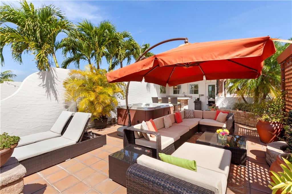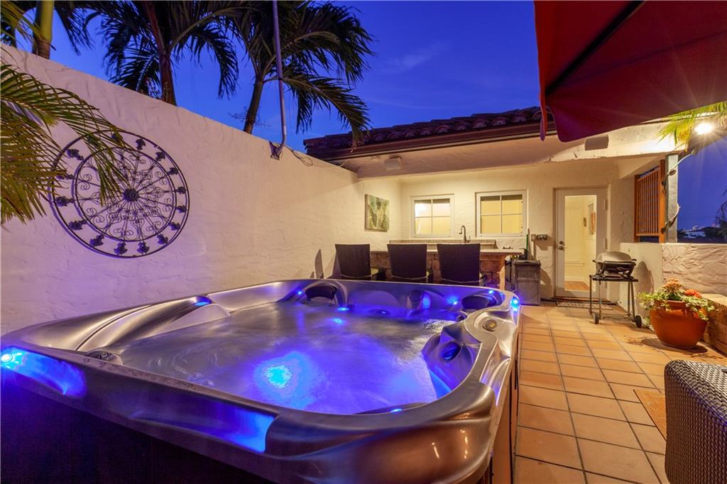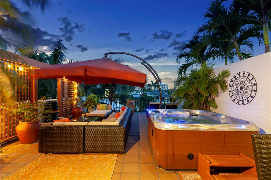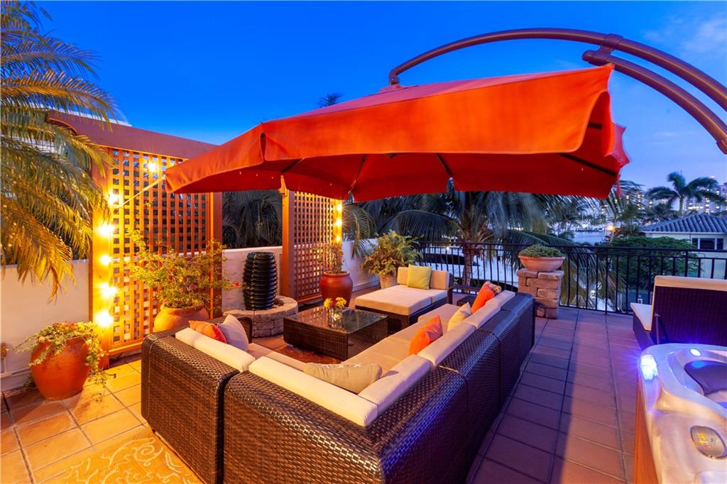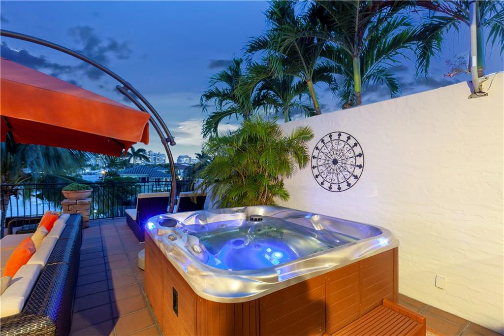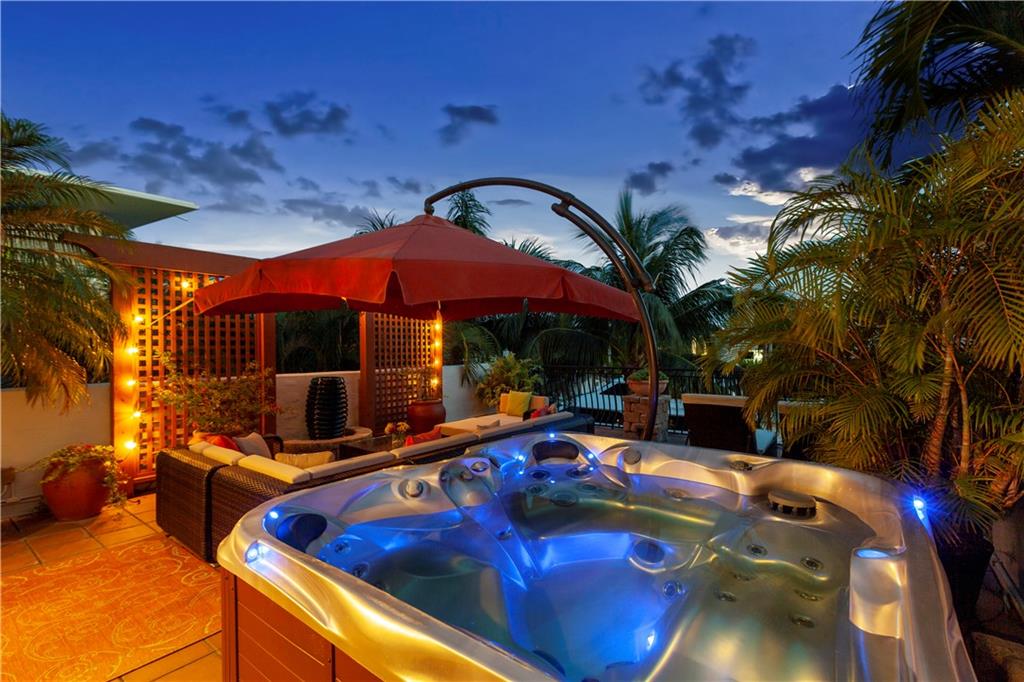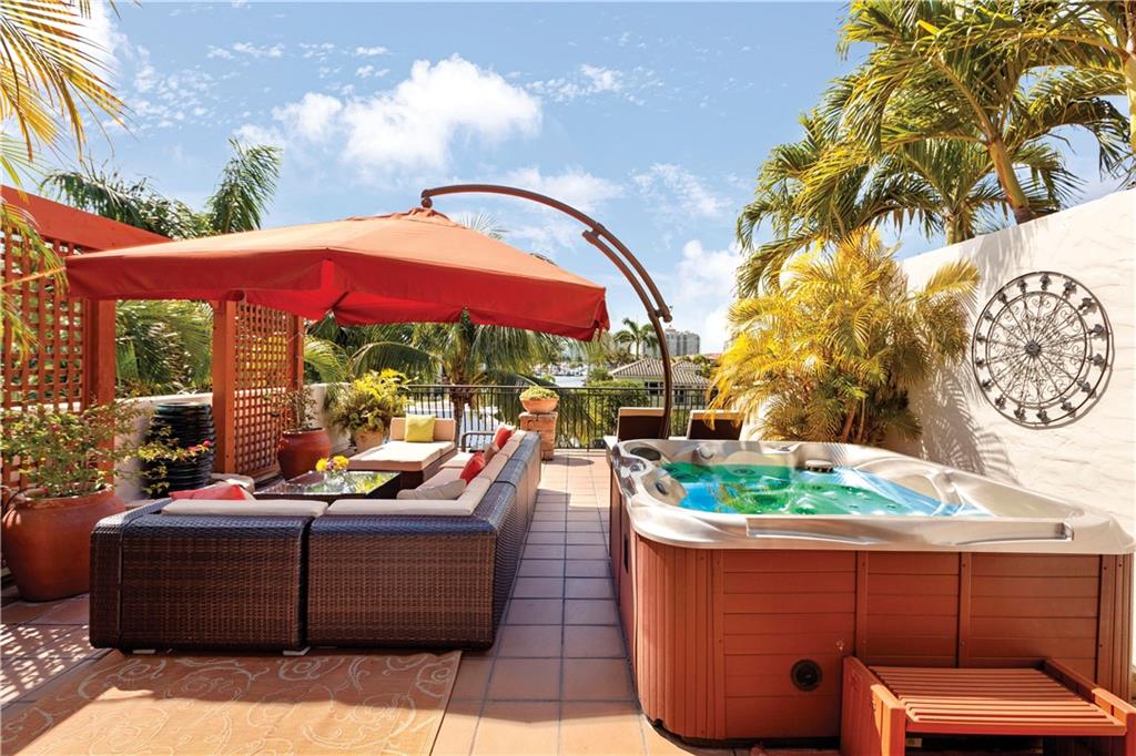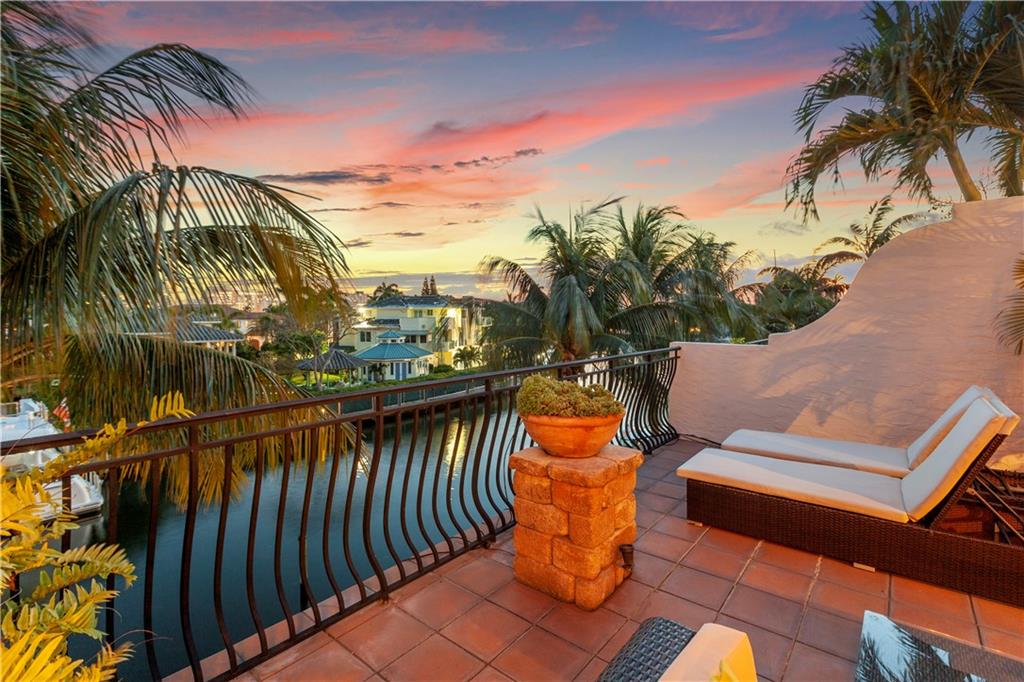 Deep waterfront living at its finest, 44' of waterfront, a lrg turning basin & no fixed bridges. The 1st flr covered & open patio area overlooking the tranquil waterway. Panoramic sunrises & sunsets from the roof top terrace equipped with a bar area, lush tropical planters, a hot tub & multiple seating areas. Rarely available corner unit w/an abundance of natural light & vol ceilings that enhance the open flr plan. Intimate gathering in the formal living & dining area or casual times in the open gourmet kitchen that overlooks the breakfast area & family rm. The spacious primary suite offers 2 custom walk-in closets, lavish bathrm, & pvt. covered waterside balcony. The loft area/home office, 2 guest bedrms, full bath & laundry rm complete the 2nd flr. "Bayview Elementary" Sq ft from IMAPP
